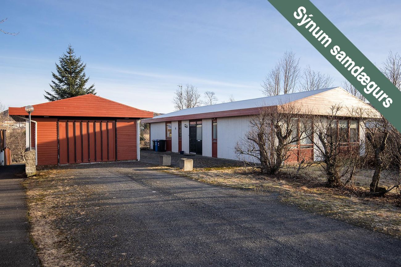 Eignin stendur á fallegri hornlóð með óskert útsýni þar sem langt er í næstu hús. Húsið hefur ávallt hlotið gott viðhald, en skipt var um útidyrahurð árið 2024 og hluta af timbri undir þakkanti og rennur 2023. Hellulagt er á milli hússins og bílskúrsins en þar er snjóbræðsla.