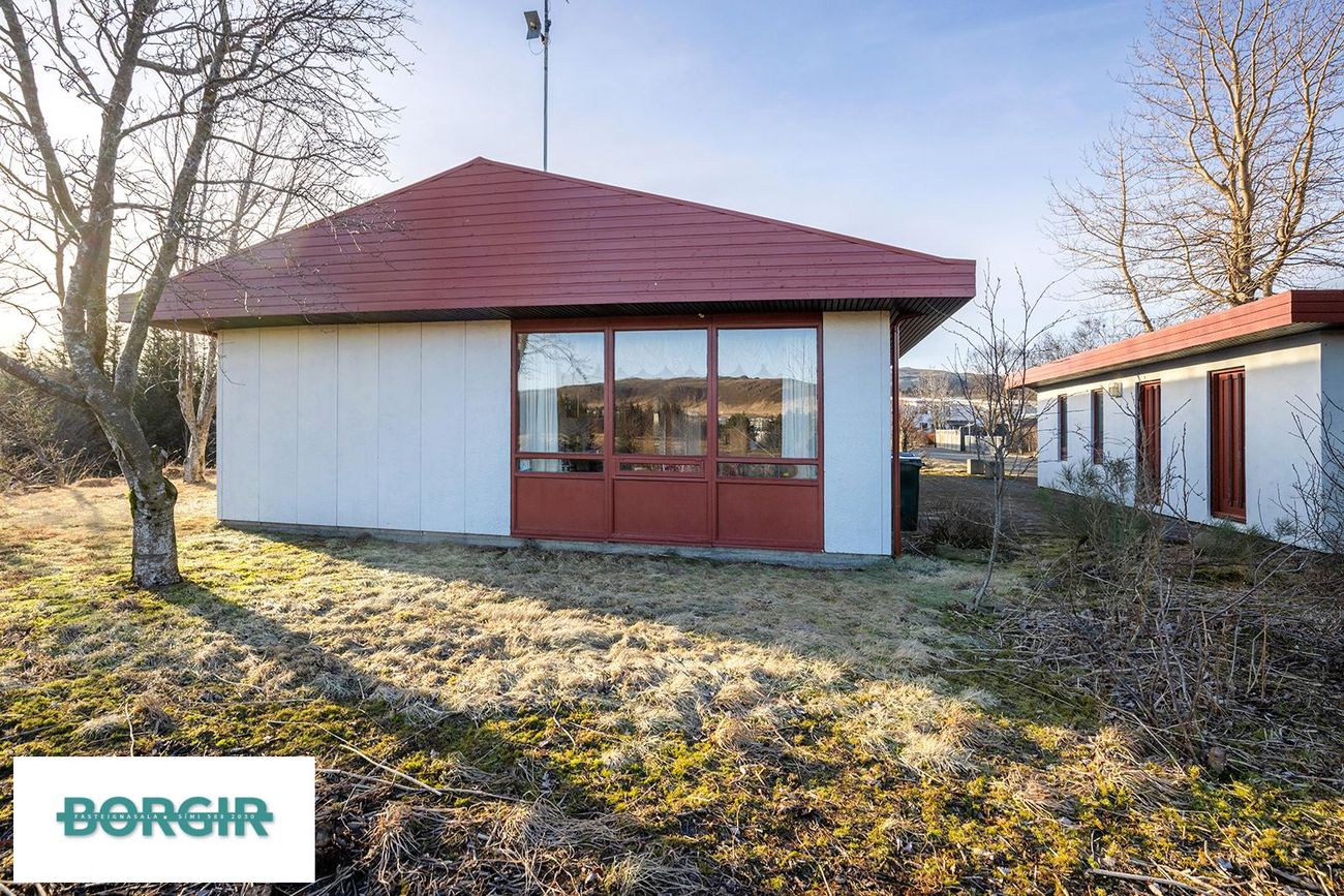 Bílskúrinn: Er með steyptu gólfi, tveimur litlum gluggum á annarri hliðinni og fyrir aftan bílskúrinn er góð köld geymsla.