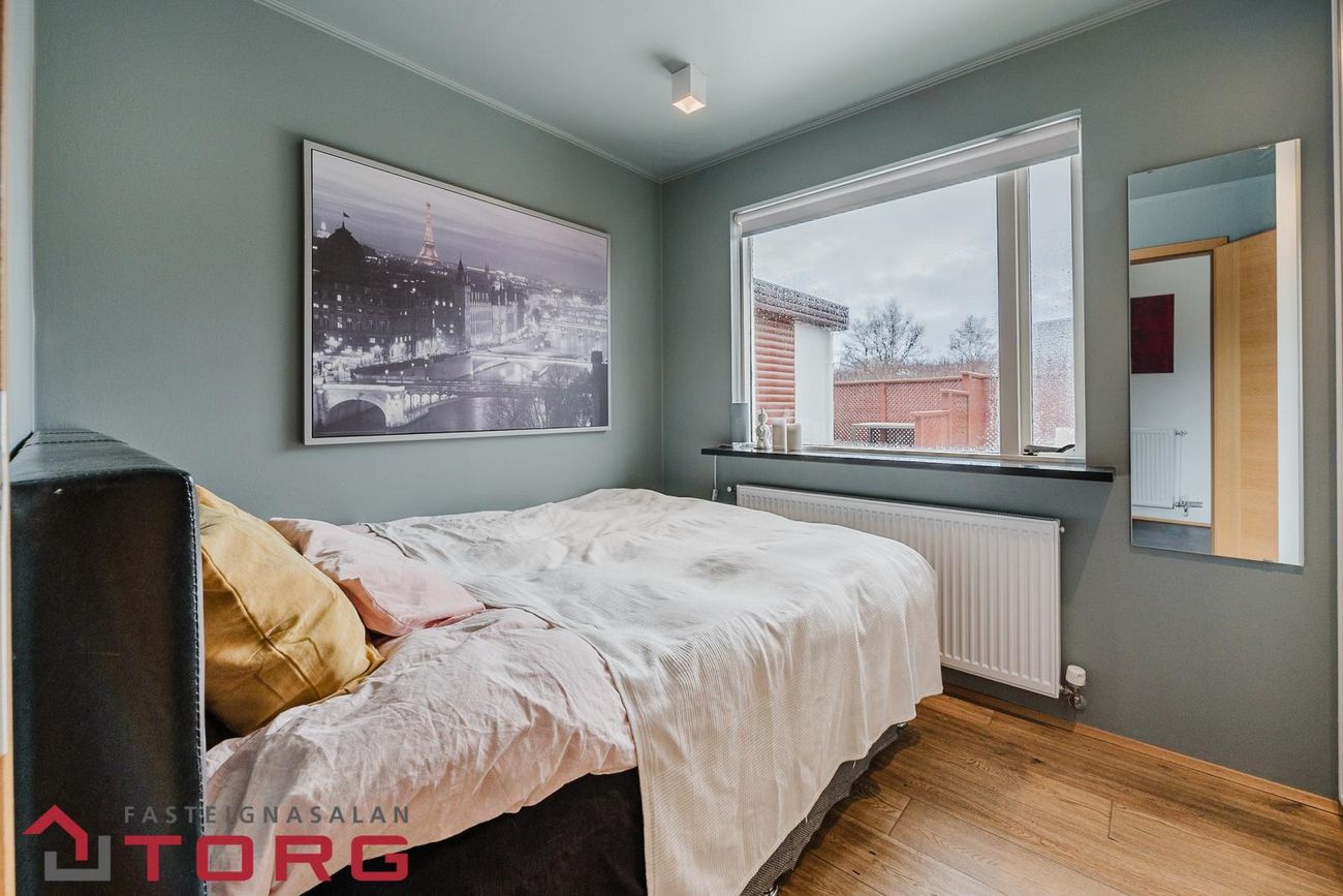 Hjónaherbergi: rúmgott með fataherbergi(fataherbergið var áður hluti af svefnherbergi) parketi á gólfi.