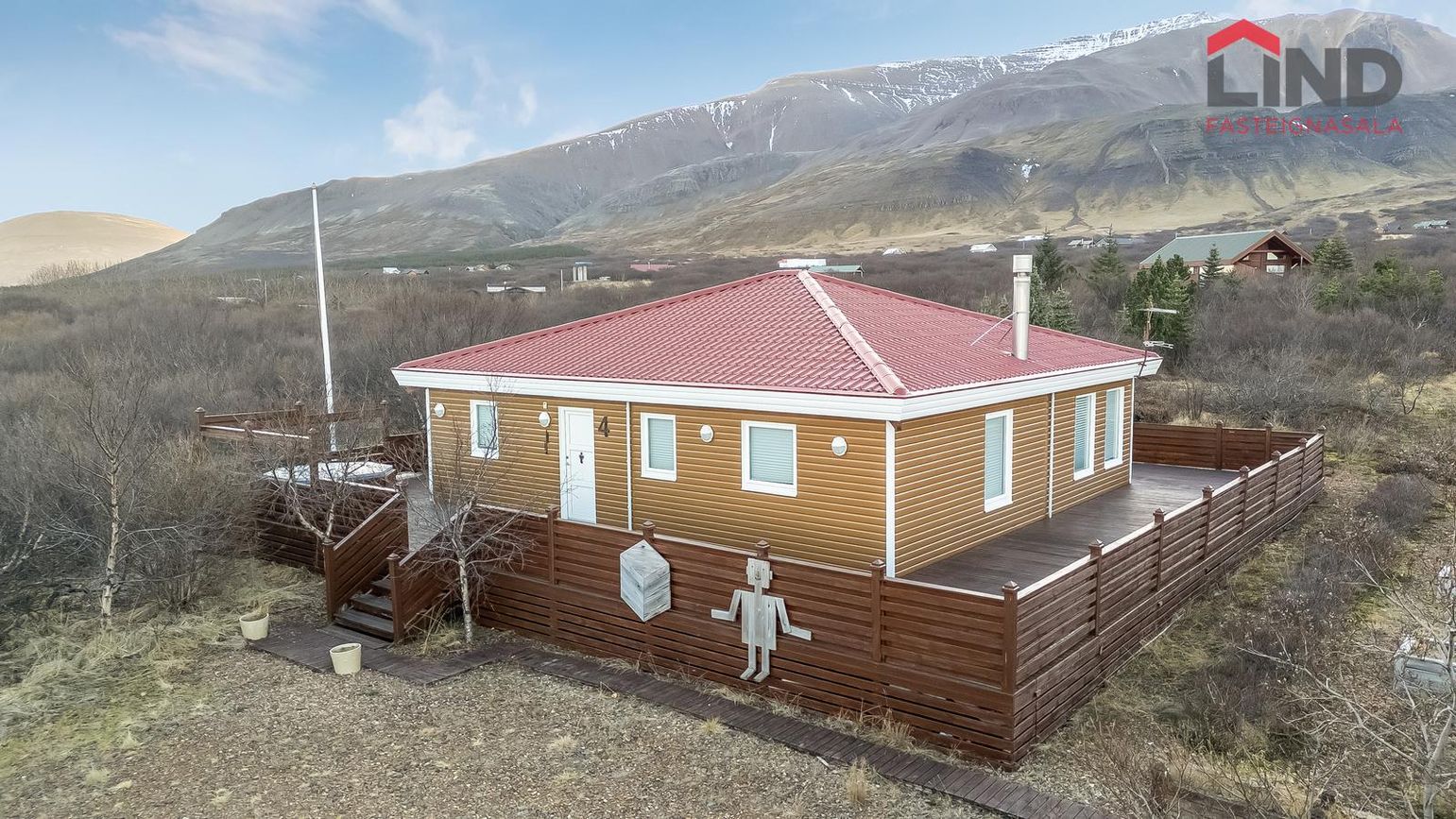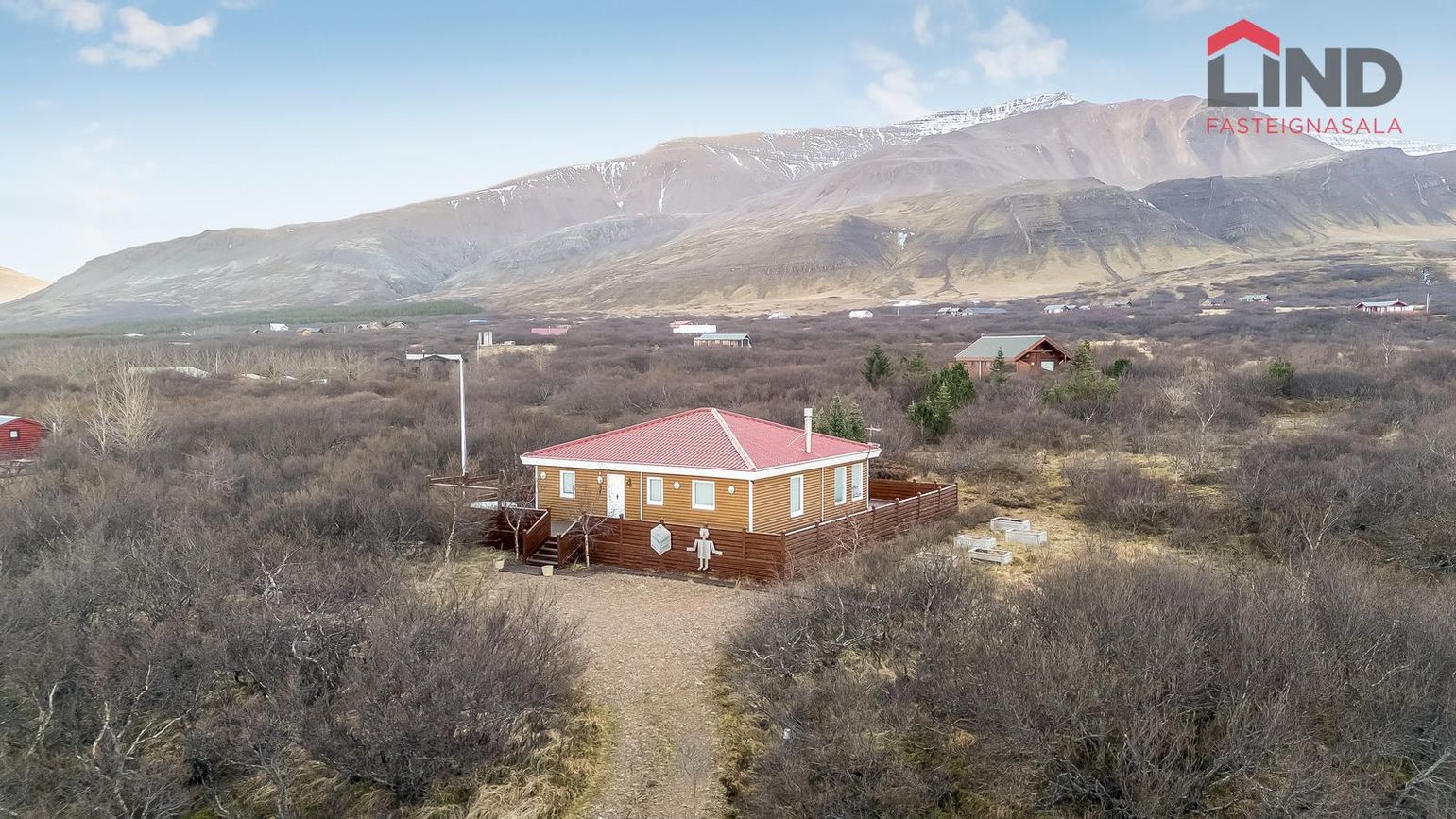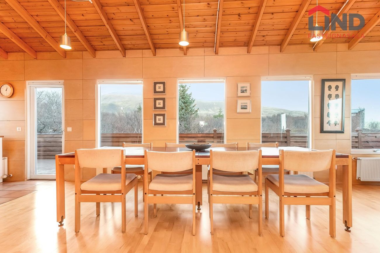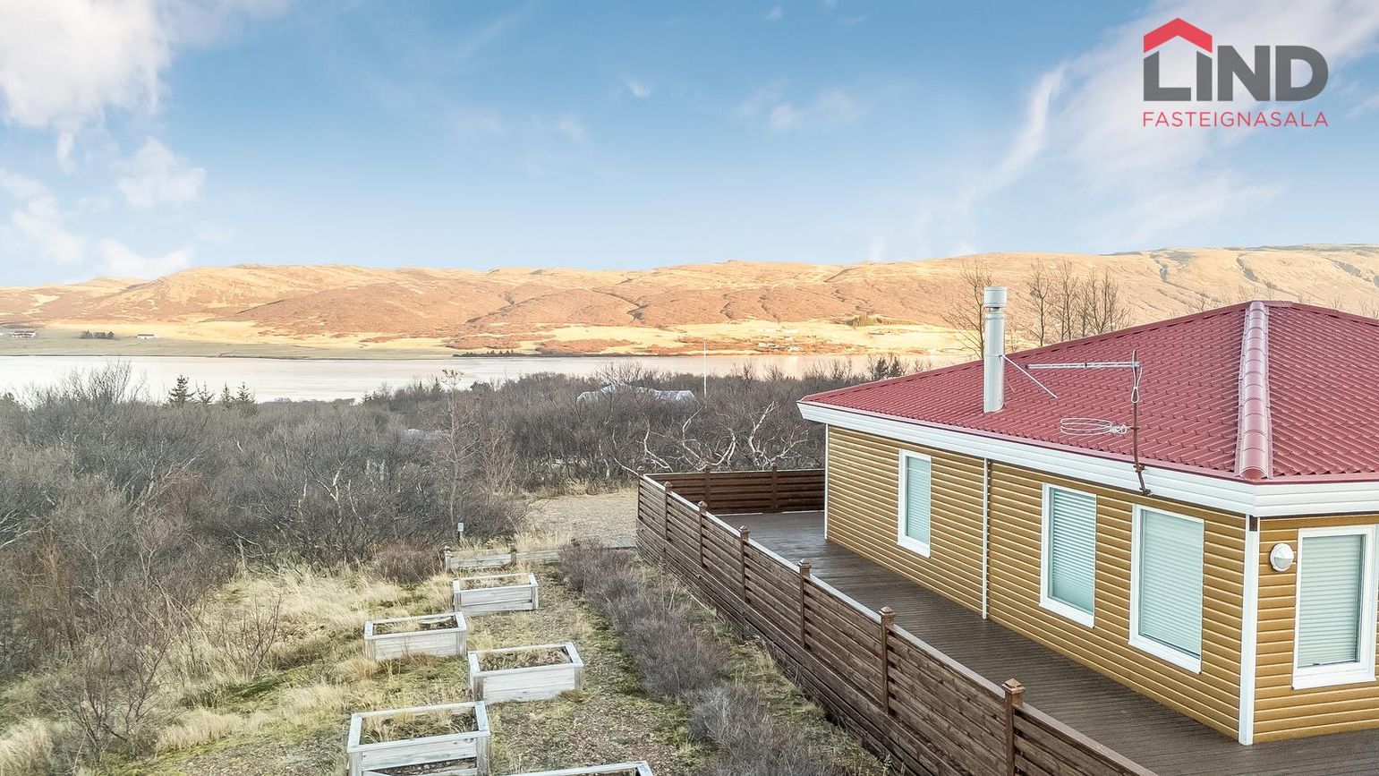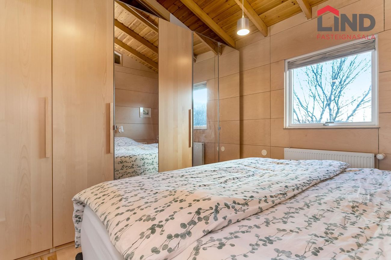 Nánari lýsing Forstofa með flísum á gólfi Eldhús með parketi á gólfi og eldhúsinnréttingu með nýrri uppþvottavél, eldavél, ísskápi með frysti, örbylgjuofni og færanlegri eyju. Stofa-borðstofa með parketi á gólfi, hátt til lofts, stórt nýtt sófasett ásamt stóru borðstofusetti sem rúmar 12-14 manns. Þrjú svefnherbergi, eitt af þeim er með tveimur kojum. Tvö nýleg amerísk rúm og góðar og þykkar svampdýnur í kojunum. Baðherbergi með flísalögðu gólfi, góðri sturtu, þvottavél og þurrkara. Geymsla með hillum.