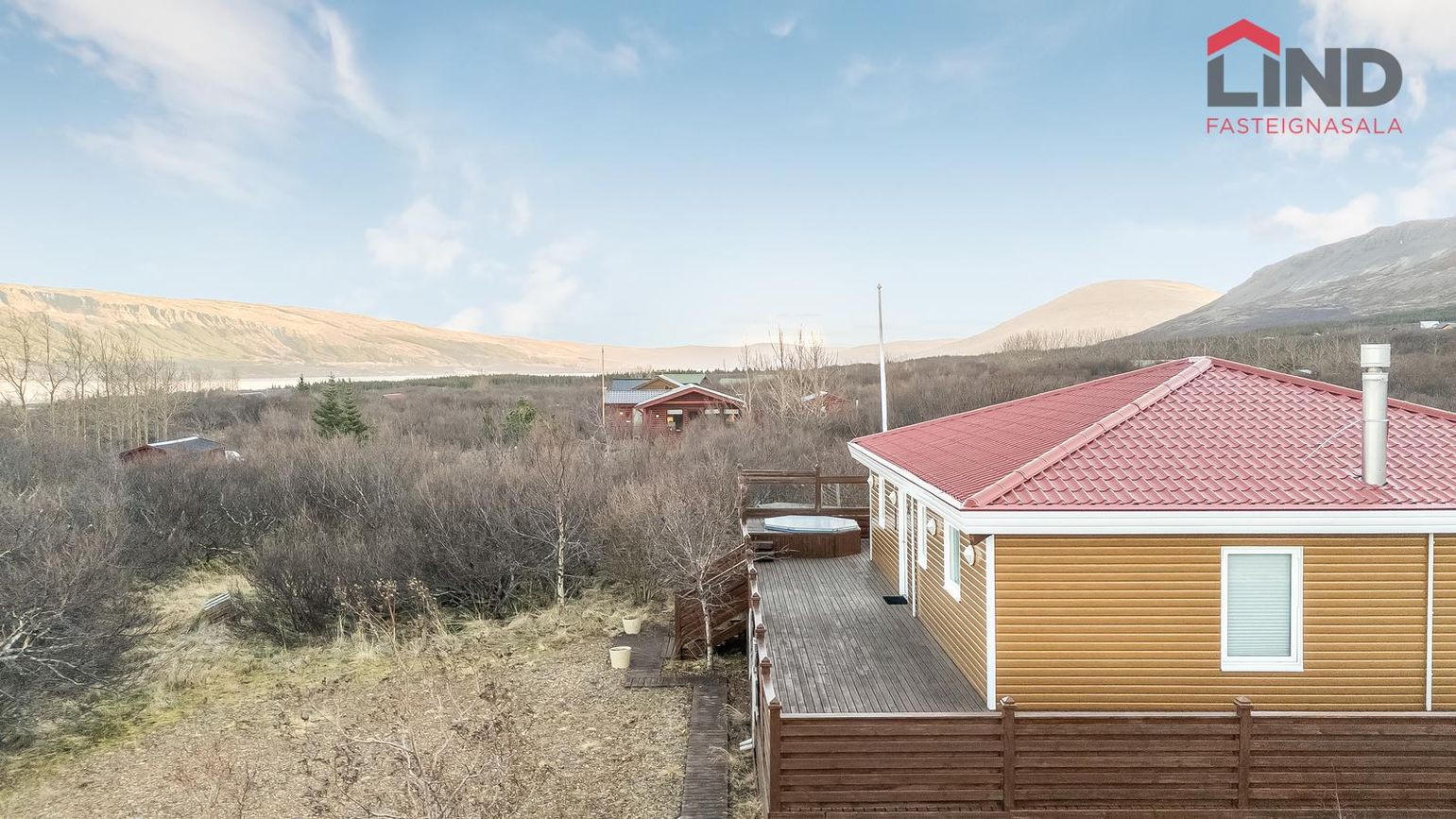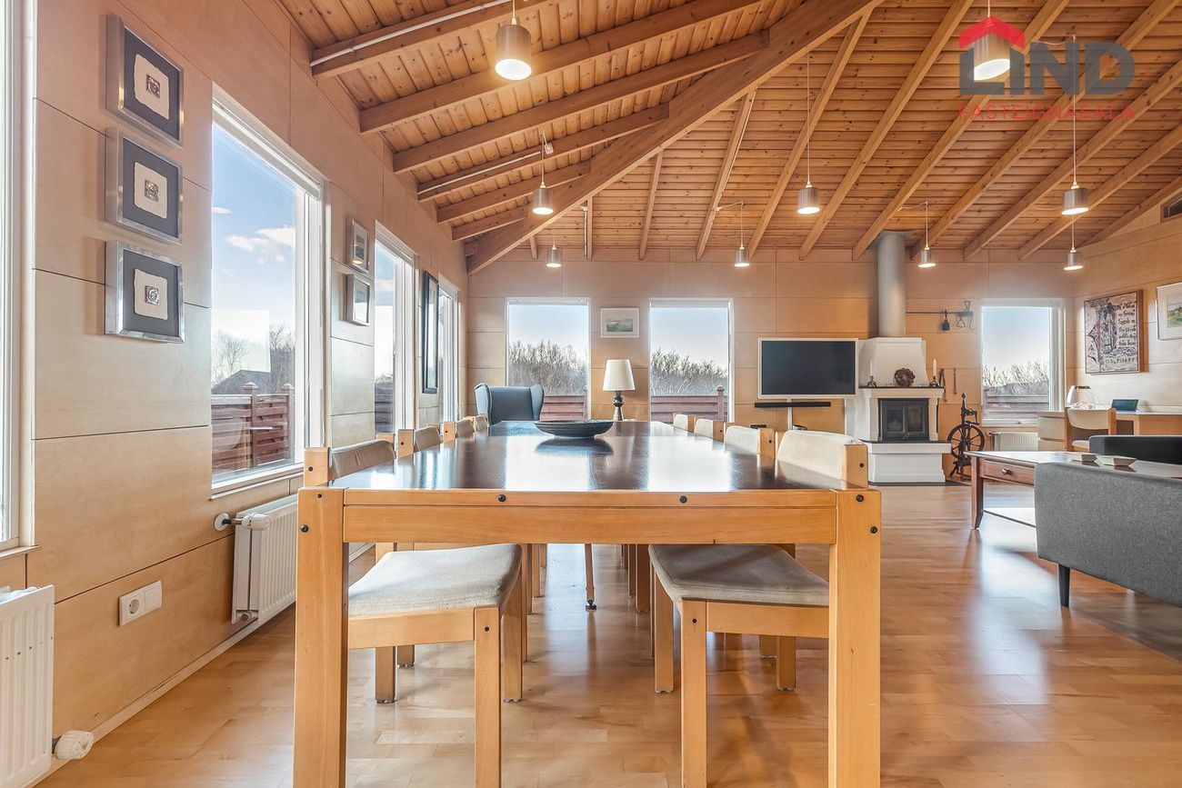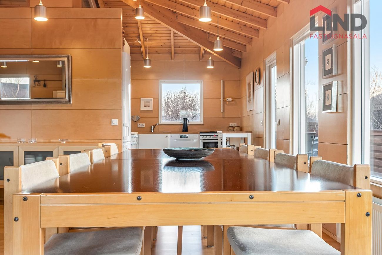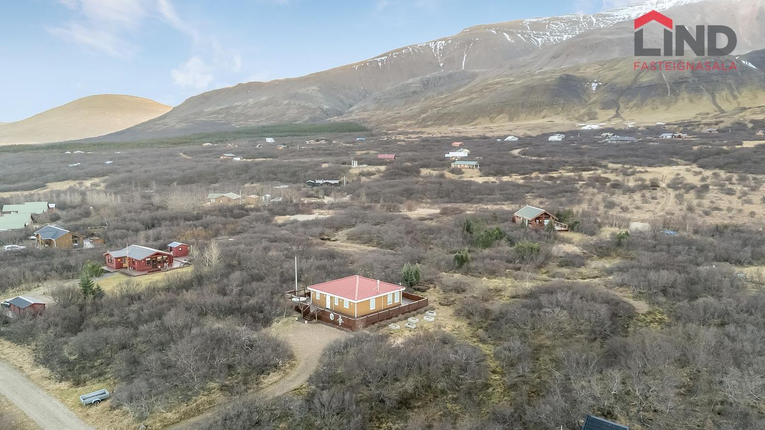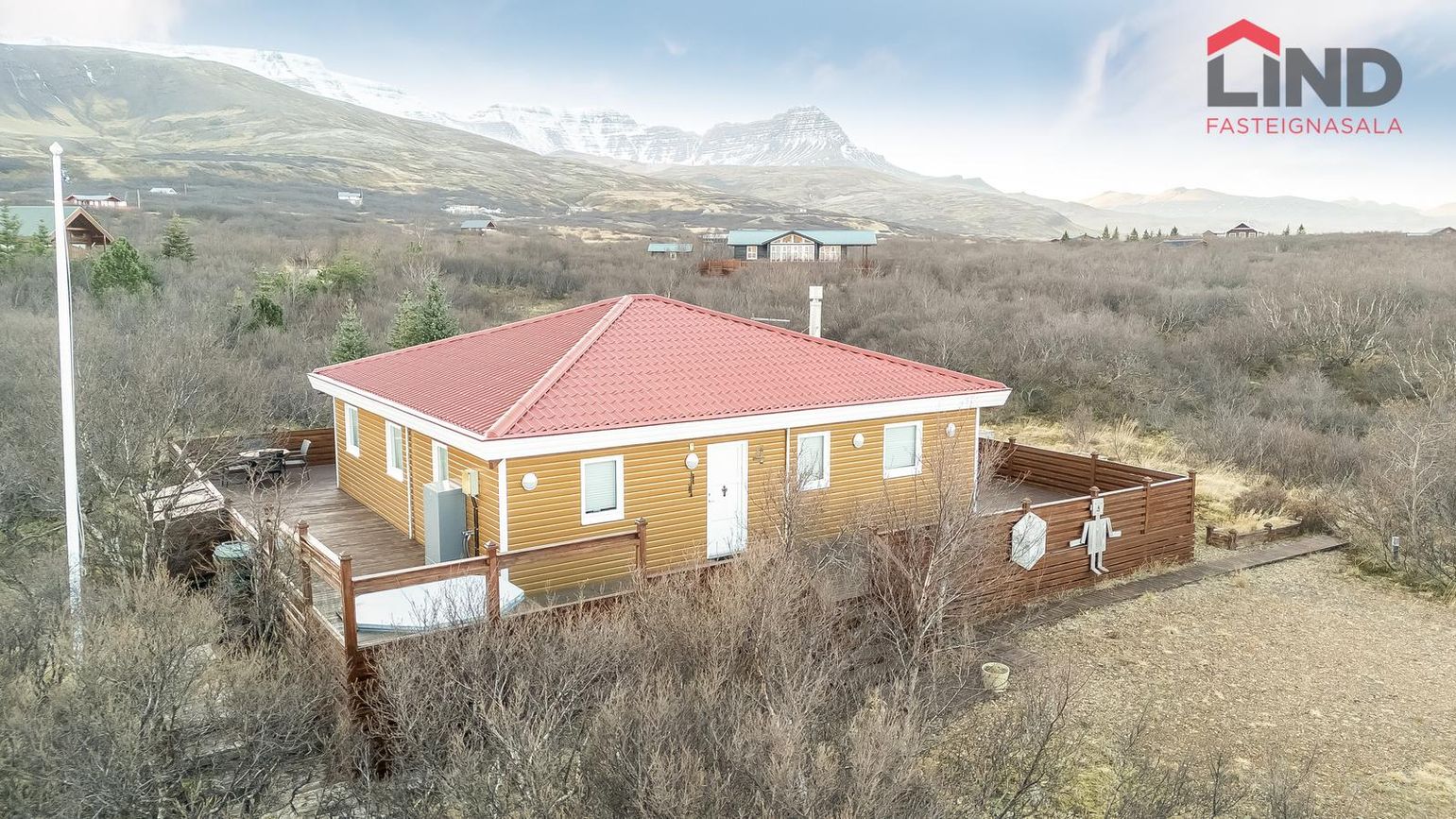 Nánari lýsing Forstofa með flísum á gólfi Eldhús með parketi á gólfi og eldhúsinnréttingu með nýrri uppþvottavél, eldavél, ísskápi með frysti, örbylgjuofni og færanlegri eyju. Stofa-borðstofa með parketi á gólfi, hátt til lofts, stórt nýtt sófasett ásamt stóru borðstofusetti sem rúmar 12-14 manns. Þrjú svefnherbergi, eitt af þeim er með tveimur kojum. Tvö nýleg amerísk rúm og góðar og þykkar svampdýnur í kojunum. Baðherbergi með flísalögðu gólfi, góðri sturtu, þvottavél og þurrkara. Geymsla með hillum.