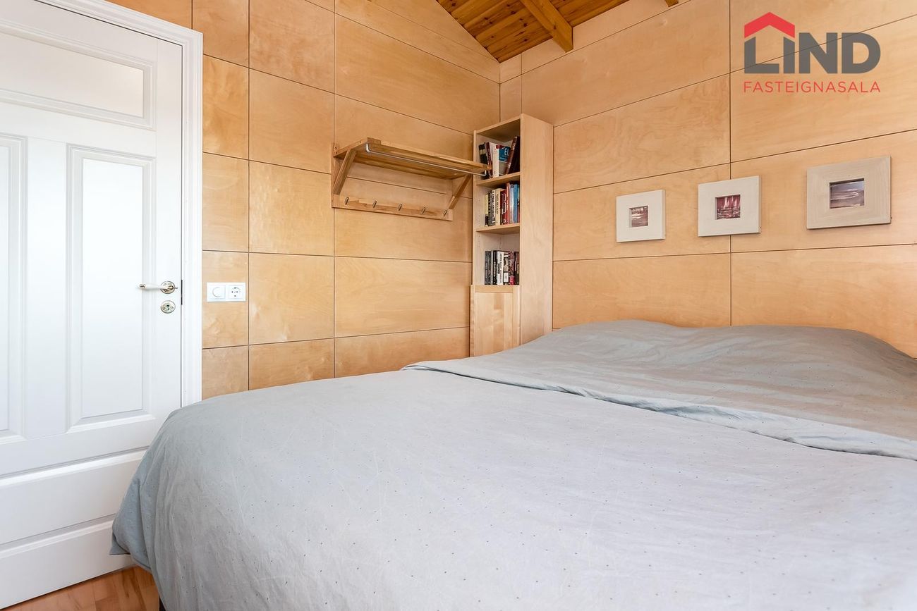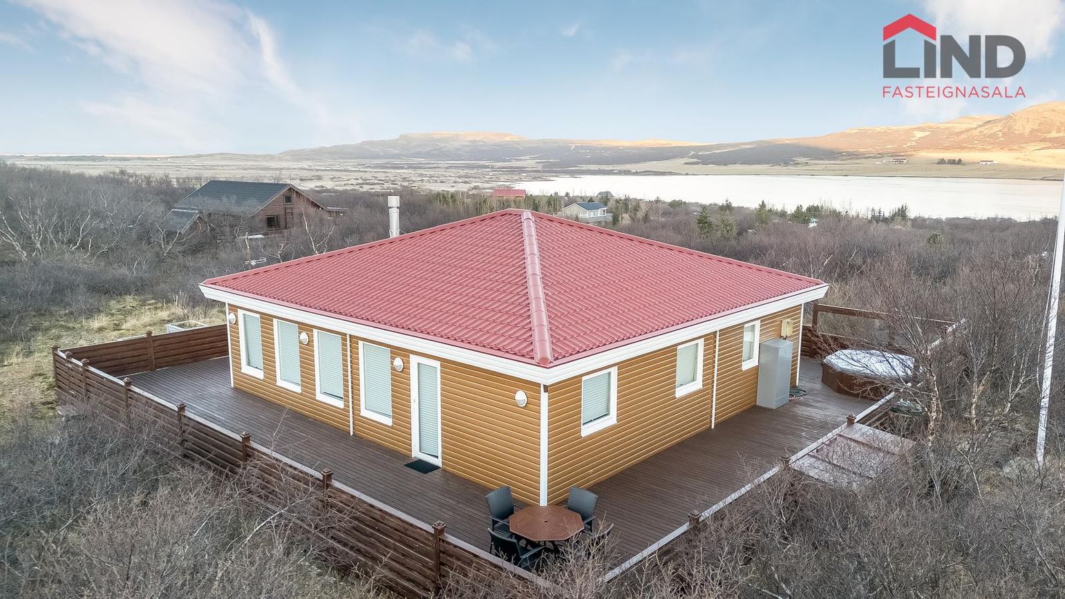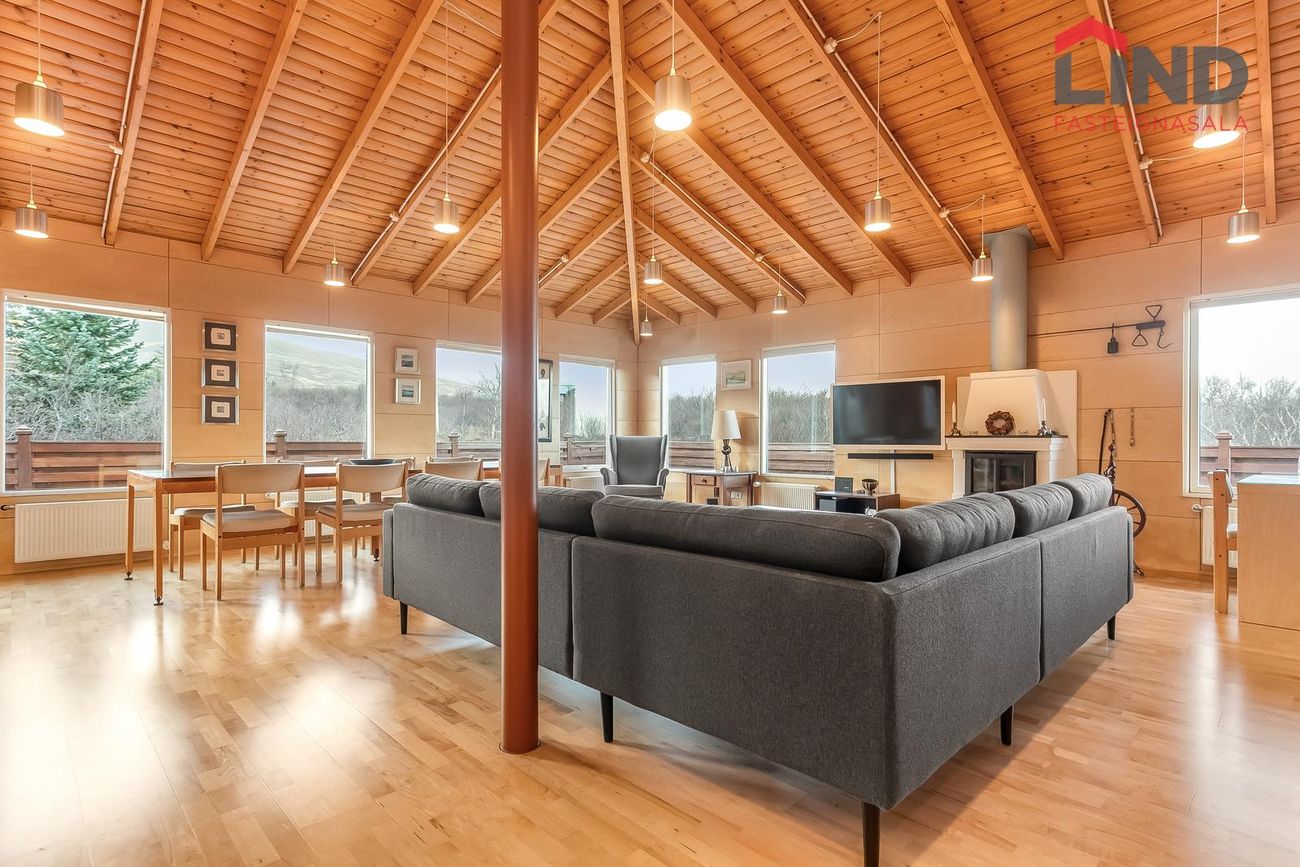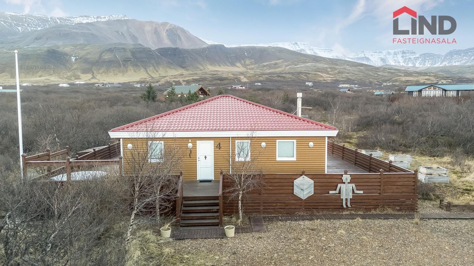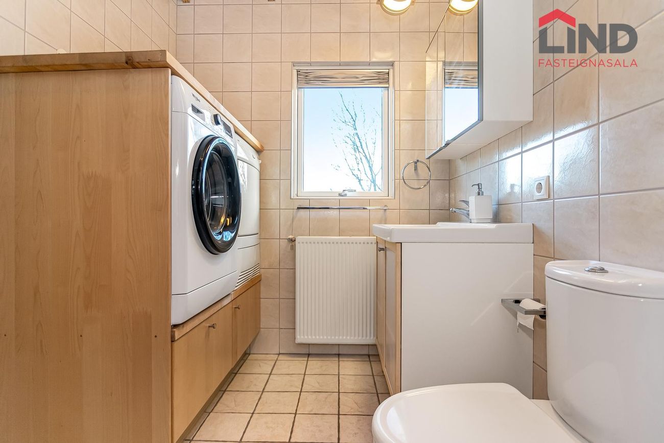 Nánari lýsing Forstofa með flísum á gólfi Eldhús með parketi á gólfi og eldhúsinnréttingu með nýrri uppþvottavél, eldavél, ísskápi með frysti, örbylgjuofni og færanlegri eyju. Stofa-borðstofa með parketi á gólfi, hátt til lofts, stórt nýtt sófasett ásamt stóru borðstofusetti sem rúmar 12-14 manns. Þrjú svefnherbergi, eitt af þeim er með tveimur kojum. Tvö nýleg amerísk rúm og góðar og þykkar svampdýnur í kojunum. Baðherbergi með flísalögðu gólfi, góðri sturtu, þvottavél og þurrkara. Geymsla með hillum.