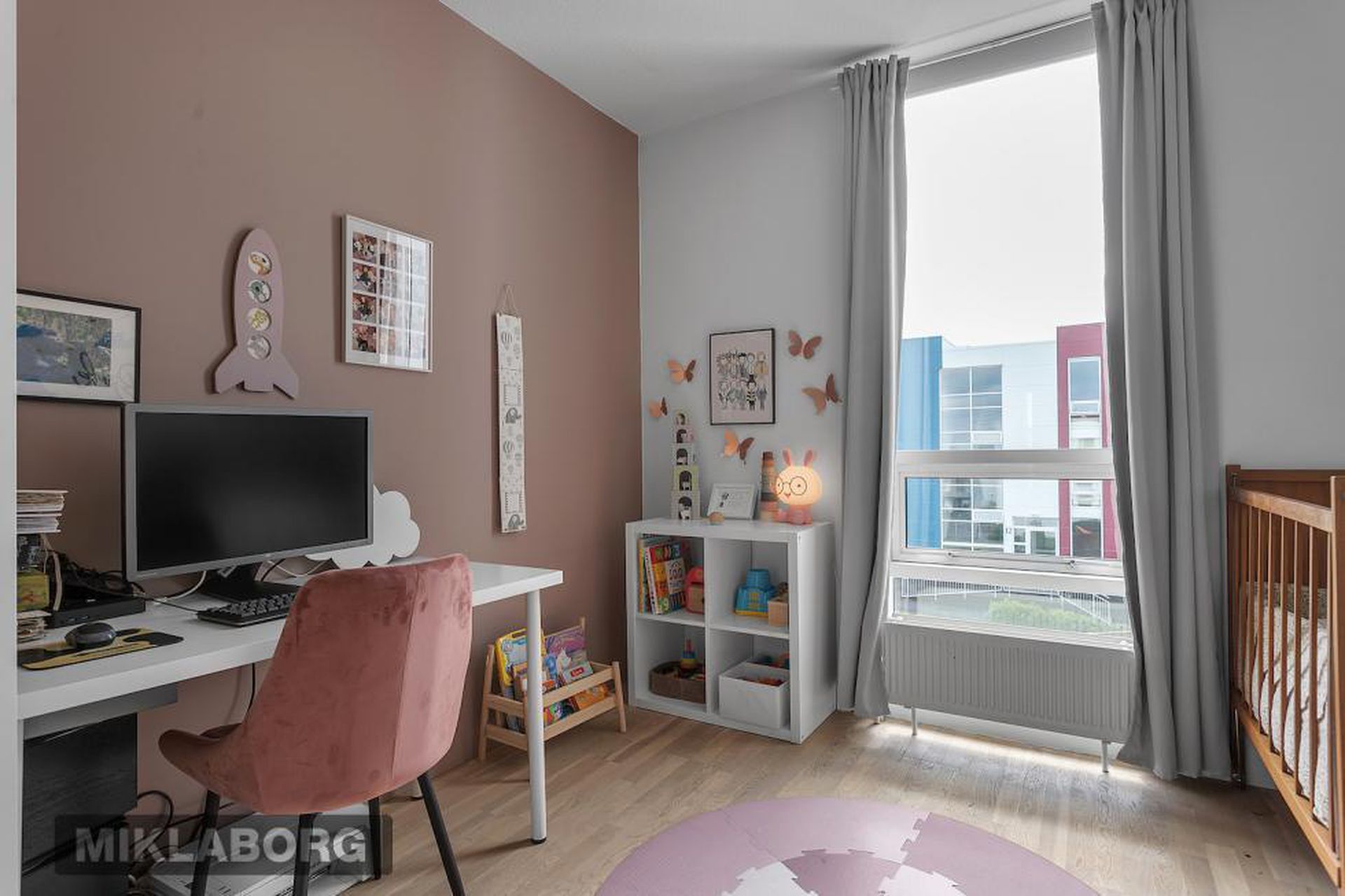 Sjónvarpshol er gott rými sem nú er nýtt sem vinnuaðstaða og leiksvæði.