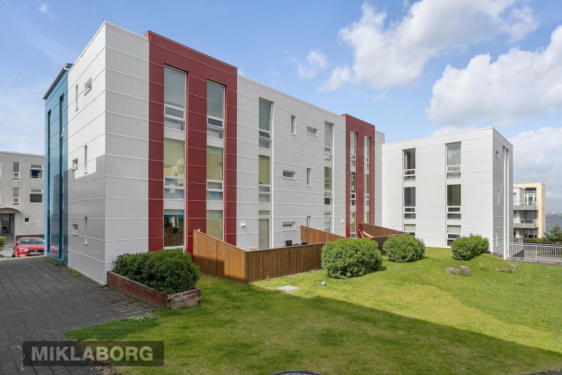 Bílastæði er vel staðsett í lokaðri bílageymslu fyrir Strandveg 12–14–16. Þar hefur verið tengt hleðslukerfi frá Ísorku og einfalt er að setja upp hleðslustöð við bílastæði íbúðarinnar. Húsið að utan er klætt með áli og því viðhaldslítið. Á baklóð fjölbýlisins er leiksvæði fyrir börn.