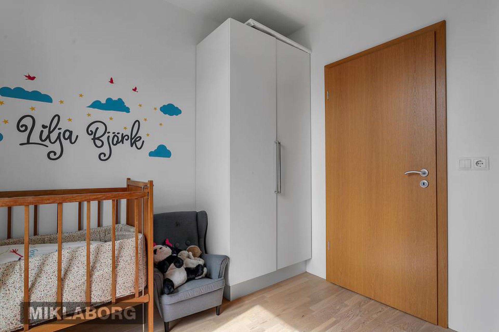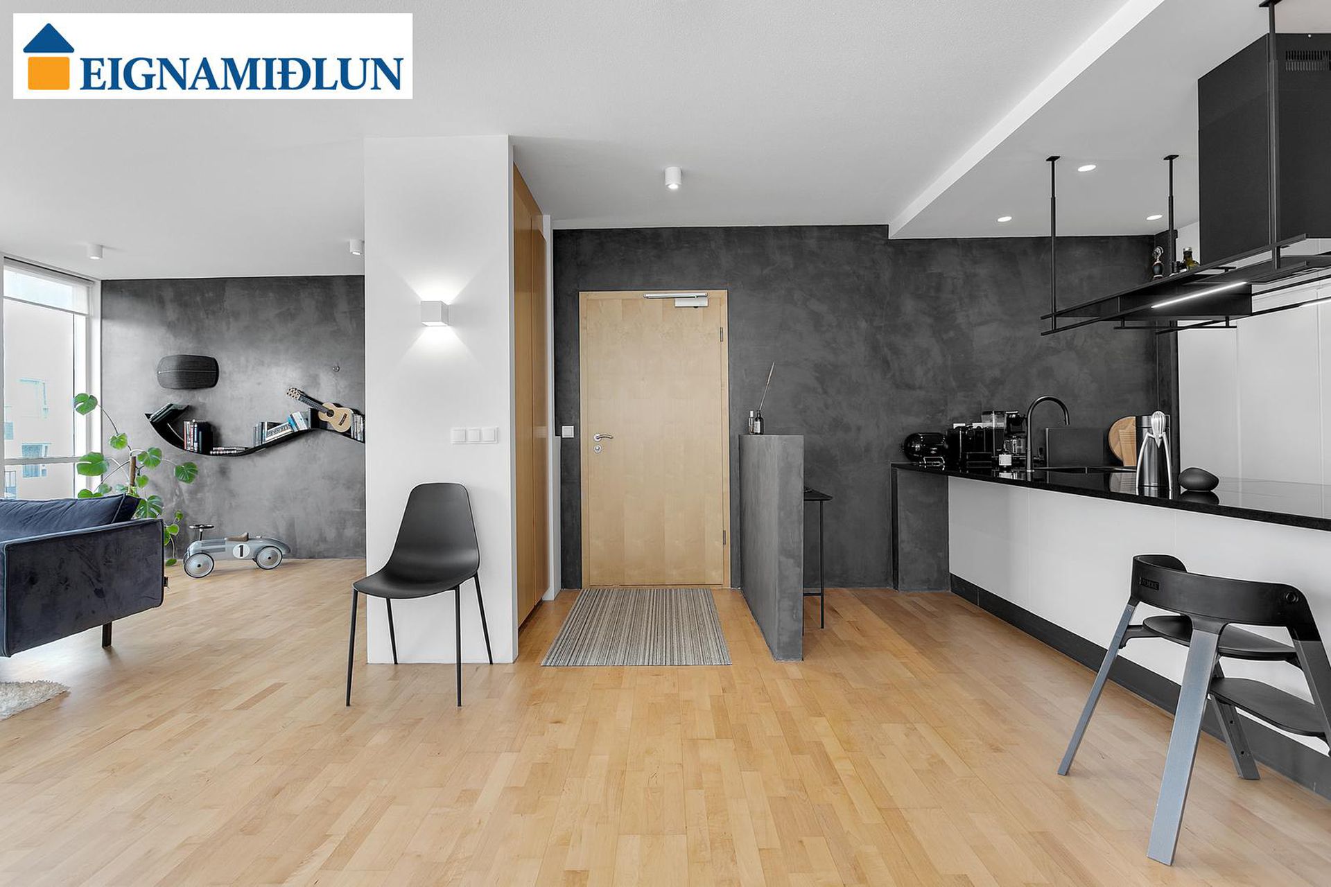 Á svefnherbergisgangi eru tvö svefnherbergi, sjónvarpshol, þvottaherbergi og baðherbergi.Barnaherbergi er rúmgott en án fataskáps.