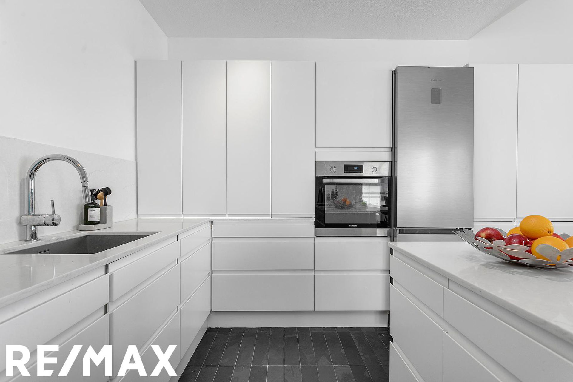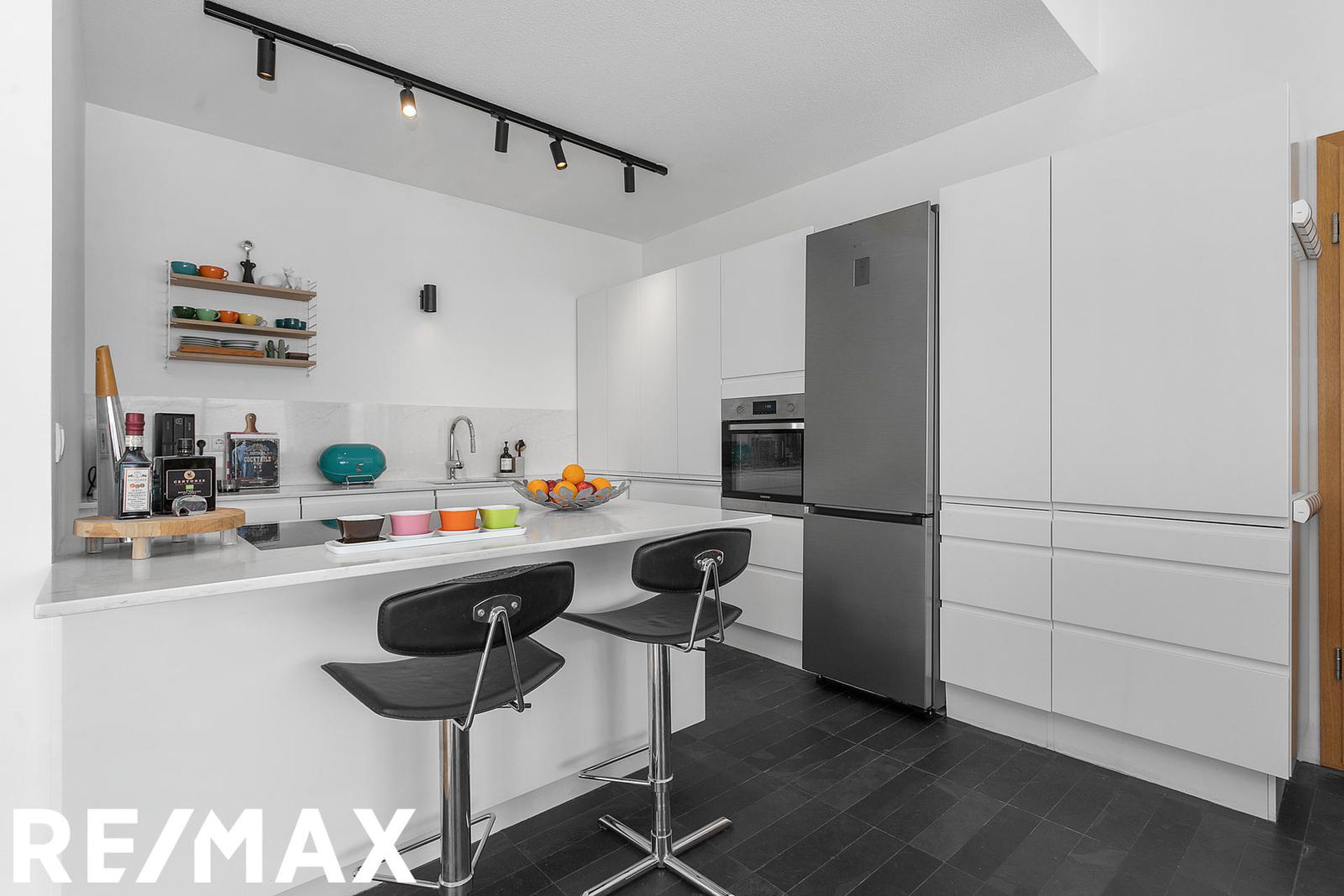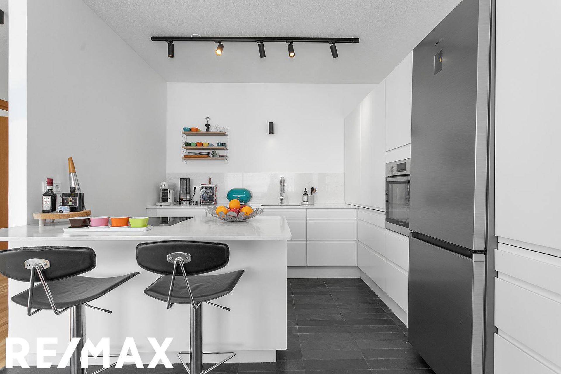 Eldhúsið er með vandraðri Brúnás innréttingu með nýlegum, vönduðum eldhústækjum frá Miele, granít bekkplötur og góðu skápaplássi. Áföst stór eyja sem nýtist vel sem vinnuborð og góð tenging við alrými eldhúss,stofu og borðstofu.