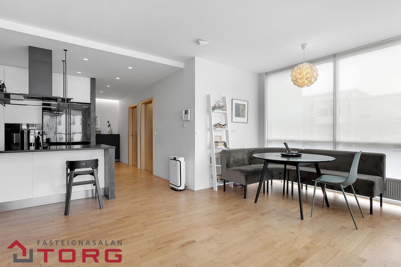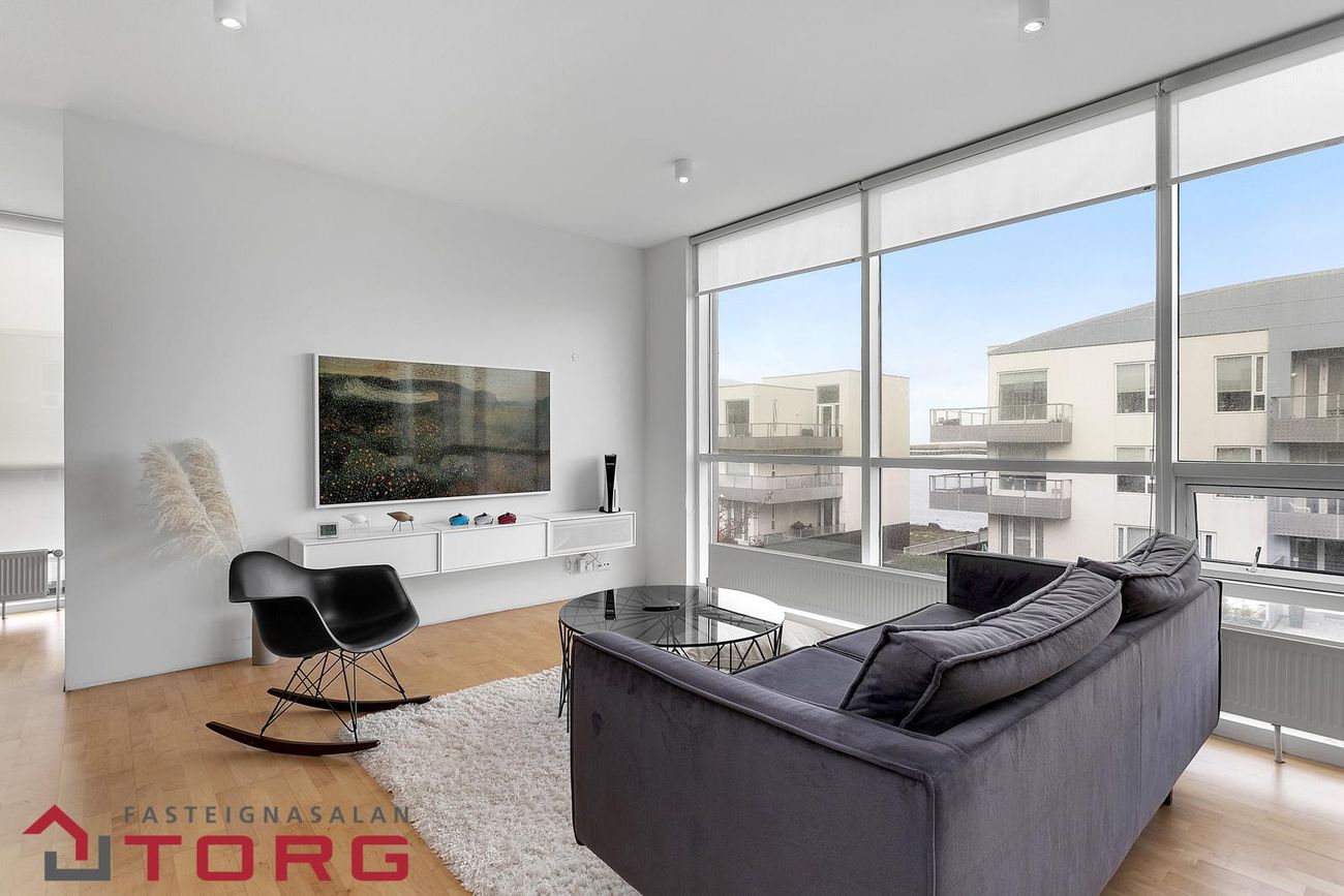 Fasteignasalan TORG kynnir: Glæsilega og rúmgóða 3ja herbergja íbúð á 2. hæð með stæði í upphitaðri bílageymslu. Eldhús er með stein á borði og með vönduðum tækjum fá Miele. Allar upplýsingar veitir Dórothea fasteignasali s.898-3326 dorothea@fstorg.isEignin er skráð 121,5 fm skv. fasteignaskrá HMS. Íbúðin er 114,5 fm og sérgeymsla í sameign 7,0 fm. Aukin loft hæð er í alrými og loft að hluta til tekið niður með fallegri lýsingu. Gólfefni er parket og flísar á baðherbergi og þvottaherbergi.Nánari lýsing:Forstofa/hol er opið rými með góðum fataskáp sem opnast inn í stórt og bjart alrými.