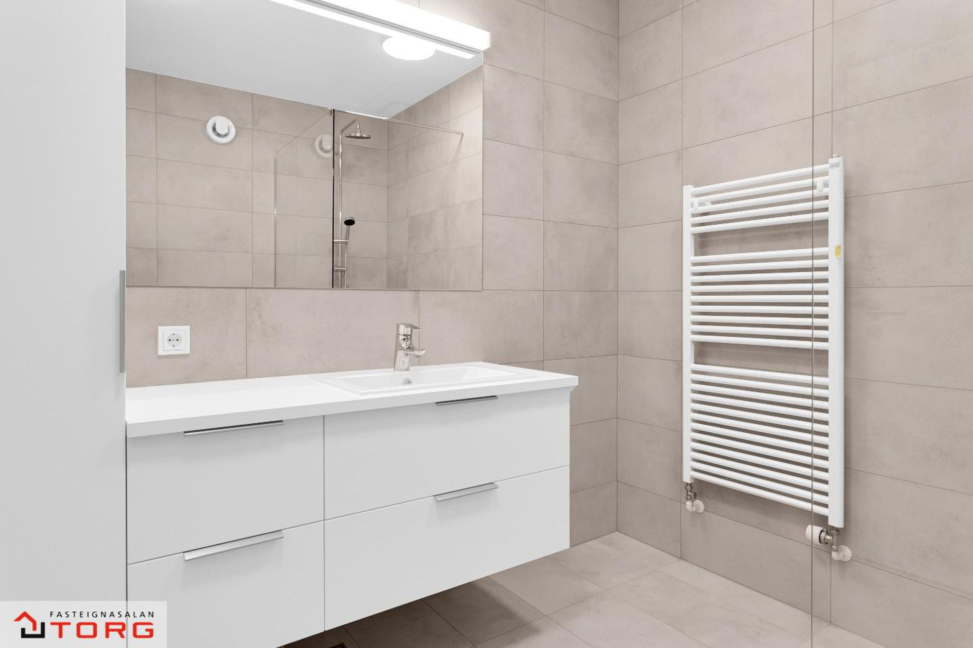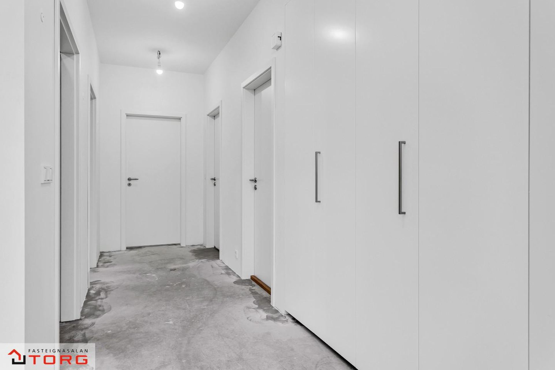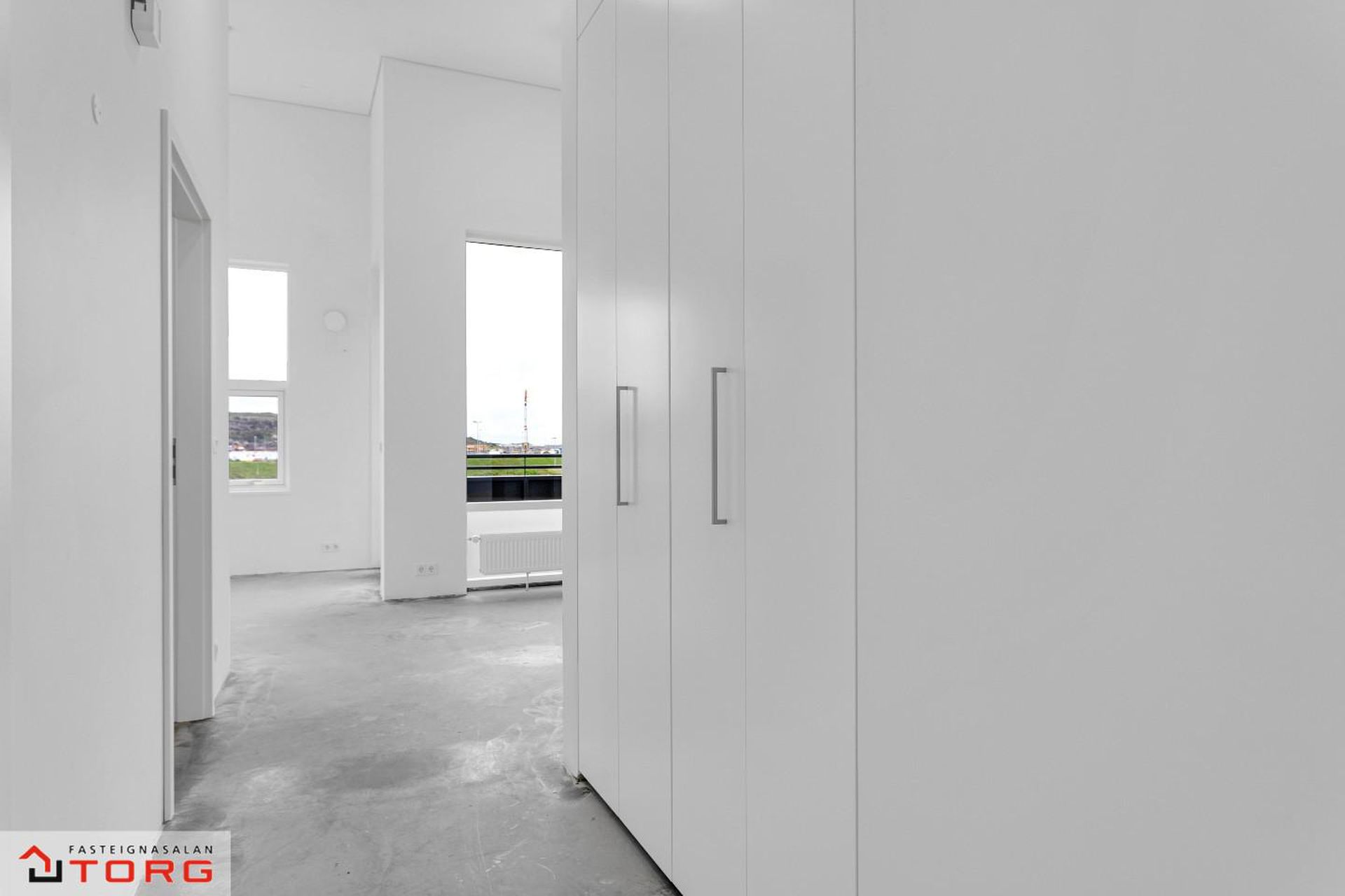 Fasteignasalan TORG og SIgríður Rut kynna: Bókið tíma fyrir skoðun í gsm. 699-4610*Glæsilega 4ra herbergja íbúð á 2. hæð í nýbyggingu við Stuðlaskarð 1-7 Hafnarfirði . Um er ræða 4 hús á tveimur hæðum með 4 íbúðum með sérinngangi. Íbúðirnar eru 3-4ra herbergja. Myndirnar sýna húsin 4 og dæmi um innréttingar á 1 og 2 hæð.Stuðlaskarð 1, Íbúð 201 er 4ra herbergja er skráð samkvæmt F.M.R 94,4 fermetra og sameignleg hjóla og vagnageymsla er í húsinu.Allar innréttingar er frá Brúnás, AEG eldhústæki og blöndunartæki frá Tengi. Íbúðin skilast með flísum á gólfi á baði, anddyri og þvottaherbergi frá Álfaborg. Íbúðin skiptist í eldhús, stofu, 3 svefnherbergi, baðherbergi, þvottahús og anddyri. Aukin lofthæð er í aðalrýminu. Íbúðirnar eru tilbúnar til afhendingar. Frábær staðsetning þar sem stutt er í Skarðshlíðarskóla.Allar nánari upplýsingar og sýningar veitir Sigríður Rut Stanleysdóttir löggiltur fasteignasali í gsm. 699-4610 eða STUÐLASKARÐ 1, 3, 5 OG 7 - SKILALÝSING1 Frágangur innanhúss 1.1 Gólfefni Íbúðin sjálf verður afhent að mestu án gólfefna. Gólf á baðherbergi, þvottahúsi og anddyri eru flísalögð með 300*600 mm flísum. Flísar eru frá Álfaborg1.2 Veggir Útveggir íbúða eru ýmist einangraðir og pússaðir eða slípaðir og síðan sandsparslaðir. Léttir innveggir eru hlaðnir úr vikur- eða gjallplötum, grófpússaðir og sandsparslaðir. Eftir það eru allir veggir grunnaðir og málaðir með tveimur yfirferðum af plastmálningu, gljástig 7% eða sambærilegt. Veggir á snyrtingu eru flísalagðir með 300*600 mm flísum. Flísar eru frá Álfaborg1.3 Loft Steypt loft eru slípuð, sandspörsluð, grunnuð og máluð með tveimur yfirferðum af plastmálningu, gljástig 2 eða sambærilegt. Loft og veggir á baðherbergjum og þvottahúsum eru máluð með viðurkenndri votrýmismálningu.1.4 Gluggar og gler Gluggar eru ál-trégluggar, framleiðandi Börkur hf. Gler í öllum gluggum er tvöfalt hefðbundið verksmiðjuframleitt K-gler. Framleiðandi glers er Samverk og er ábyrgð glers samkvæmt þeirra skilmálum sem glerframleiðanda. Við kaup íbúðar yfirtekur kaupandi/kaupendur ábyrgð framleiðanda.1.5 Sólbekkir Sólbekkir, þar sem þeir koma eru úr plastlögðum spónaplötum.1.6 Hurðar Útihurðar eru ýmist með brunaþol E30C eða ekki, framleiðandi Börkur hf. Hurðarpumpur á E30C útihurðum eru af tegundinni GEZE TS3000V með sleða. Svalahurðar eru ál/tré með gleri í álfalsramma, framleiðandi Börkur. Innihurðar eru yfirfelldar, sléttar og sprautulakkaðar hvítar. Innihurðar eru frá Parka. 1.7 Fataskápar og geymsluskápar Fataskápar eru í forstofu og svefnherbergjum. Innréttingar eru frá Brúnás. Innmatur er úr ljósgráum plasthúðuðum spónaplötum en sýnilegar hliðar og hurðar eru úr dökku melamin. Geymsluskápar á göngum eru ýmist hefðbundnir skápar eða með lausum hillum í hillukerfi. Hurðar geymsluskápa eru sprautulakkaðar hvítar.1.8 Eldhús Eldhúsinnrétting er að innan úr ljósgráum plasthúðuðum spónaplötum. Neðri skápar og háir skápar eru úr dökku melamin þ.e. hurðar og sýnilegar úthliðar. Yfirskápar eru sprautulakkaðir hvítir þ.e. hurðar og úthliðar. Yfir borðplötu að efri skápum er litað hvítt gler. Borðplötur eru 30 mm þykkar með 0,8 mm gegnheilu plasti. Ekki er ráðlagt að leggja heita hluti beint á plöturnar, nota skal hitaplatta eða sambærilegt.Vaskur er af gerðinni Intra Frame FR520 og blöndunartæki af gerðinni Mora Cera K7, hvoru tveggja frá Tengi. Í innréttingu er AEG spanhelluborð að gerðinni IKB64431XB, AEG veggofn með blæstri af gerðinni BCK456220M, AEG veggháfur af gerðinni F80 BK 60CM S og innbyggð AEG uppþvottavél af gerðinni FSE63607P. Öll tæki eru frá Bræðrunum Ormsson.1.9 Baðherbergi Á baðherbergi er gólf flísalagt ásamt sturtu og veggir flísalagðir að lofti. Innrétting frá Brúnás er að innan úr ljósgráum plasthúðuðum spónaplötum en sýnilegar hliðar og hurðar eru sprautulakkaðar hvítar. Borðplötur eru úr hvítu plasti. Spegill er yfir vaski. Handlaug er af gerðinni Alape EB.R585H, blöndunartæki af gerðinni Mora Cera B5, handklæðaofn, innbyggður vatnskassi og upphengt Geberit Selnova salerni með hæglokandi setu og Mora MMIX blöndunartæki í sturtu. Öll hreinlætistæki verða frá Tengi. Gler er ýmist fyrir allri sturtunni eða með annarri hlið hennar. Tvö niðurföll eru1.10 Þvottahús Gólf í þvottahúsi er flísalagt. Innrétting frá Brúnás er að innan úr ljósgráum plasthúðuðum spónaplötum og sýnilegar hliðar og hurðir úr ljósgráu melamin. Borðplata er harðplastlögð með plastkanti. Í borðplötu er vaskur af gerðinni Intra K400 og blöndunartæki af gerðinni FMMattsson ECO. Niðurfall er í gólfi og tengingar fyrir þvottavél og þurrkara. Gert er ráð fyrir barkalausum þurrkara.1.11 Sérgeymsla Allt geymslurými er innan hverrar íbúðar.1.12 Hitakerfi Íbúðirnar eru upphitaðar með hefðbundinni ofnalögn.1.13 Loftræsti-, vatns- og þrifalagnir Loftræsti-, vatns, - og þrifalagnir fylgja frágengnar skv. teikningum. Forhitari er á heitu neysluvatni.1.14 Rafmagns- og sjónvarpslagnir Rafmagns- og sjónvarpslögn fylgja frágengnir og hefðbundin dyrabjalla er í hverri íbúð. Loftnets- og tölvutengill verður í alrými. Tölvutenglar verða í herbergjum. Ljósleiðari verður í húsinu. Innfelld lýsing með dimmum er í hluta af alrými þ.e. stofu og eldhúsi þar sem það á við. Fer eftir gerð lofta í íbúðum.2. Frágangur sameignar 2.1 Hjóla- og vagnageymslur Steyptir innveggir í hjóla- og vagnageymslu eru hreinsaðir slípaðir og málaðir. Gólf eru slípuð og lögð epoxy.2.2 Sorp Sameiginleg hellulögð sorpsvæði eru fyrir hver tvö hús. Á hverju sorpsvæði eru 6 stk st