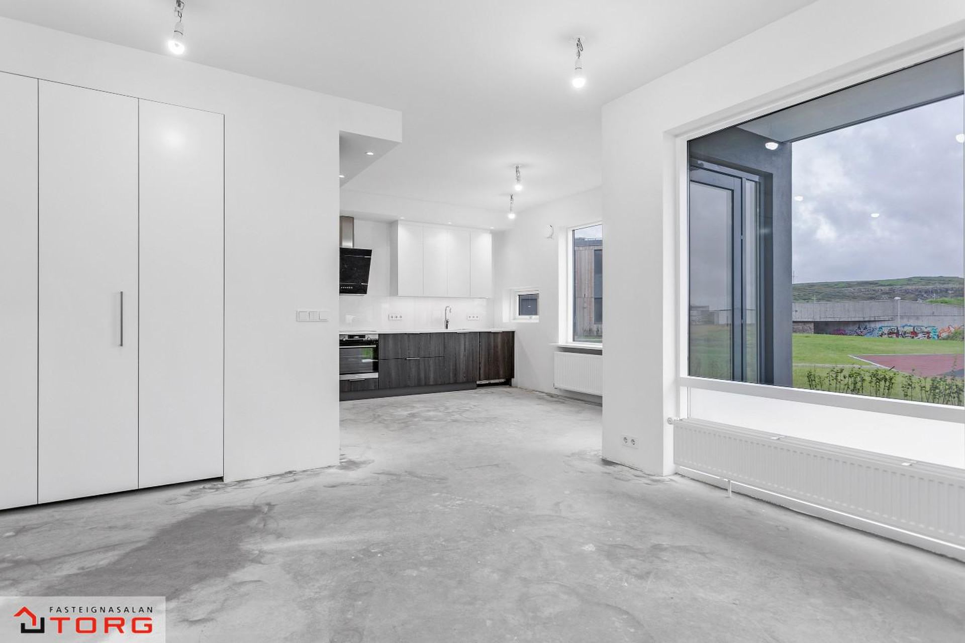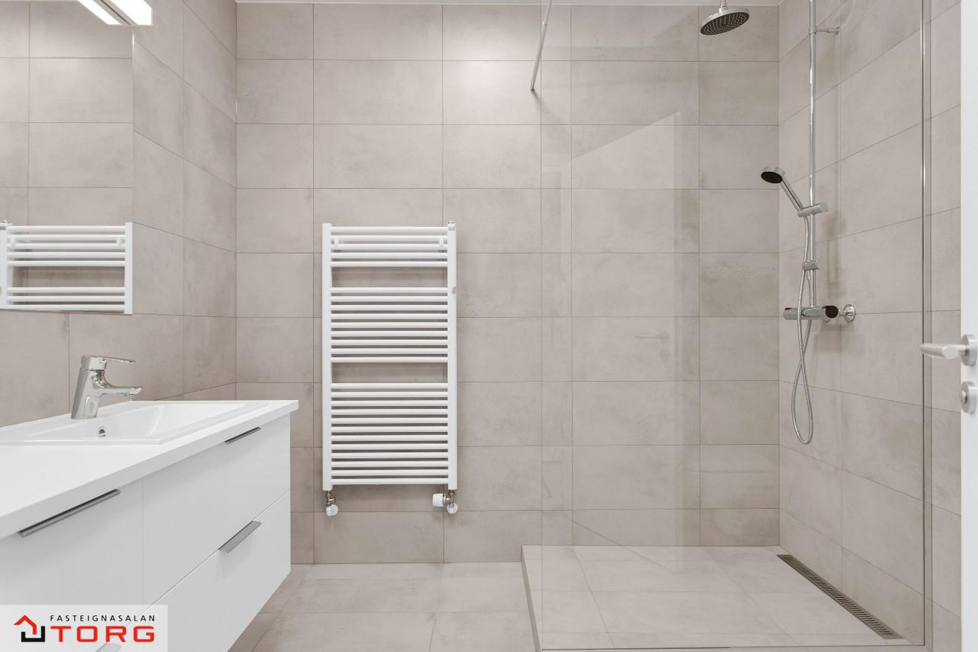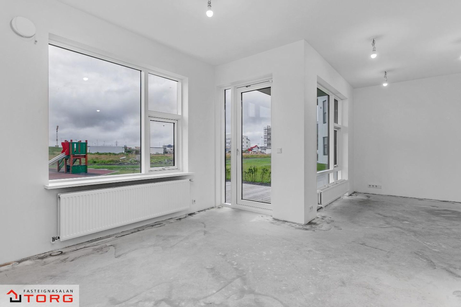 Fasteignasalan TORG og SIgríður Rut kynna: Bókið tíma fyrir skoðun í gsm. 699-4610*Glæsilega 4ra herbergja íbúð á 2. hæð í nýbyggingu við Stuðlaskarð 1-7 Hafnarfirði . Um er ræða 4 hús á tveimur hæðum með 4 íbúðum með sérinngangi. Íbúðirnar eru 3-4ra herbergja. Myndirnar sýna húsin 4 og dæmi um innréttingar á 1 og 2 hæð.Stuðlaskarð 1, Íbúð 201 er 4ra herbergja er skráð samkvæmt F.M.R 94,4 fermetra og sameignleg hjóla og vagnageymsla er í húsinu.Allar innréttingar er frá Brúnás, AEG eldhústæki og blöndunartæki frá Tengi. Íbúðin skilast með flísum á gólfi á baði, anddyri og þvottaherbergi frá Álfaborg. Íbúðin skiptist í eldhús, stofu, 3 svefnherbergi, baðherbergi, þvottahús og anddyri. Aukin lofthæð er í aðalrýminu. Íbúðirnar eru tilbúnar til afhendingar. Frábær staðsetning þar sem stutt er í Skarðshlíðarskóla.Allar nánari upplýsingar og sýningar veitir Sigríður Rut Stanleysdóttir löggiltur fasteignasali í gsm. 699-4610 eða STUÐLASKARÐ 1, 3, 5 OG 7 - SKILALÝSING1 Frágangur innanhúss 1.1 Gólfefni Íbúðin sjálf verður afhent að mestu án gólfefna. Gólf á baðherbergi, þvottahúsi og anddyri eru flísalögð með 300*600 mm flísum. Flísar eru frá Álfaborg1.2 Veggir Útveggir íbúða eru ýmist einangraðir og pússaðir eða slípaðir og síðan sandsparslaðir. Léttir innveggir eru hlaðnir úr vikur- eða gjallplötum, grófpússaðir og sandsparslaðir. Eftir það eru allir veggir grunnaðir og málaðir með tveimur yfirferðum af plastmálningu, gljástig 7% eða sambærilegt. Veggir á snyrtingu eru flísalagðir með 300*600 mm flísum. Flísar eru frá Álfaborg1.3 Loft Steypt loft eru slípuð, sandspörsluð, grunnuð og máluð með tveimur yfirferðum af plastmálningu, gljástig 2 eða sambærilegt. Loft og veggir á baðherbergjum og þvottahúsum eru máluð með viðurkenndri votrýmismálningu.1.4 Gluggar og gler Gluggar eru ál-trégluggar, framleiðandi Börkur hf. Gler í öllum gluggum er tvöfalt hefðbundið verksmiðjuframleitt K-gler. Framleiðandi glers er Samverk og er ábyrgð glers samkvæmt þeirra skilmálum sem glerframleiðanda. Við kaup íbúðar yfirtekur kaupandi/kaupendur ábyrgð framleiðanda.1.5 Sólbekkir Sólbekkir, þar sem þeir koma eru úr plastlögðum spónaplötum.1.6 Hurðar Útihurðar eru ýmist með brunaþol E30C eða ekki, framleiðandi Börkur hf. Hurðarpumpur á E30C útihurðum eru af tegundinni GEZE TS3000V með sleða. Svalahurðar eru ál/tré með gleri í álfalsramma, framleiðandi Börkur. Innihurðar eru yfirfelldar, sléttar og sprautulakkaðar hvítar. Innihurðar eru frá Parka. 1.7 Fataskápar og geymsluskápar Fataskápar eru í forstofu og svefnherbergjum. Innréttingar eru frá Brúnás. Innmatur er úr ljósgráum plasthúðuðum spónaplötum en sýnilegar hliðar og hurðar eru úr dökku melamin. Geymsluskápar á göngum eru ýmist hefðbundnir skápar eða með lausum hillum í hillukerfi. Hurðar geymsluskápa eru sprautulakkaðar hvítar.1.8 Eldhús Eldhúsinnrétting er að innan úr ljósgráum plasthúðuðum spónaplötum. Neðri skápar og háir skápar eru úr dökku melamin þ.e. hurðar og sýnilegar úthliðar. Yfirskápar eru sprautulakkaðir hvítir þ.e. hurðar og úthliðar. Yfir borðplötu að efri skápum er litað hvítt gler. Borðplötur eru 30 mm þykkar með 0,8 mm gegnheilu plasti. Ekki er ráðlagt að leggja heita hluti beint á plöturnar, nota skal hitaplatta eða sambærilegt.Vaskur er af gerðinni Intra Frame FR520 og blöndunartæki af gerðinni Mora Cera K7, hvoru tveggja frá Tengi. Í innréttingu er AEG spanhelluborð að gerðinni IKB64431XB, AEG veggofn með blæstri af gerðinni BCK456220M, AEG veggháfur af gerðinni F80 BK 60CM S og innbyggð AEG uppþvottavél af gerðinni FSE63607P. Öll tæki eru frá Bræðrunum Ormsson.1.9 Baðherbergi Á baðherbergi er gólf flísalagt ásamt sturtu og veggir flísalagðir að lofti. Innrétting frá Brúnás er að innan úr ljósgráum plasthúðuðum spónaplötum en sýnilegar hliðar og hurðar eru sprautulakkaðar hvítar. Borðplötur eru úr hvítu plasti. Spegill er yfir vaski. Handlaug er af gerðinni Alape EB.R585H, blöndunartæki af gerðinni Mora Cera B5, handklæðaofn, innbyggður vatnskassi og upphengt Geberit Selnova salerni með hæglokandi setu og Mora MMIX blöndunartæki í sturtu. Öll hreinlætistæki verða frá Tengi. Gler er ýmist fyrir allri sturtunni eða með annarri hlið hennar. Tvö niðurföll eru1.10 Þvottahús Gólf í þvottahúsi er flísalagt. Innrétting frá Brúnás er að innan úr ljósgráum plasthúðuðum spónaplötum og sýnilegar hliðar og hurðir úr ljósgráu melamin. Borðplata er harðplastlögð með plastkanti. Í borðplötu er vaskur af gerðinni Intra K400 og blöndunartæki af gerðinni FMMattsson ECO. Niðurfall er í gólfi og tengingar fyrir þvottavél og þurrkara. Gert er ráð fyrir barkalausum þurrkara.1.11 Sérgeymsla Allt geymslurými er innan hverrar íbúðar.1.12 Hitakerfi Íbúðirnar eru upphitaðar með hefðbundinni ofnalögn.1.13 Loftræsti-, vatns- og þrifalagnir Loftræsti-, vatns, - og þrifalagnir fylgja frágengnar skv. teikningum. Forhitari er á heitu neysluvatni.1.14 Rafmagns- og sjónvarpslagnir Rafmagns- og sjónvarpslögn fylgja frágengnir og hefðbundin dyrabjalla er í hverri íbúð. Loftnets- og tölvutengill verður í alrými. Tölvutenglar verða í herbergjum. Ljósleiðari verður í húsinu. Innfelld lýsing með dimmum er í hluta af alrými þ.e. stofu og eldhúsi þar sem það á við. Fer eftir gerð lofta í íbúðum.2. Frágangur sameignar 2.1 Hjóla- og vagnageymslur Steyptir innveggir í hjóla- og vagnageymslu eru hreinsaðir slípaðir og málaðir. Gólf eru slípuð og lögð epoxy.2.2 Sorp Sameiginleg hellulögð sorpsvæði eru fyrir hver tvö hús. Á hverju sorpsvæði eru 6 stk st