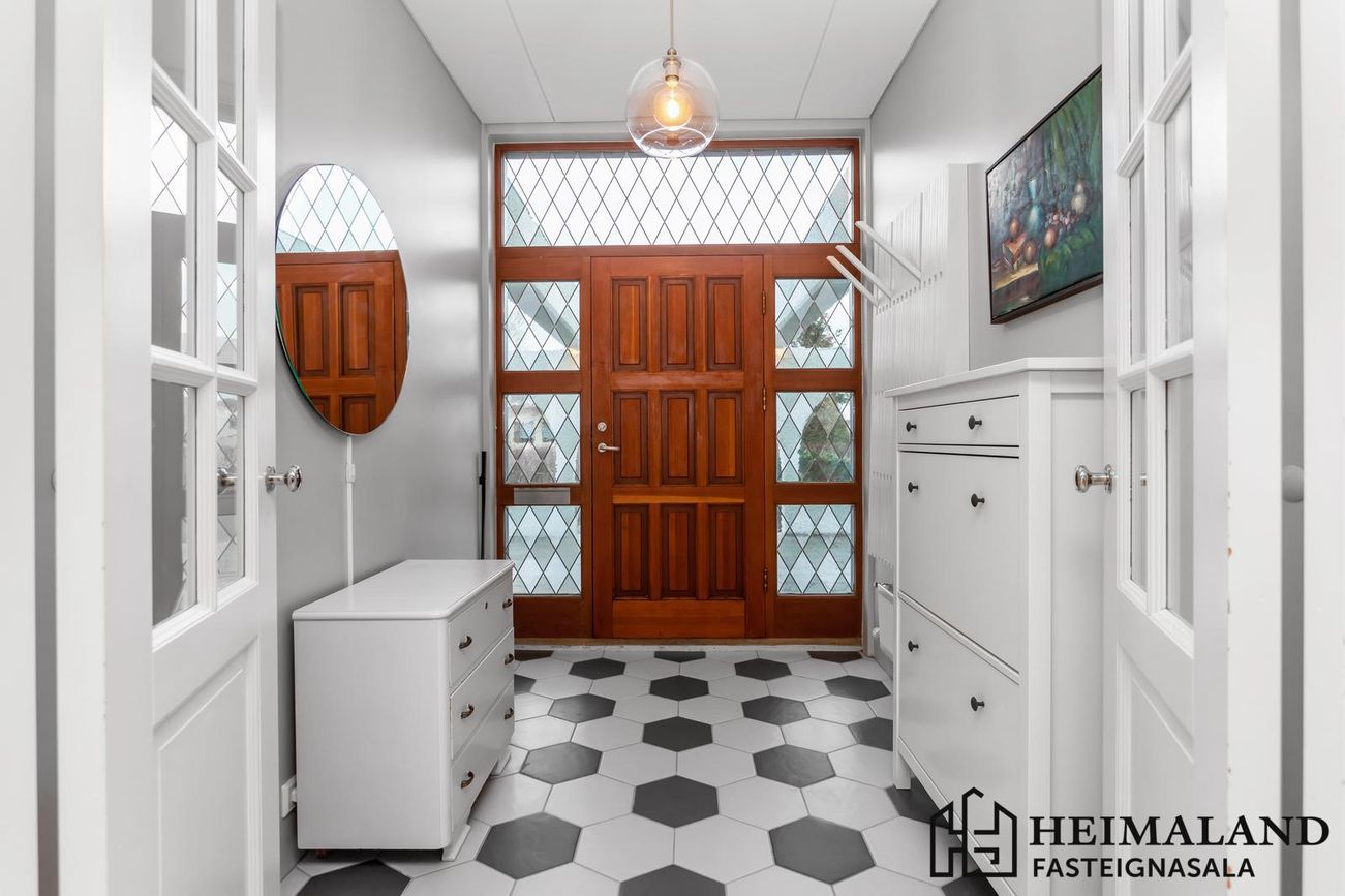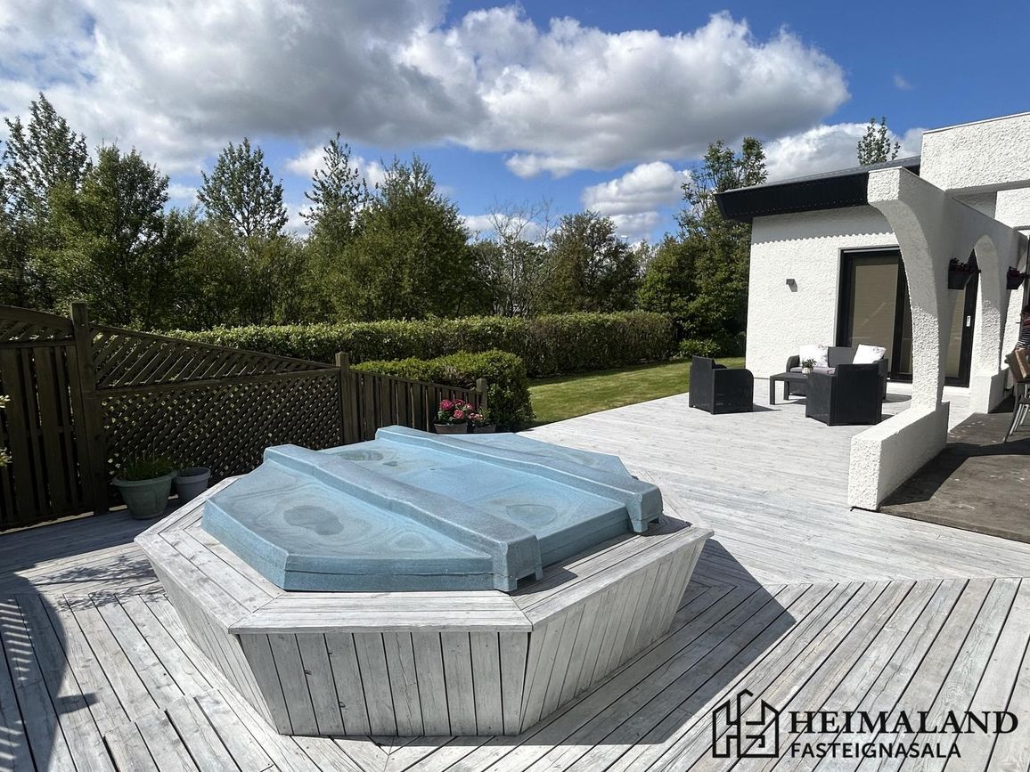 233,4m² einbýlishús með 5 svefnherbergi, 2 baðherbergi, bílskúr og heitan pott. Nýlegar endurbætur í gegnum árin.
