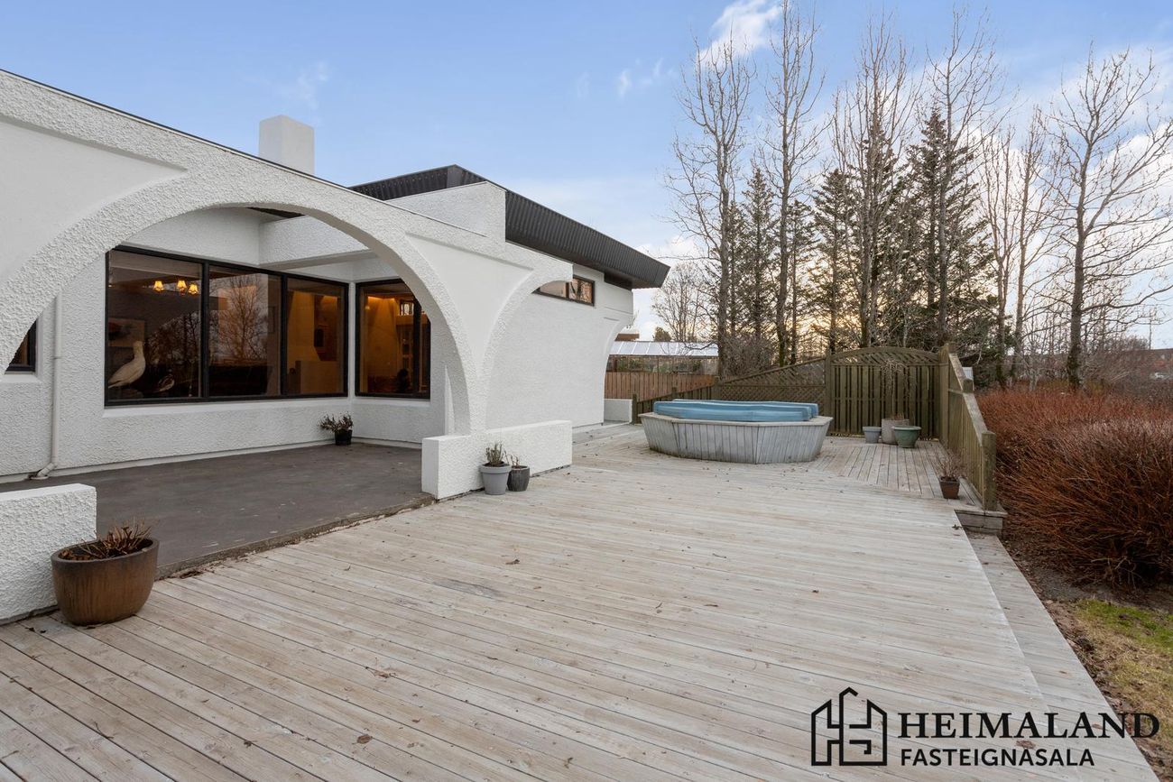 Byggt 1981, viðbygging 2007. Flott útlit með steyptum bílaplani, verönd og sólpalla. Útivistarsvæði og góð geymsla.