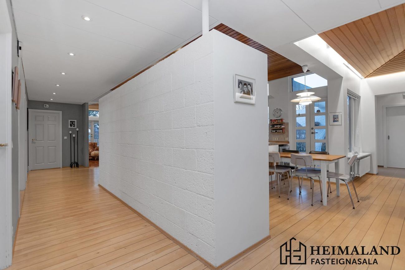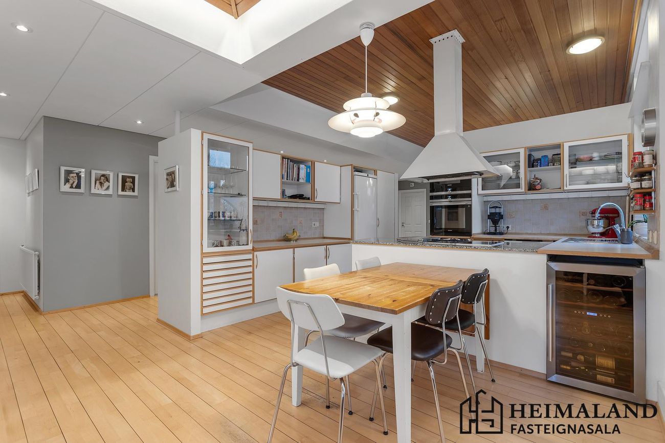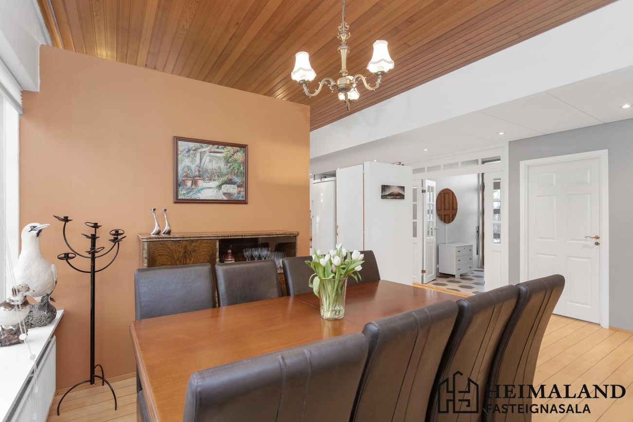 Hús með forstofu, borðstofu, sjónvarpshol, þvottahús og bílskúr með geymslulofti. Gegnheilt parket í stofusvæðum og flísar í baðherbergjum.