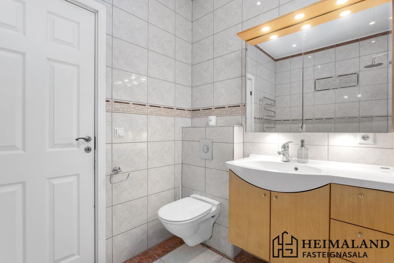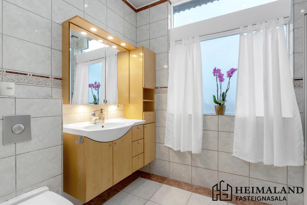 Tvö baðherbergi, eitt með gólfsturtu og nýlegu baðkari. Flísar og nýjar loftaþiljur.