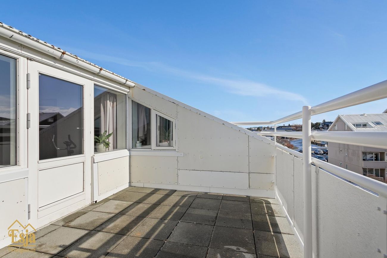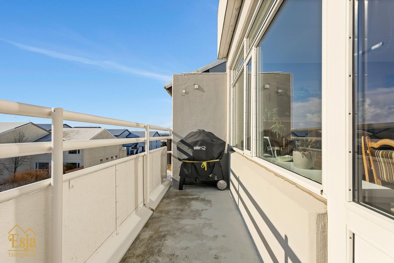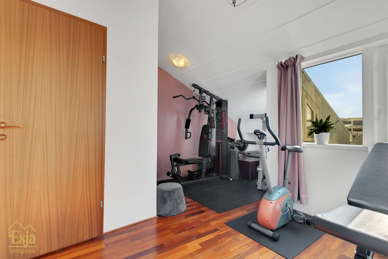 2. Herbergi er einnig rúmgott en það var hugsað sem hjónaherbergi, góðir skápar, þaðan er gengið út á stórar suð-austur svalir sem eru hellulagðar. Þetta herbergi er í dag notað sem líkamsræktaraðstaða og vinnuaðstaða.