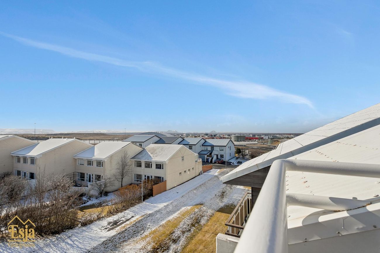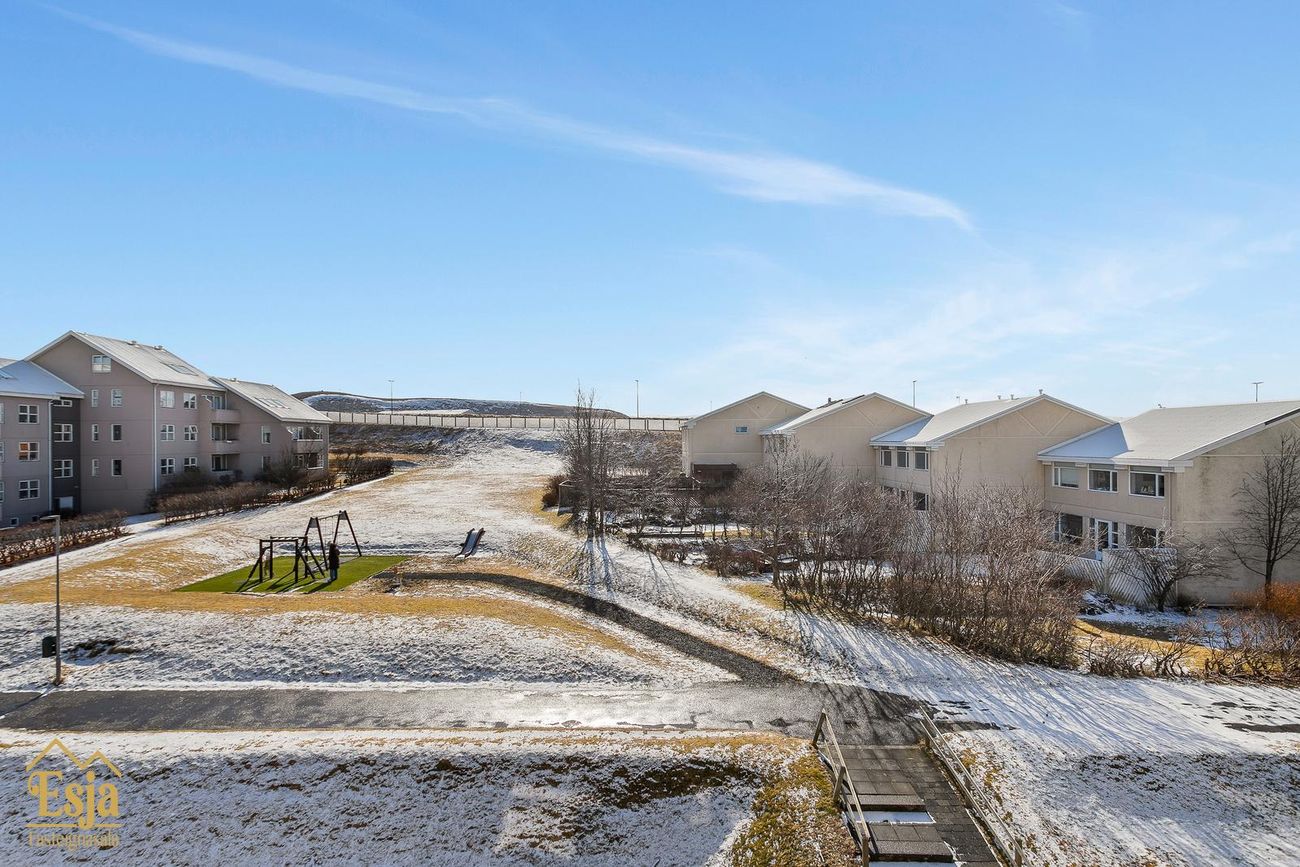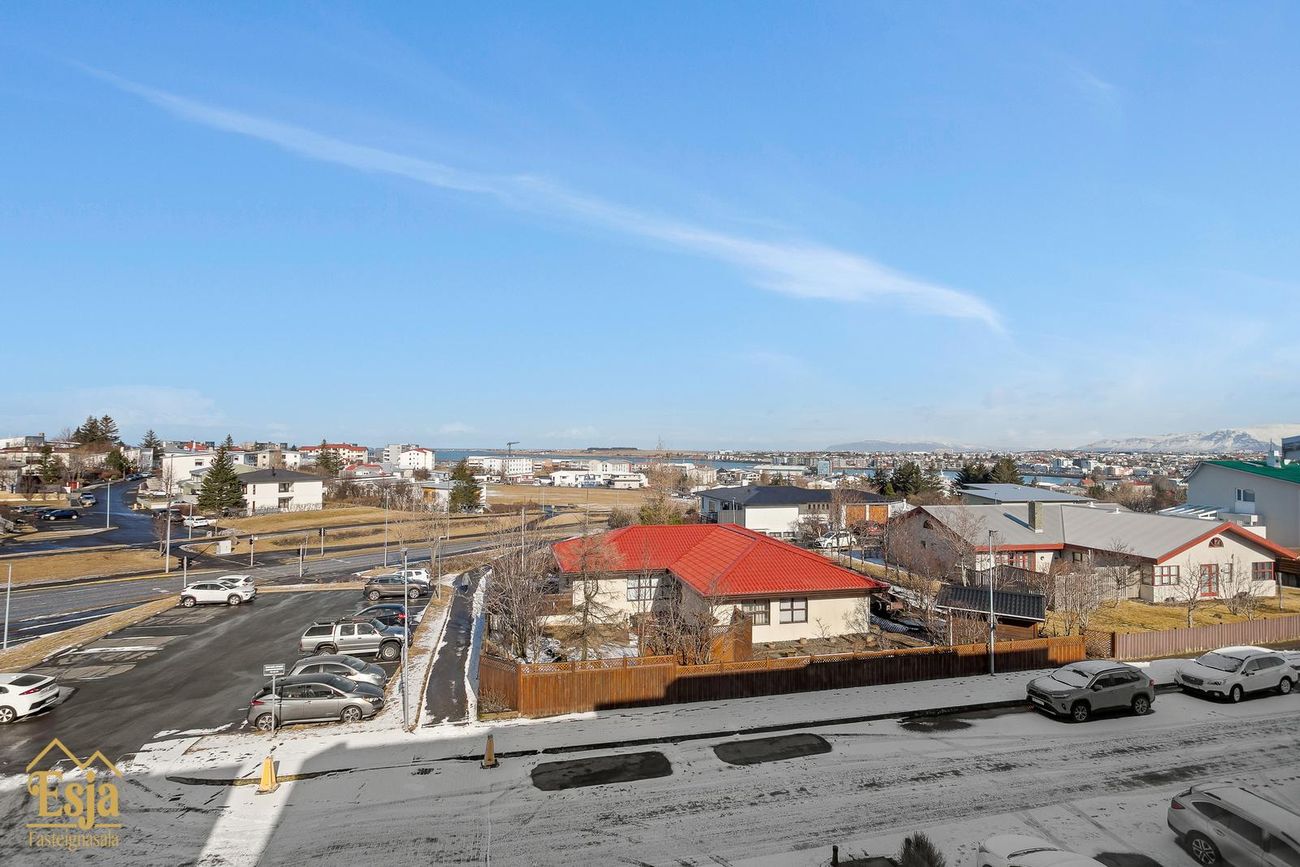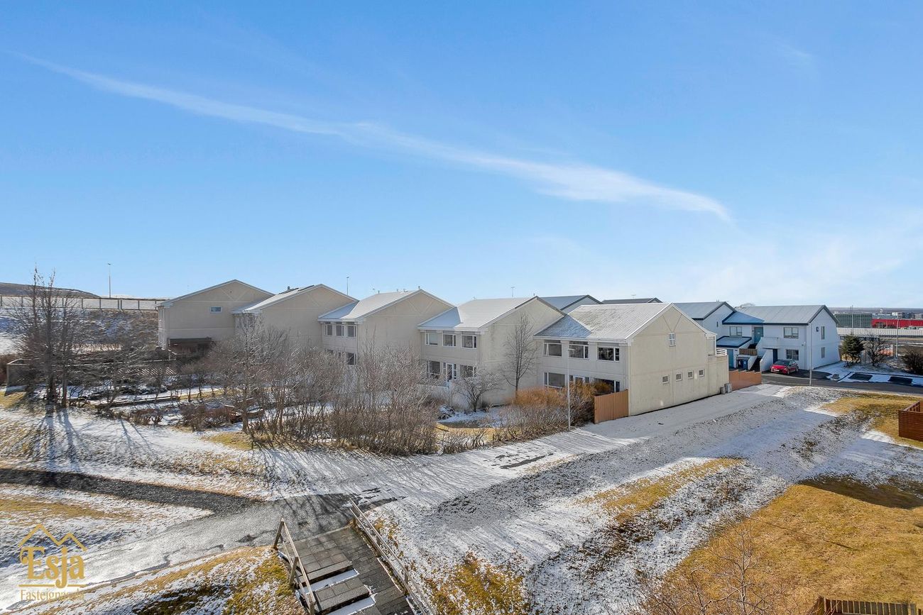 Góð aðkoma er að húsinu, bílastæði beint fyrir framan bílskúrinn þar sem auðvelt er að koma fyrir rafhleðslustöð, þá er töluvert af sameiginlegum stæðum við og nálægt húsinu og þar er hleðslustöð fyrir tvo bíla sem húsfélagið lét setja upp.