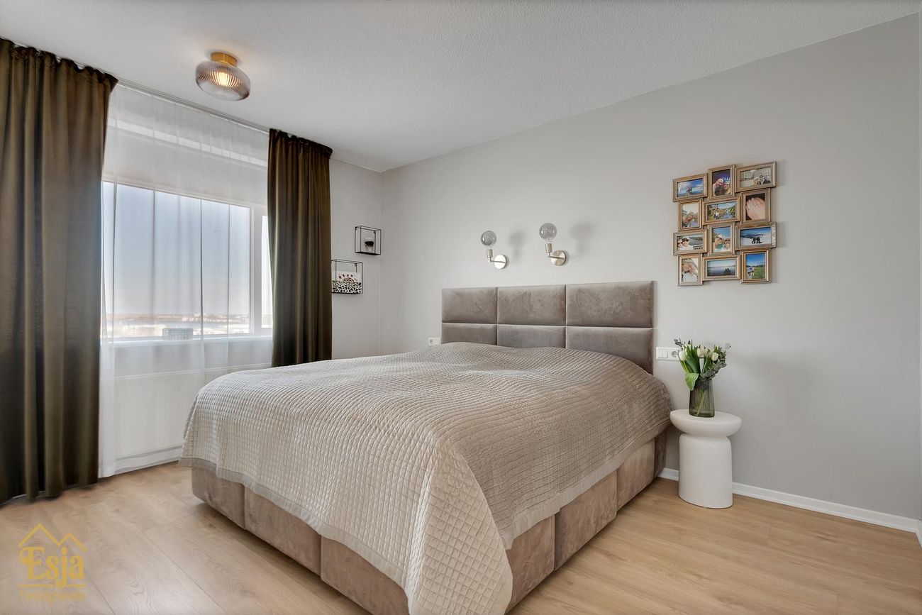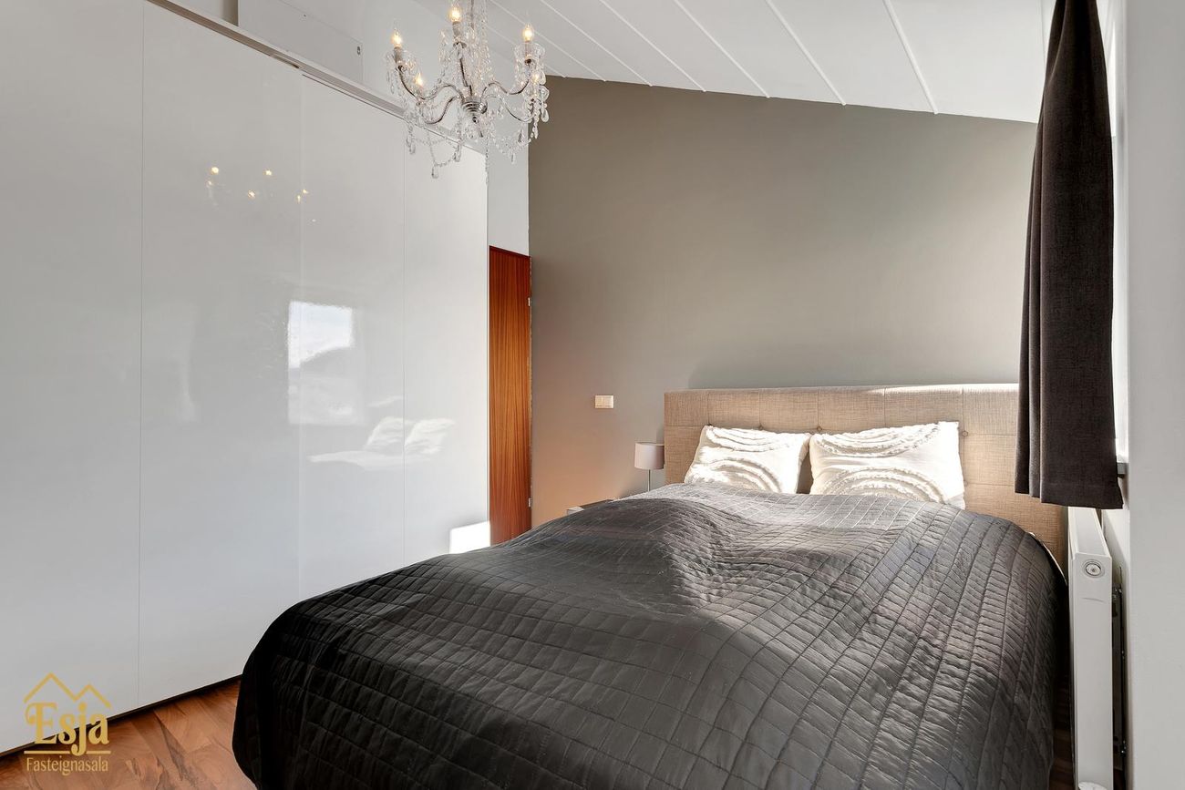 Þar er rúmgott hjónaherbergi með nýlegum og veglegum fataskápum.