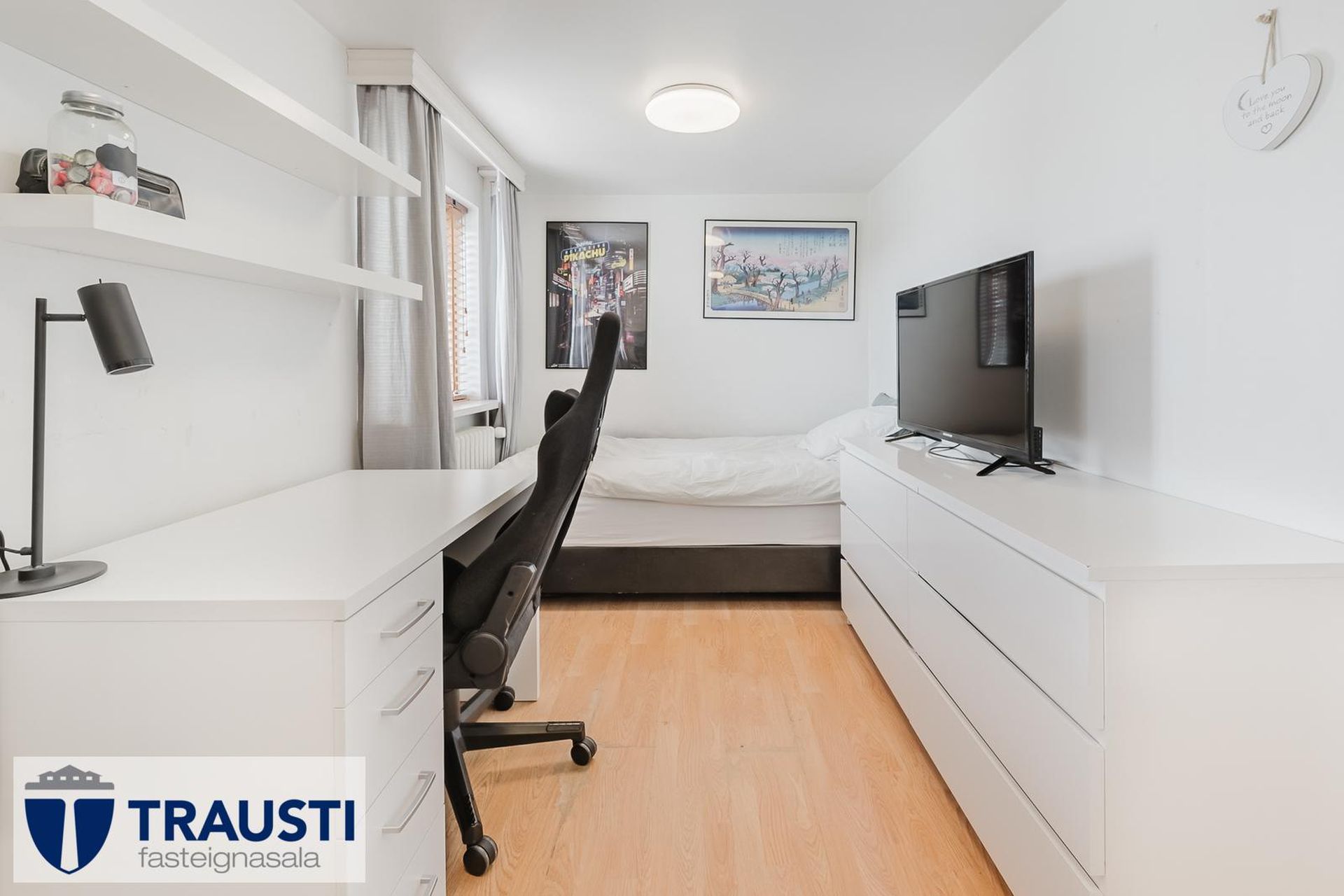 Sjónvarpsherbergi/herbergi er rúmgott og parketlagt. Getur verið 5.svefnherbergið.