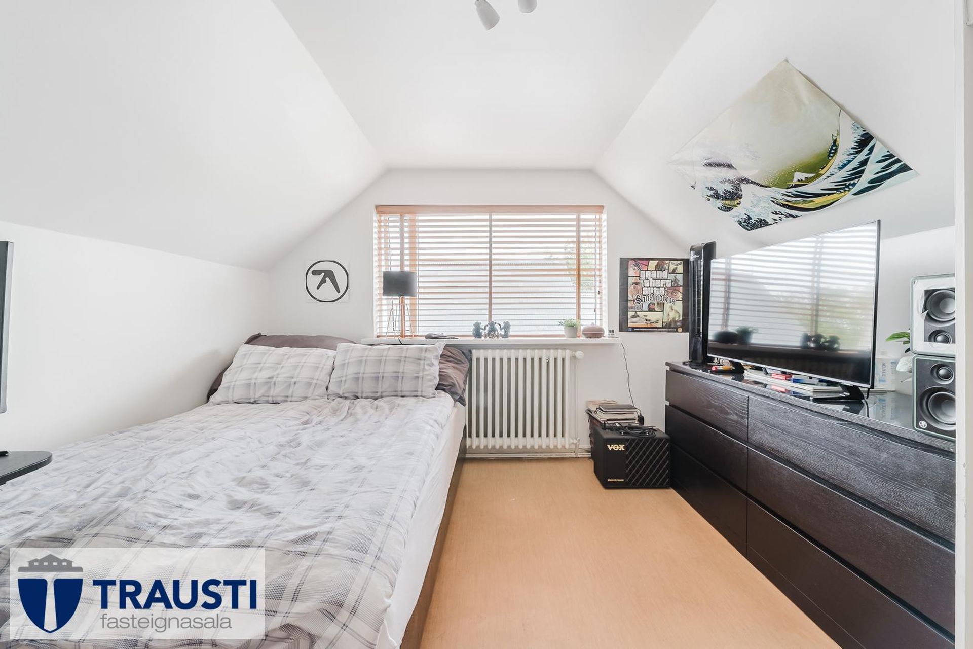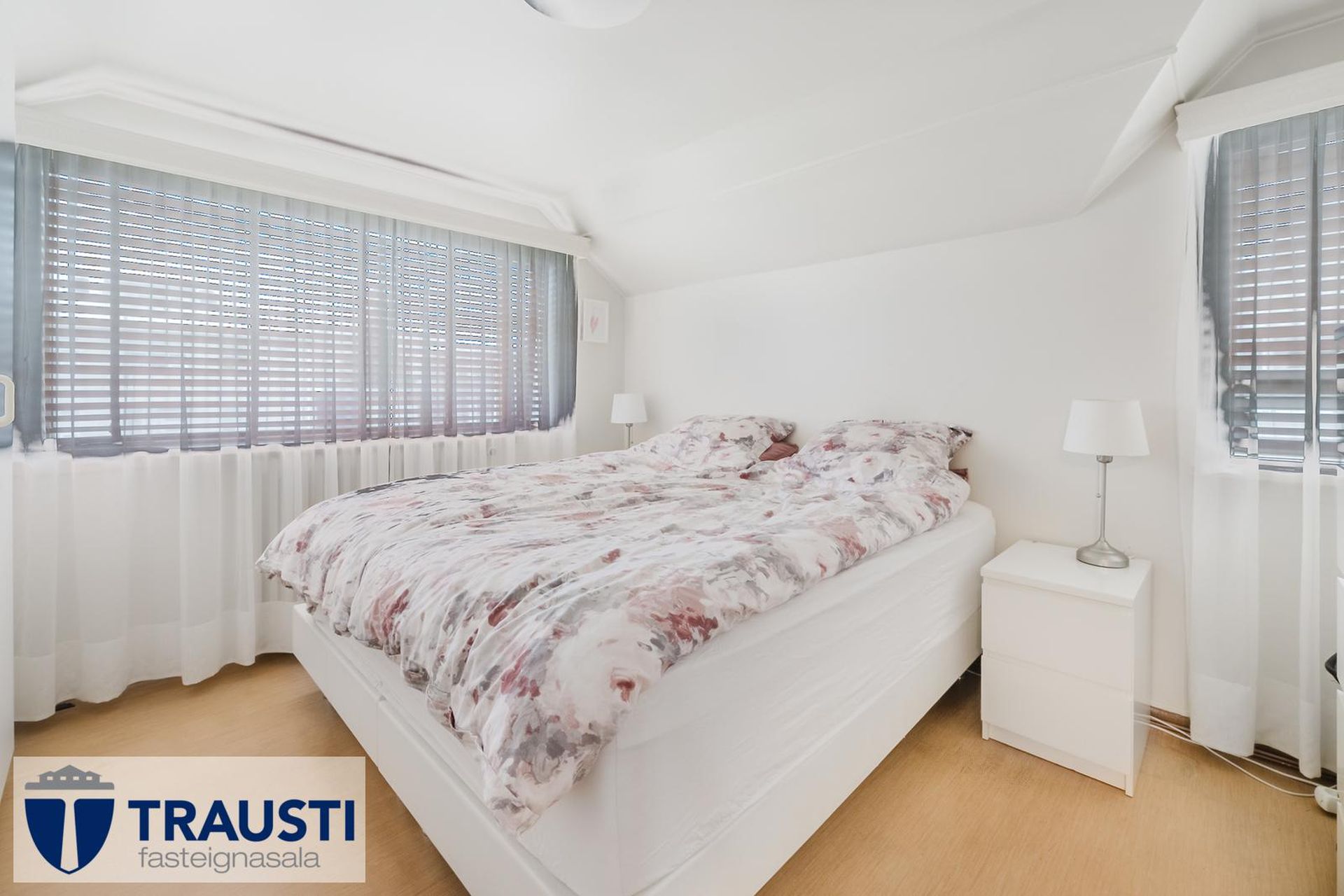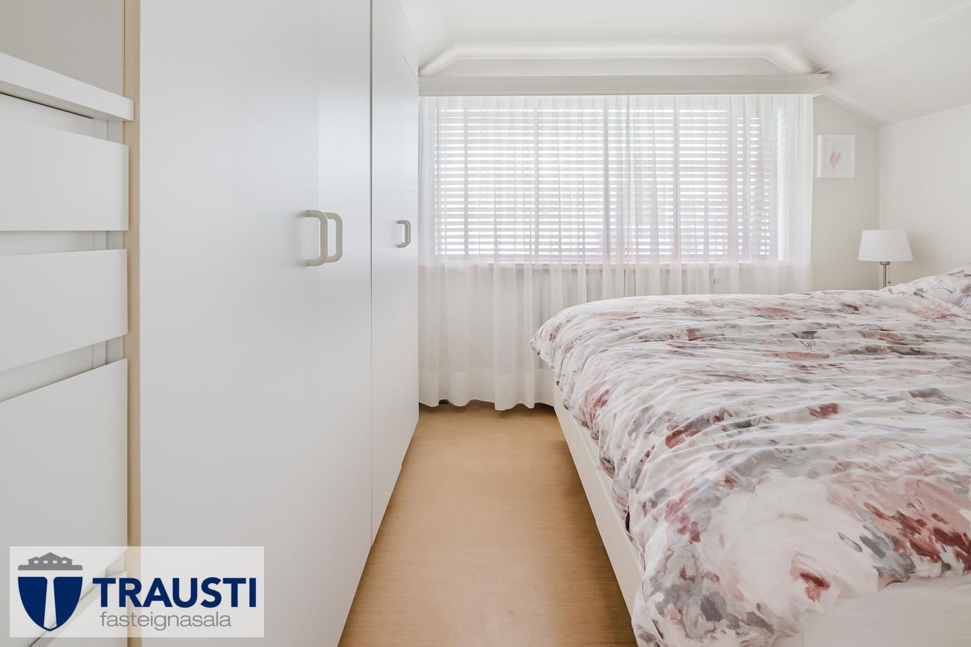Herbergi II er með parketi. Geymslupláss undir súð.