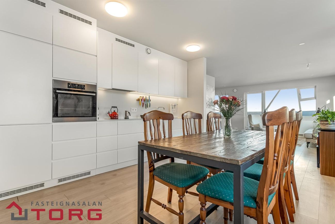 Fasteignasalan TORG kynnir : Falleg, vel skipulögð og björt, 3-4ra herbergja íbúð á 3.hæð í lyftuhúsi, merkt 302 með fallegu útsýni við Sunnukrika 3A í Mosfellsbæ. Íbúðin er skráð samtals 126 ,7 m2, þar af íbúðin 116,2 m2 og 10,5 m2 geymsla. Möguleiki er að bæta við auka herbergi. Íbúðin skiptist í forstofu, stofu, eldhús 2 svefnherbergi en lítið mál að bæta við aukaherbergi, baðherbergi, gestasalerni og þvottaherbergi. Sérgeymsla íer í sameign. Íbúðin er með harðparketi á gólfum frá Parka og flísalögð votrými með flísum frá Álfaborg. AEG tæki í eldhúsi þ.e. innbyggður ísskápur og innbyggð uppþvottavél ásamt viftu, spanhelluborði og bökunarofn. Eldhús, bað- og þvottahúsinnréttingar ásamt innihurðum eru hvítar á lit, allt frá Selós ehf. Góðar svalir. Öll þjónusta innan seilingar, s.s. verslanir, heilsugæsla, bókasafn, Lágafellslaug og Golfvöllur Mosfellsbæjar (Hlíðarvöllur). Krikaskóli í göngufæri. Samgöngutengingar góðar og stutt í ýmsa útivistarmöguleika allt í kring. Heilsugæsla, verslun og skrifstofur eru á fyrstu og og annarri hæð hússins.