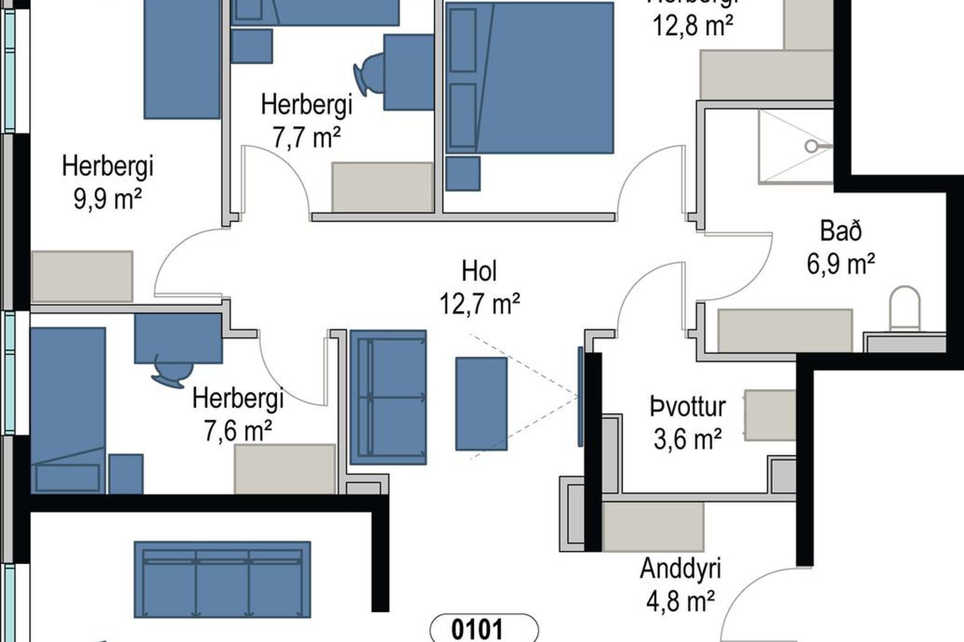 ***BÓKIÐ EINKASKOÐUN HJÁ SÖLUMÖNNUM***LIND Fasteignasala og ÞG Verk kynna með stolti nýjan áfanga í sölu við Sunnusmára 1-5 í Kópavogi. 62 nýjar og glæsilegar íbúðir í vönduðu fjölbýlishúsi. Um er að ræða fjölbreyttar 2ja - 5 herbergja íbúðir í lyftuhúsi og fylgja bílastæði með flestum íbúðum. Innangengt er úr bílakjallara í lyftu- og stigahús. Svalir eða sérafnotaflötur fylgir öllum íbúðum ásamt séreignageymslu í kjallara. Öll eldhústæki fylgja og er kæliskápur með frysti og uppþvottavél innbyggð í innréttingu.Húsið er steinsteypt og útveggir einangraðir að utan, klætt álklæðningu sem tryggir lágmarks viðhald húsanna. Gluggar eru ál/tré kerfi og glerjaðir með K-gleri. Innveggir aðrir en steyptir eru úr hleðslusteini. Fallegur sameiginlegur garður til suðurs sem verður fullfrágenginn.Íbúð 101: Er glæsileg 5 herbergja íbúð. Heildarstærð er 158,8 fermetrar og er staðsett á fyrstu hæð. Íbúðinni fylgir bílastæði í bílakjallara og 19,8 fermetra geymsla. Stór 24,5 fermetra verönd til suðurs. Afhending er áætluð í apríl/maí 2023 en þó með fyrirvara um að öryggisúttekt sé komin á húsið. Nánari lýsing hér neðar.Allar nánari upplýsingar á heimasíðu verkefnisins. Skoðaðu með að smella hérna: www.tgverk.is BÓKIÐ SKOÐUN!ALLAR NÁNARI UPPLÝSINGAR VEITA:Heimir F. Hallgrímsson í síma: 849-0672 / Hrafnkell P. H. Pálmason í síma: 690-8236 / Guðmundur Hallgrímsson í síma: 898-5115 / Nánari lýsing:Íbúðin skiptist í forstofu, eldhús með eyju í alrými með stofu/borðstofu, 4 svefnherbergi, baðherbergi, sjónvarpsstofu, gestasnyrtingu og þvottaherbergi. Útgengt á 24,5 fermetra verönd til suðurs úr stofu. Anddyri: Með fataskápum frá GKS.Svefnherbergin: Eru fjögur talsins með fataskápum frá GKS.Stofa: Með gluggum til suðurs og vesturs. Opið við eldhús.Verönd: Til suðurs sem er 24,5 fermetrar að stærð.Eldhús: Með eldhúsinnréttingu frá Nobilia og eldhústækjum frá Bosch (Blástursofn, spansuðuhelluborð, innbyggð uppþvottavél og innbyggður kæliskápur með frysti. Eyjuháfur yfir eyju).Baðherbergi: Með fallegum flísum á gólfi og hluta veggja. Flísalögð sturta með glerþili. Innrétting við vask, speglaskápur, upphengt salerni, handklæðaofn og útloftun.Gestasalerni: Með flísum á gólfi, upphengdu salerni og vaski.Þvottaherbergi: Með flísum á gólfi, tengi fyrir þvottavél/þurrkara og útloftun.Sérstæði: Er sérmerkt í lokuðum bílakjallara.Sunnusmári er nýtt hverfi miðsvæðis á höfuðborgarsvæðinu þar sem stutt er í alla þjónustu, verslanir, skóla og leikskóla. Sunnusmári er frábær kostur fyrir þá sem kjósa að búa í íbúðarhverfi þar sem öll helsta þjónusta er í næsta nágrenni.ÞG Verk hafa yfir 20 ára reynslu á byggingarmarkaði. Fyrirtækið leggur áherslu á vandaðar íbúðir, góða þjónustu og skil íbúða á réttum tíma. Áreiðanleiki, gæði og notagildi eru einkunnarorð ÞG verks og fyrirtækið kappkostar að eiga gott samstarf við viðskiptavini sína. Innréttingar: Í eldhúsum og baðherbergjum eru frá þýska framleiðandanum Nobilia og fataskápar frá GKS smíðaverkstæði. Eldhúsinnréttingar eru mismunandi útfærðar eftir íbúðum. Ýmist með dökkri viðarárferð (hnota frá GKS) en svörtum efri skápum eða með hvítum skápum en efri skápar með dökkri viðarárferð (hnota frá GKS). Fataskápar eru hvítir. Lýsing undir efri skápum í eldhúsum. Speglaskápar eru á böðum. Eldhústæki: Íbúðunum fylgja vönduð eldhústæki af gerðinni Bosch. Íbúðum er skilað með span helluborði, innbyggðum kæliskáp, innbyggðri uppþvottavél, blástursofni og viftu eða lofthengdum eyjuháfi þar sem það á við.Hreinlætistæki: Salernisskál er vegghengd með innbyggðum vatnskassa. Sturtur eru með flísalögðum botni og hertu sturtugleri. Hreinlætistæki eru frá Damixa. Þvottahús eru ýmist innan baðherbergja eða í sér rými.Aðalhönnuður: Er teiknistofan ARKIS ehf. Hanna verkfræðistofa ehf. sér um hönnun burðarvirkis, Teknis ehf. um hönnun lagna og Lumex um raflagnahönnun.Seljandi áskilur sér allan rétt til að gera efnis-, tæknilegar- og útlits breytingar meðan á byggingaframkvæmd stendur.Kaupandi greiðir skipulagsgjald sem nemur 0,3% af brunabótamati þegar það er lagt á.Heimild seljanda til að breyta eignaskiptasamning sé þess þörf án þess þó að rýra eignarrétt kaupanda. Innréttingateikningar eru þær sem gilda ef misræmi er milli arkitektateikninga og innréttingateikninga og eru þær áritaðar og hluti samningsins.Hafðu samband til þess að fá nánari skilalýsingu.