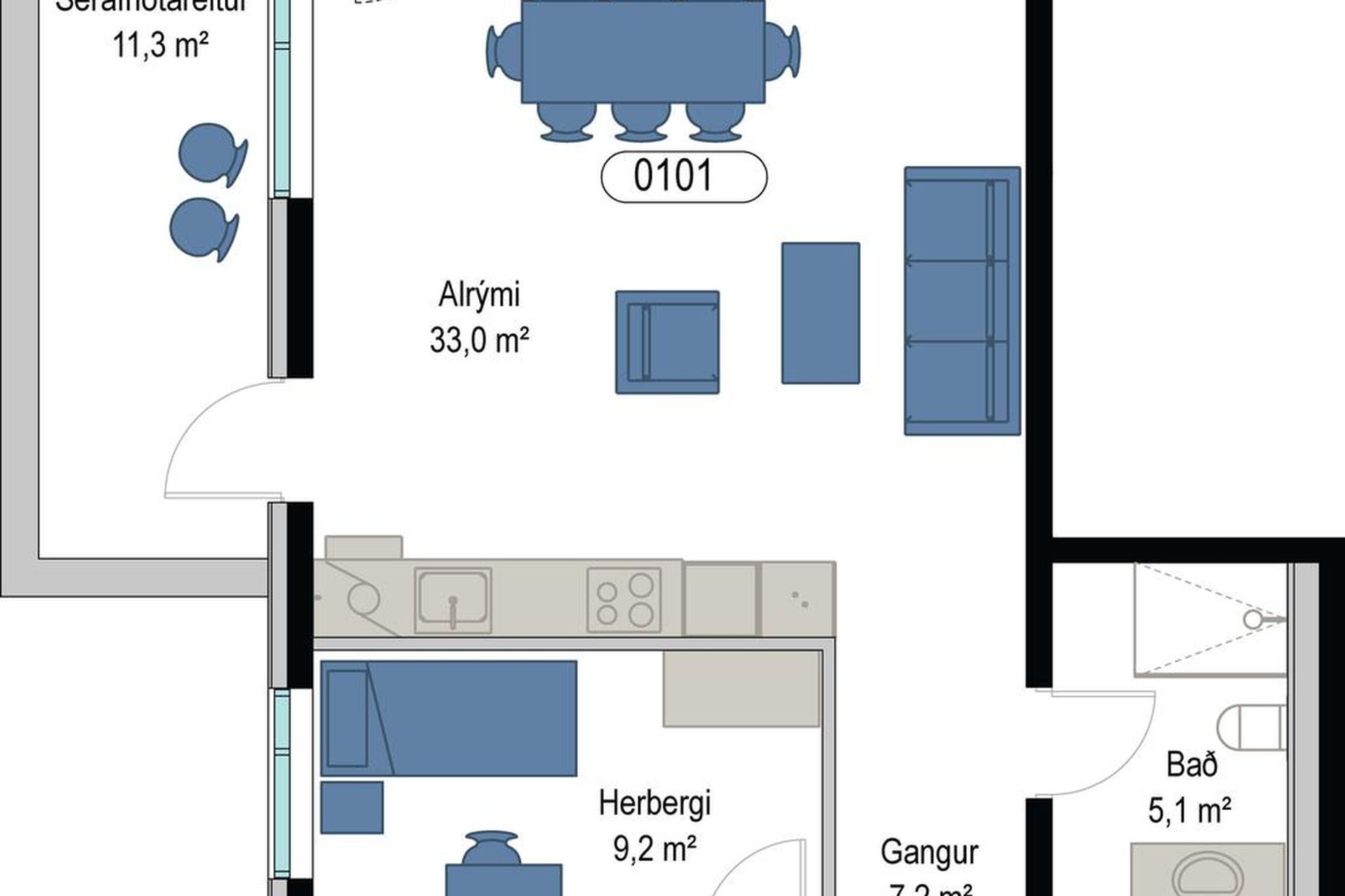 | 3 | 102,90 m² | 76.900.000 kr. 7. desember 2024 | 76.000.000 kr. 2. janúar 2025 |