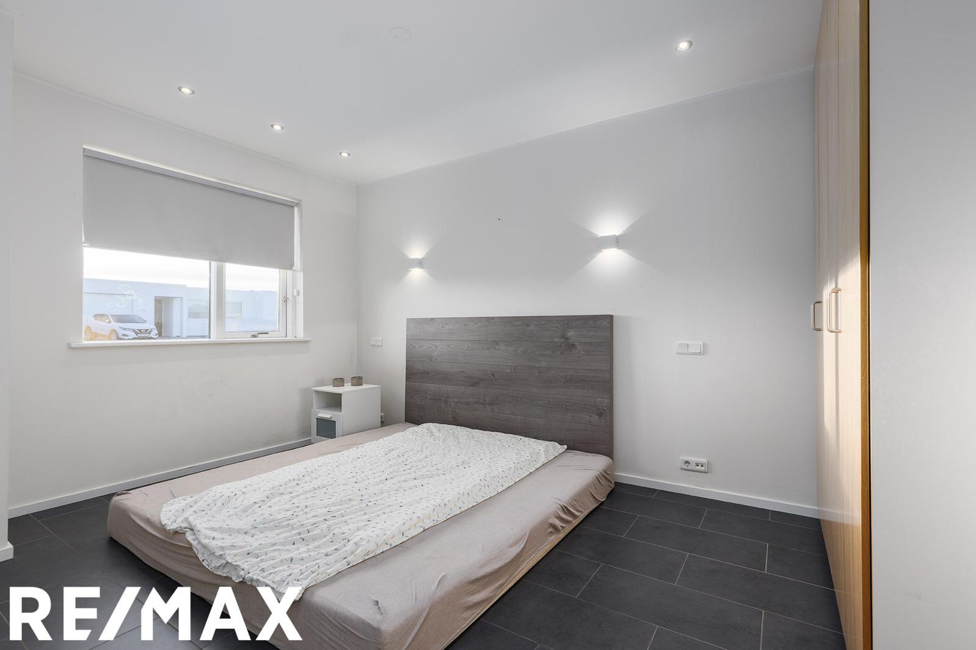 Hjónaherbergi: Er rúmgott með stórum klæðaskápum