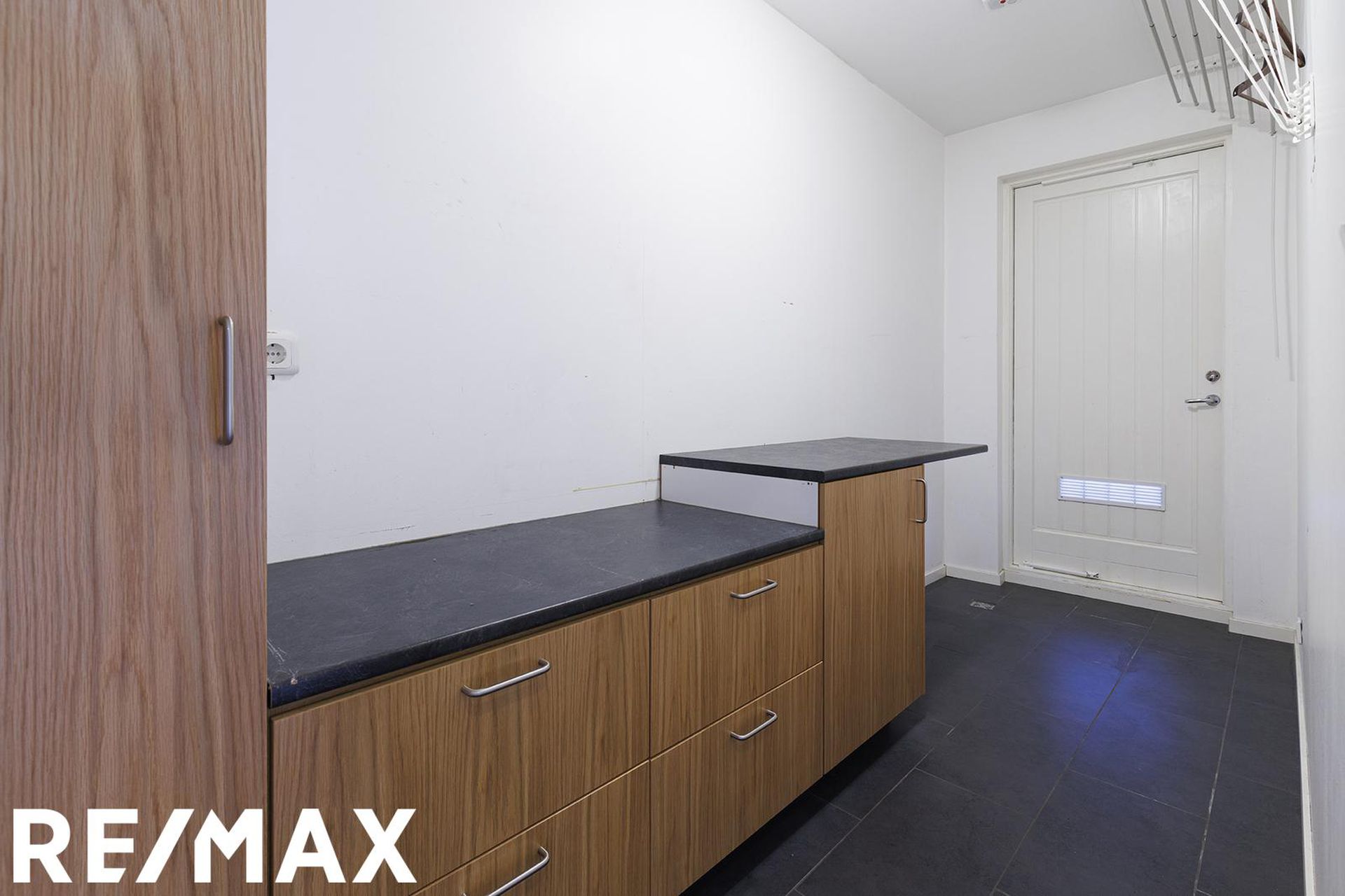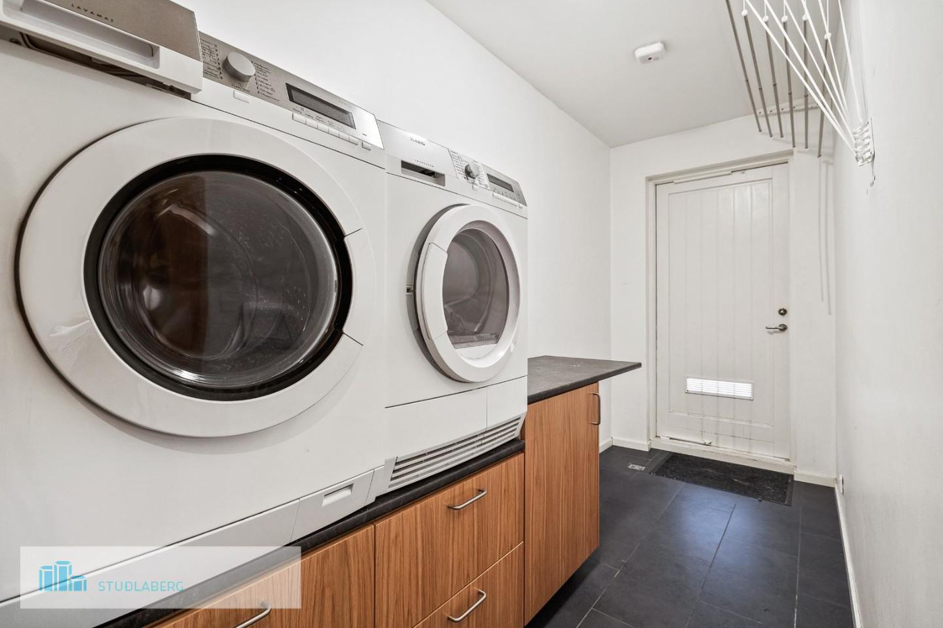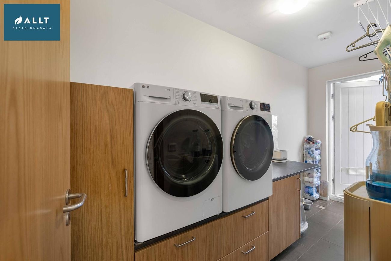 Þvottahús/geymsla: Er með innréttingu fyrir þvottavél og þurrkara og útgengi út á sólpall.