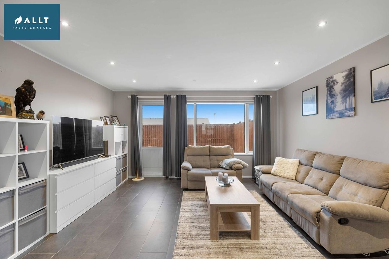 ALLT fasteignasala kynnir í einkasölu bjart og fallegt endaraðhús að Svölutjörn 2, 260 Reykjanesbæ.Eignin er vel skipulögð á einni hæð, hefur 3 svefnherbergi og innangengan bílskúr, birt heildar stærð eignarinnar er 154,6 fm.