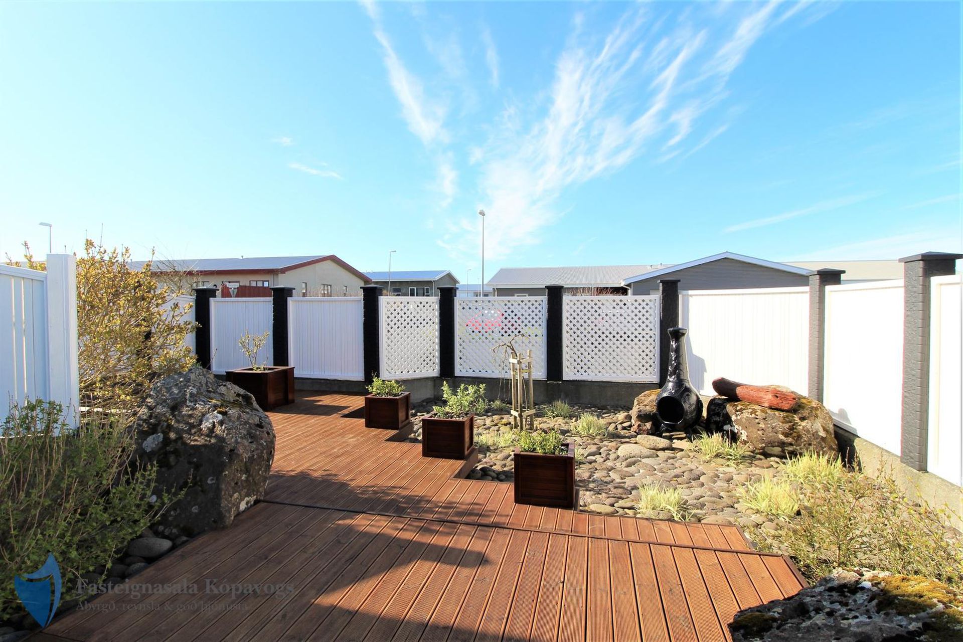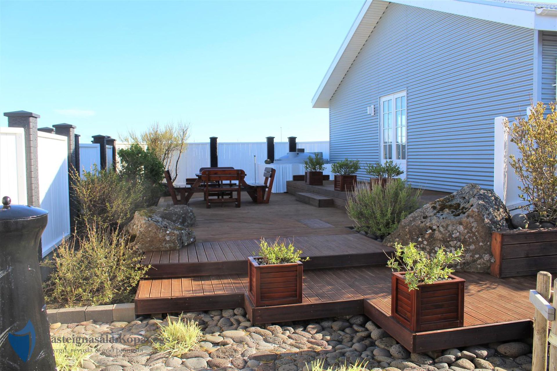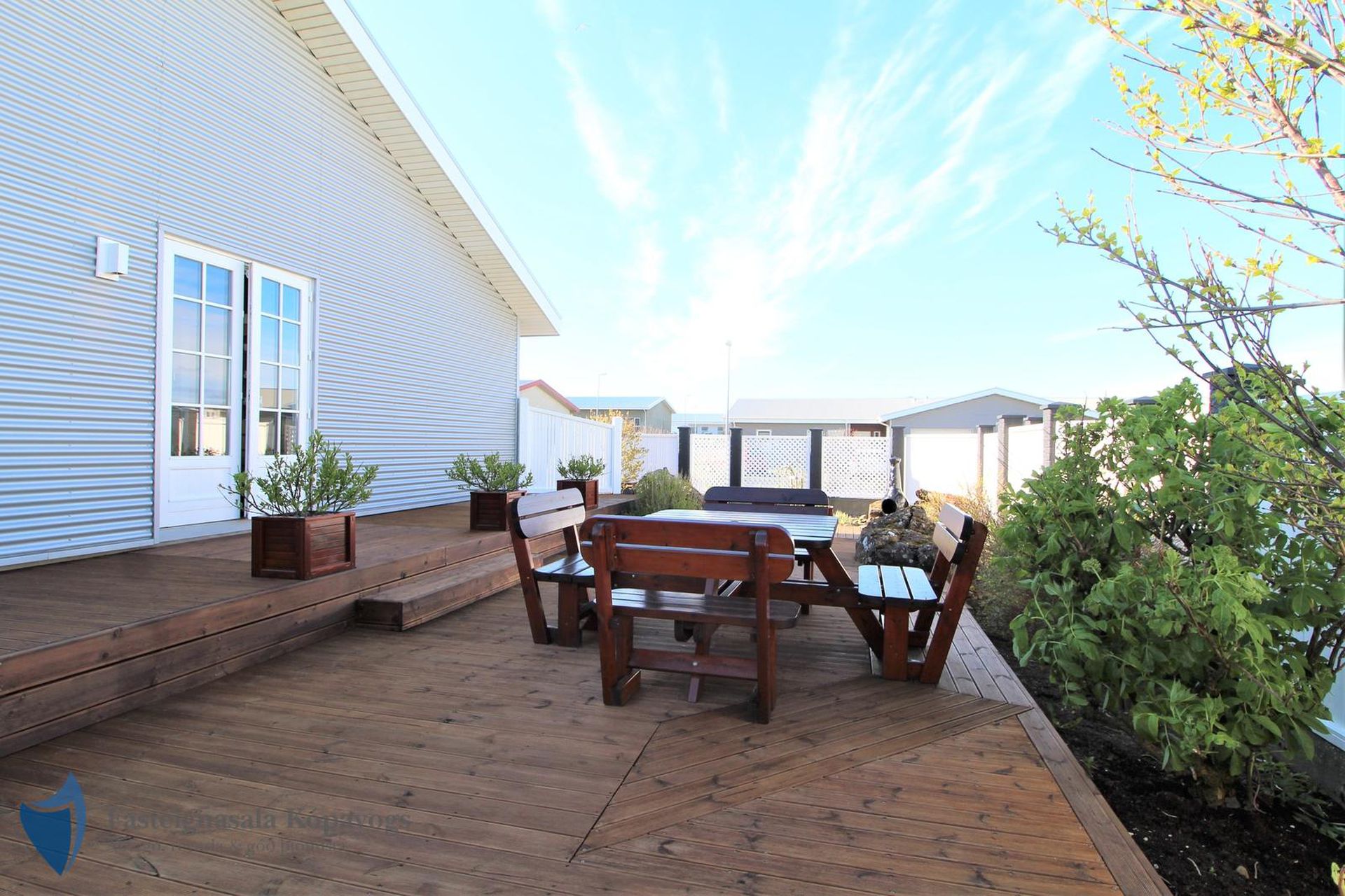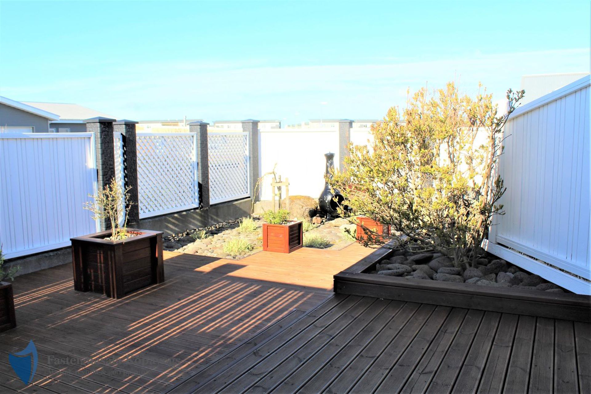 Timburverönd með heitum potti frá Trefjum.