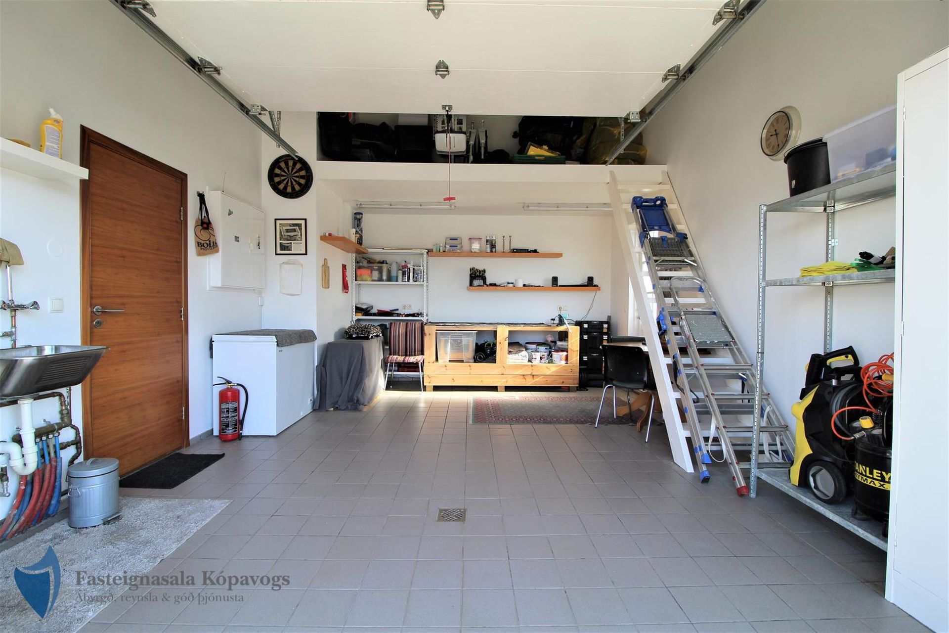 Geymsluloft í bílskúr.