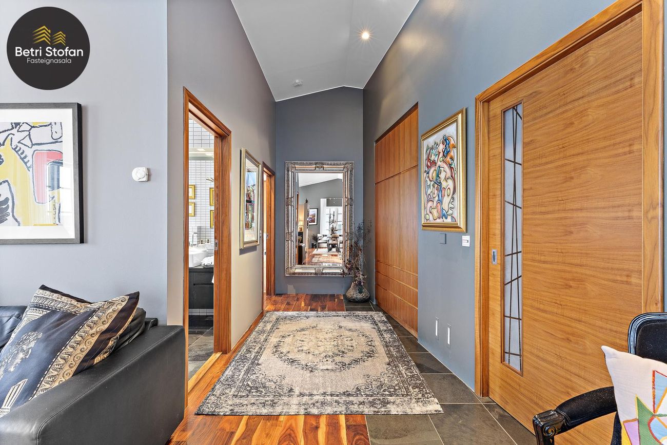 Ryksugukerfi í veggjum og fjarskiptastýrð lýsing.
