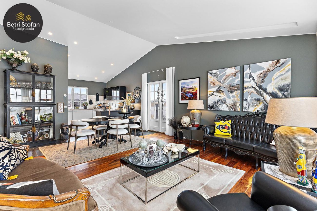 Einn hæðarkostur með arkitekthönnun, sérsmíðuðum innrættingum og fjarskiptastýrðri lýsingu. Möguleiki á að bæta við herbergi í sjónvarpsherbergi.
