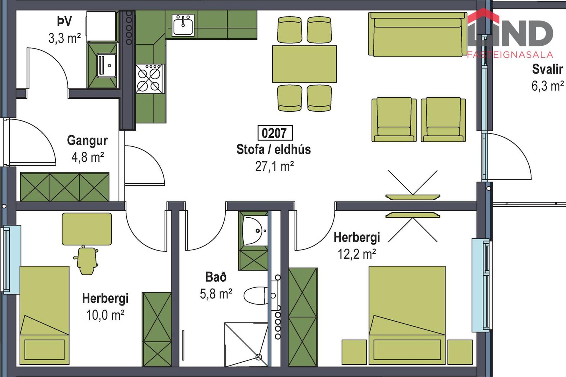 | 95,10 m² | 68.990.000 kr. 1. apríl 2026 | - - |