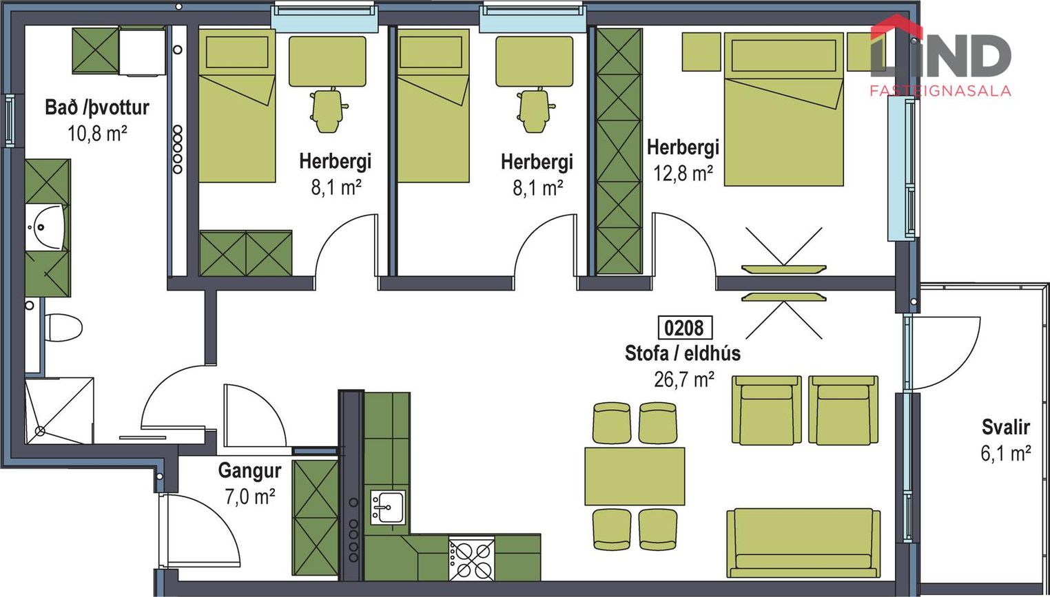 | 95,10 m² | 68.990.000 kr. 1. apríl 2026 | - - |