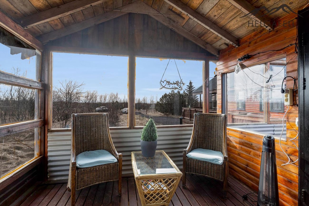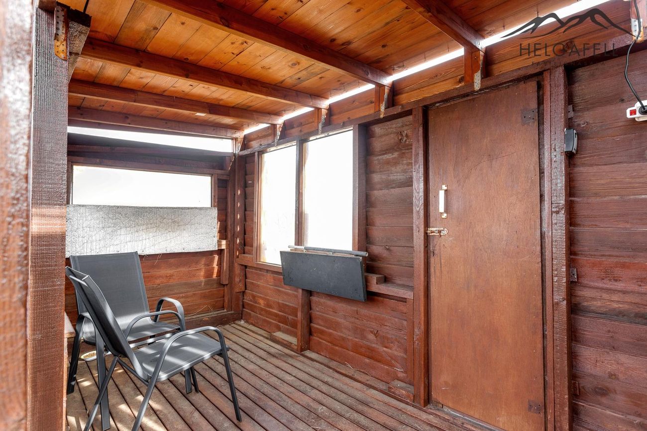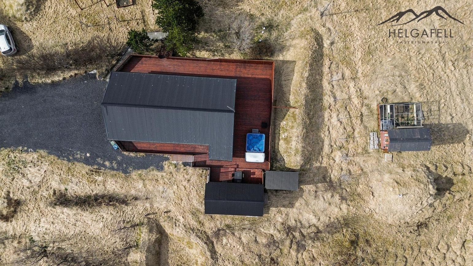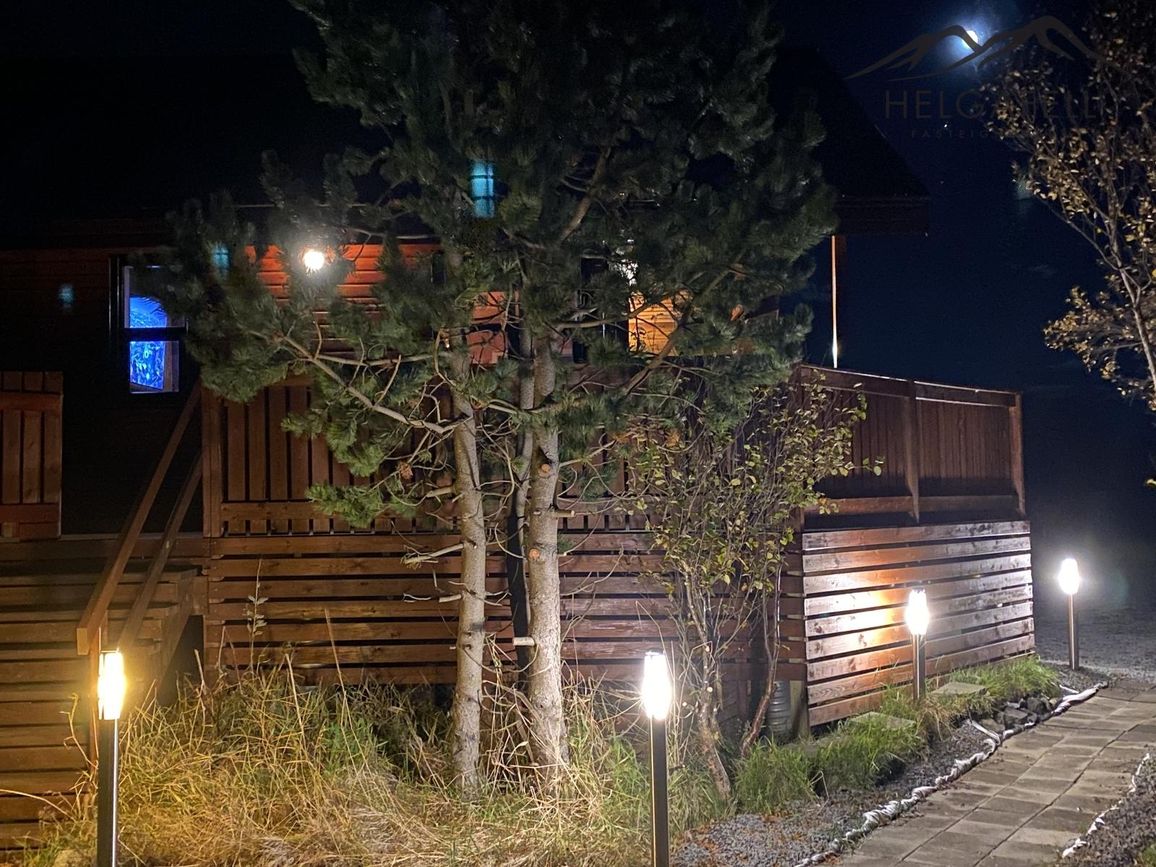 Stór verönd kringum allt húsið með hitaveitupotti og grillskýli.