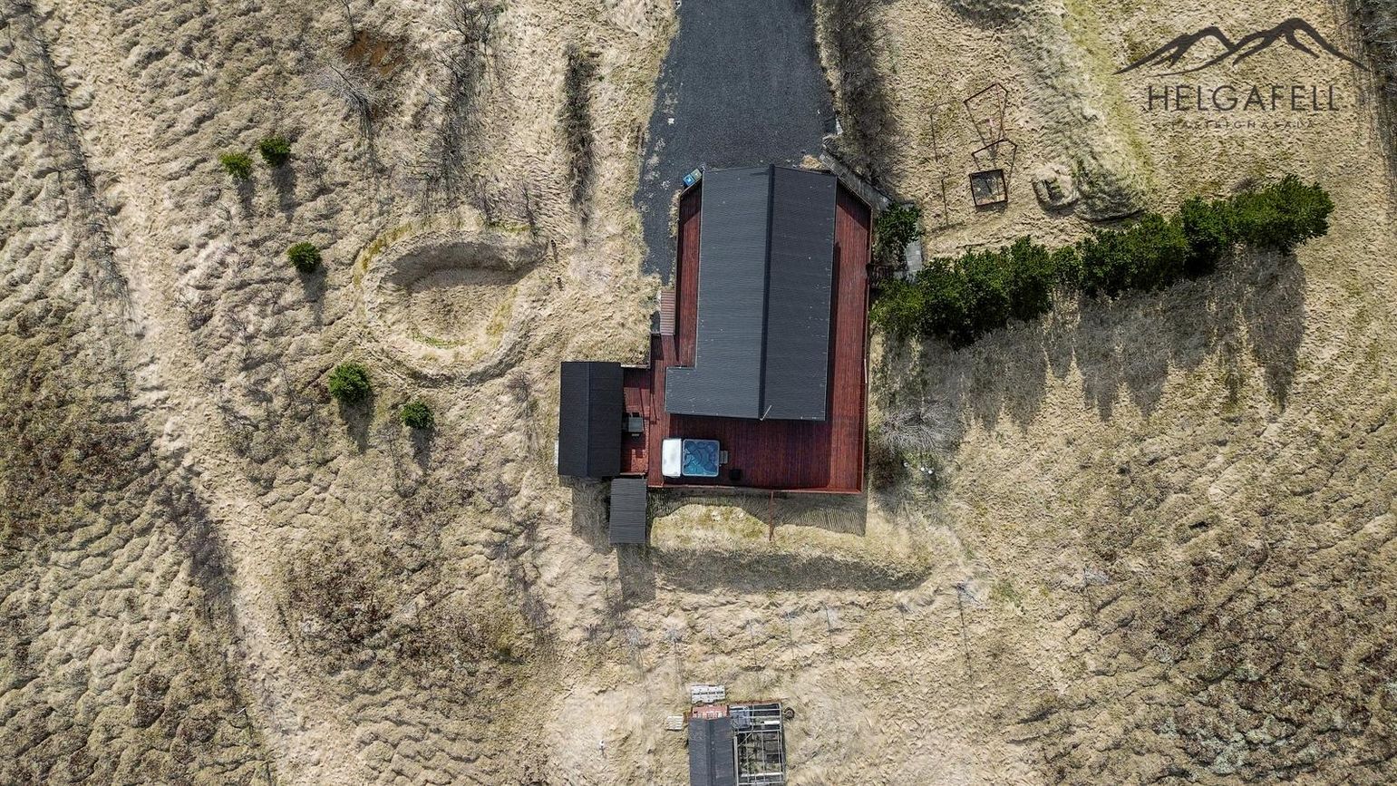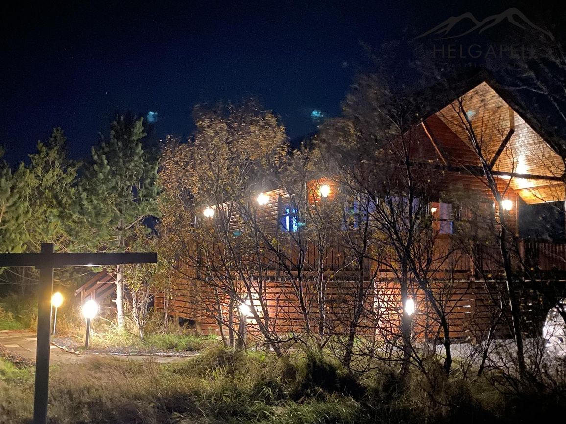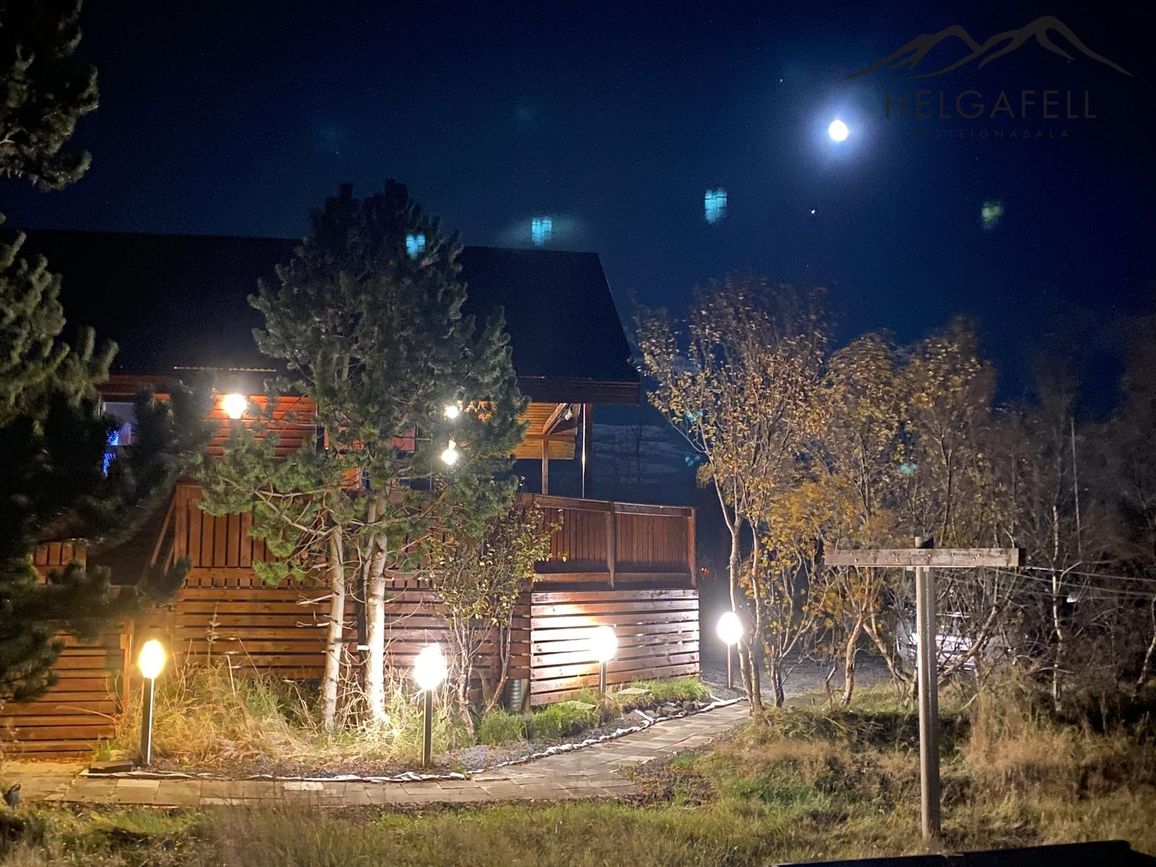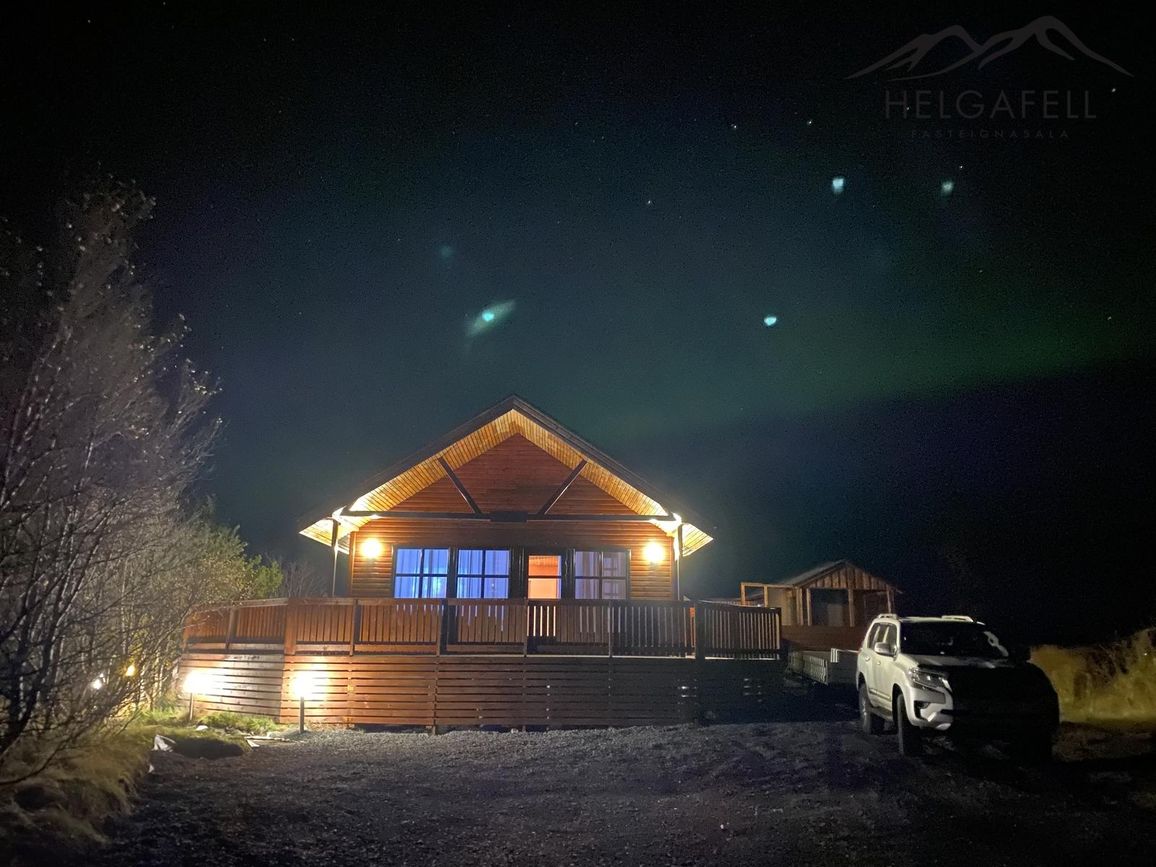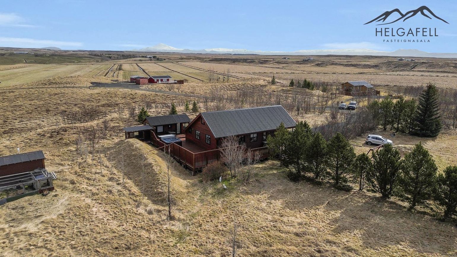 Stór verönd kringum allt húsið með hitaveitupotti og grillskýli.