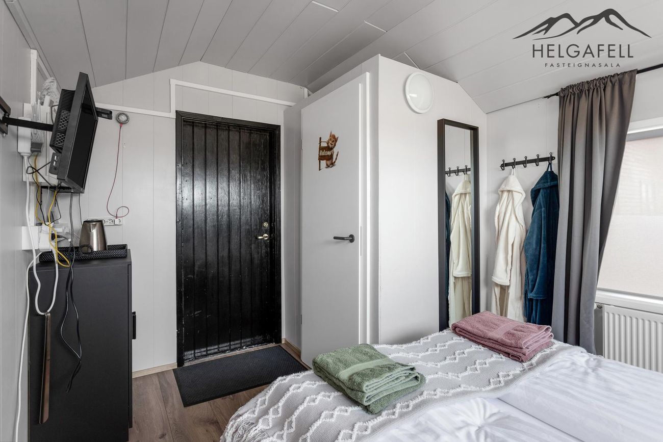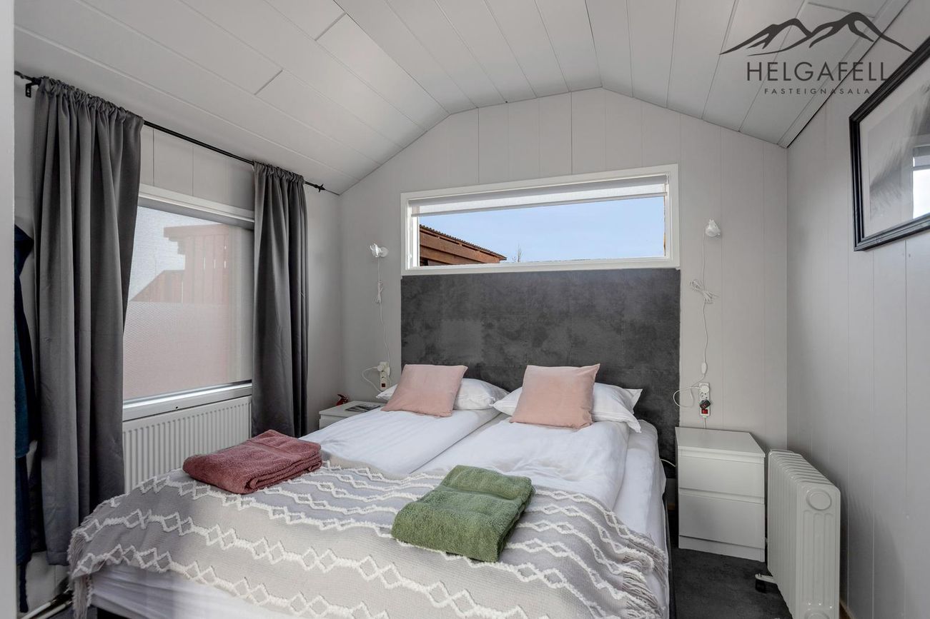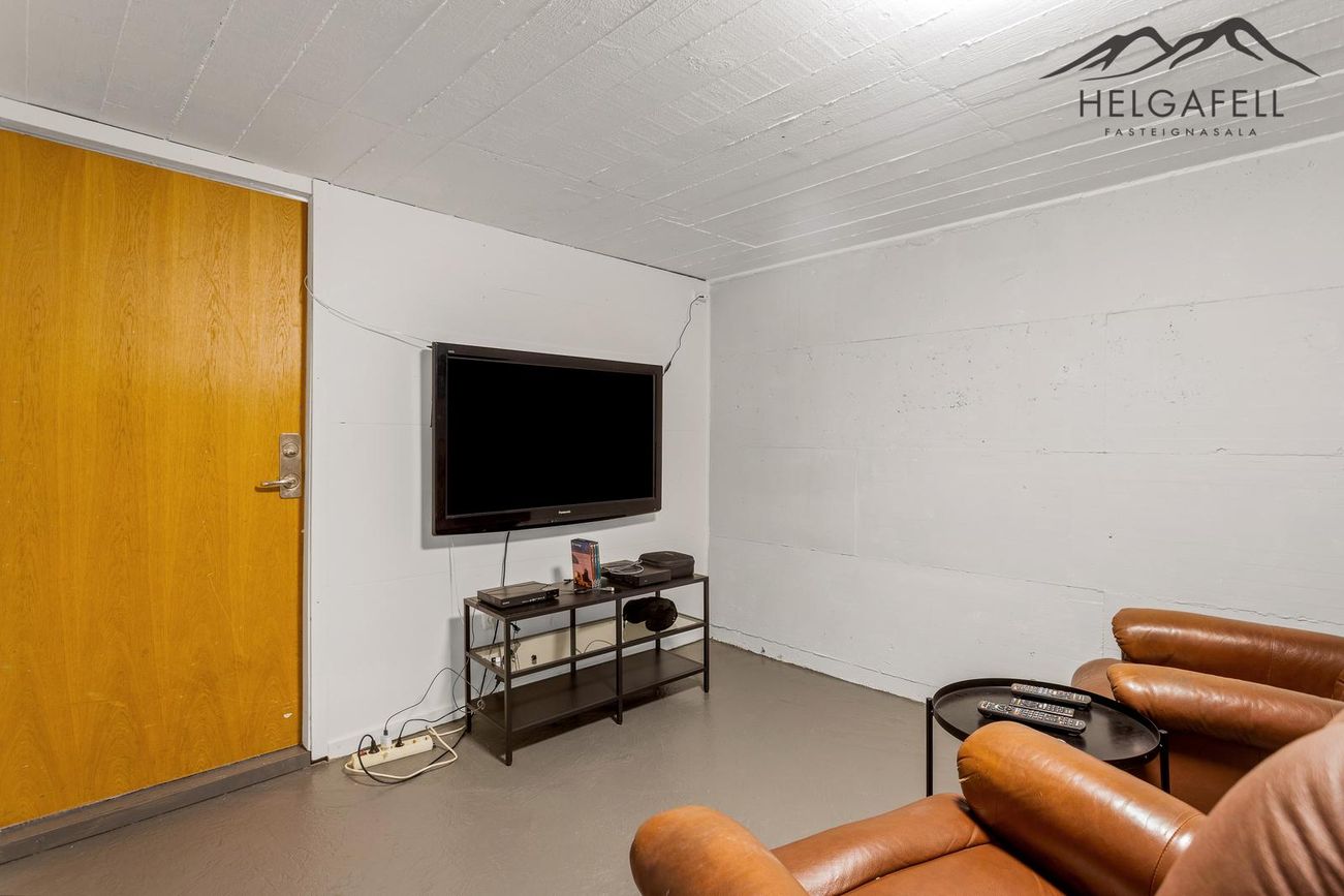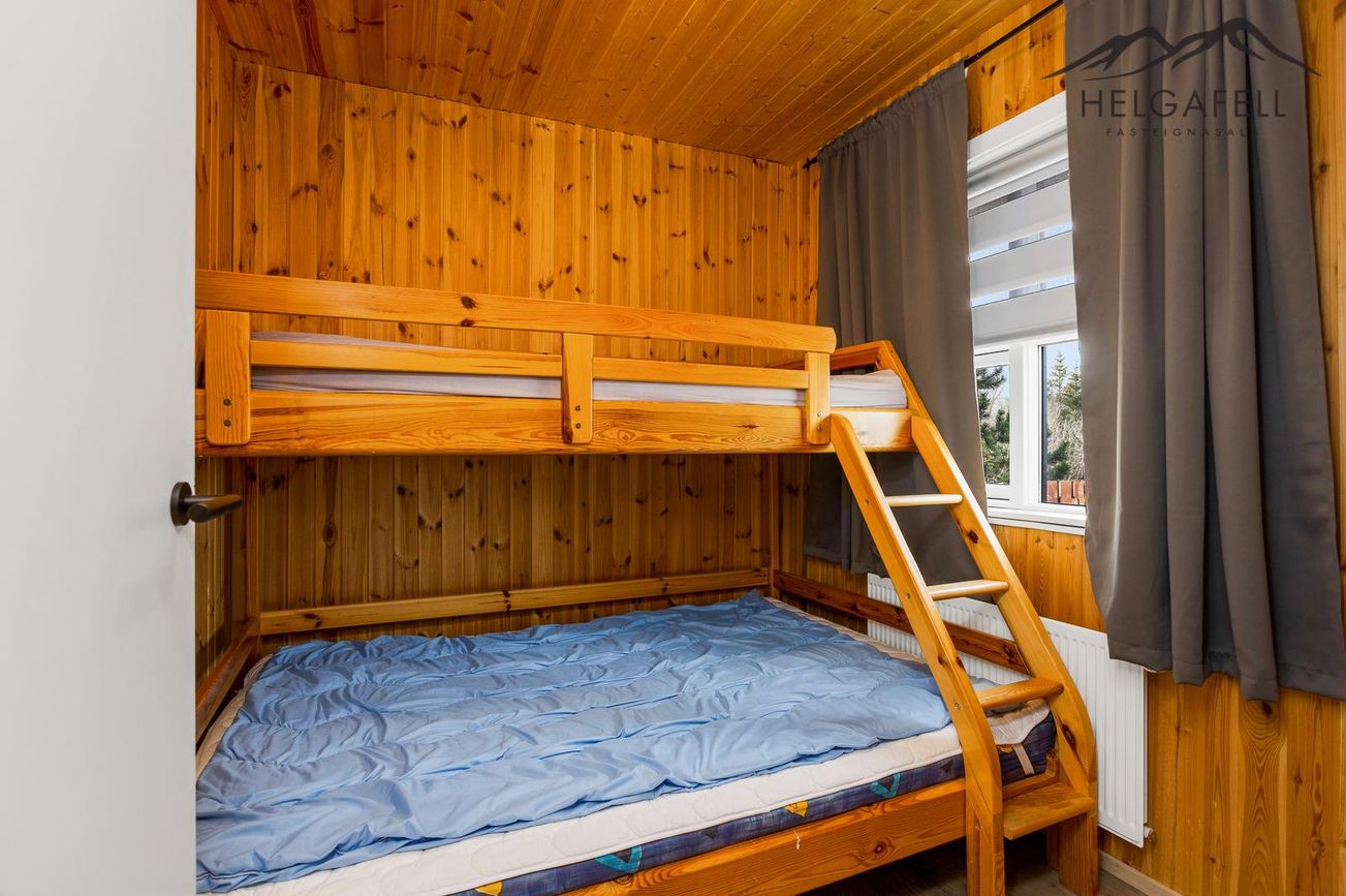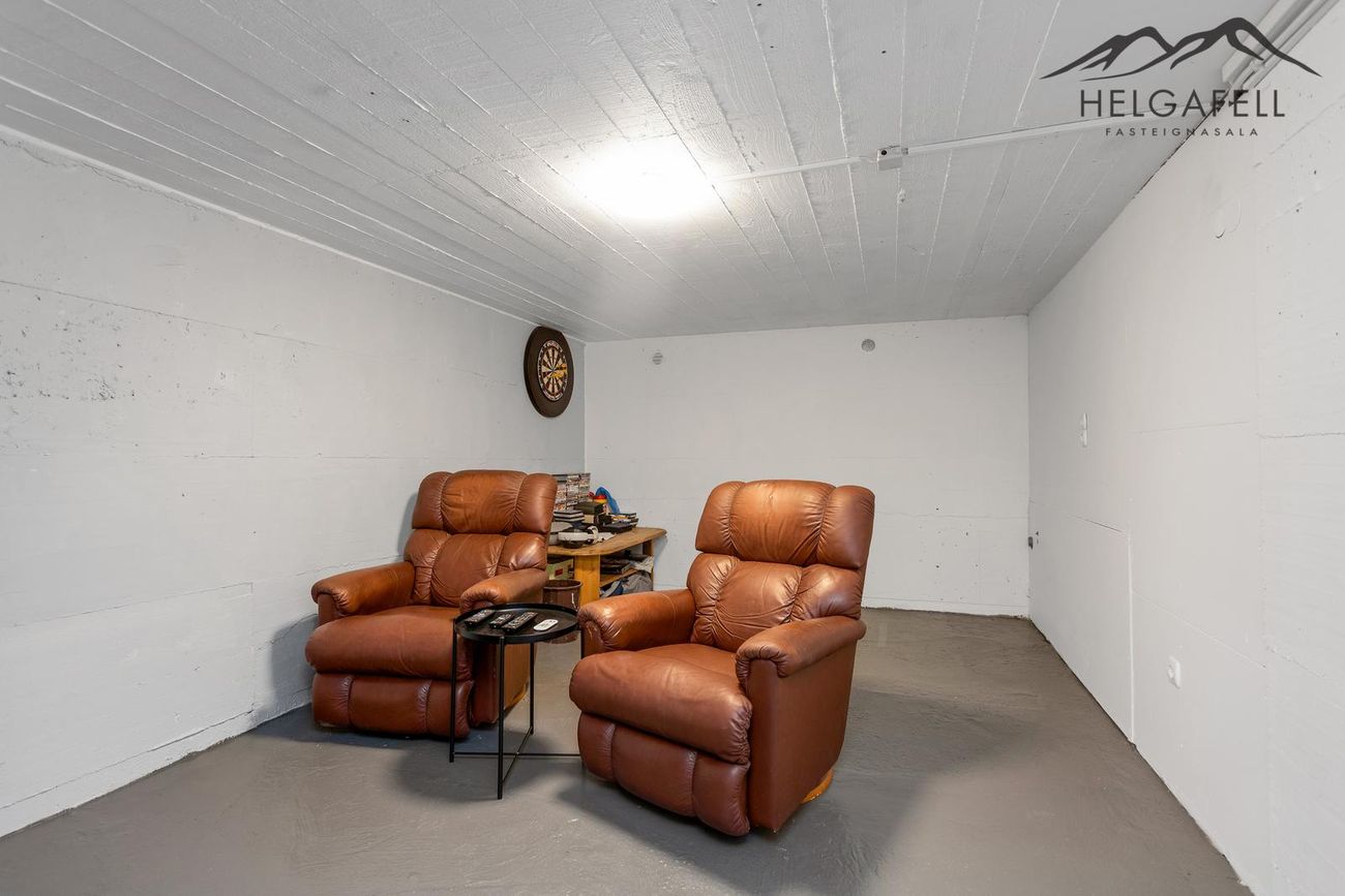 Svefnloftið hefur geymslupláss og í kjallara eru tvö stór geymslurými.
