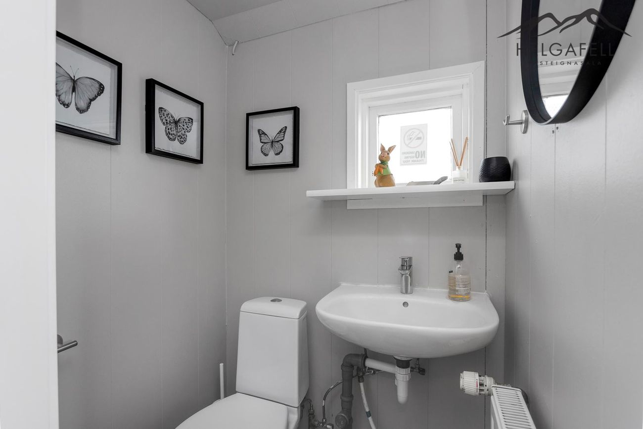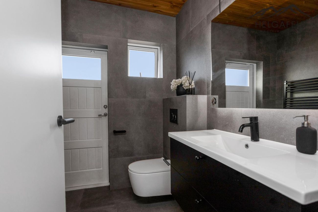 Í gestahúsinu er baðherbergi með salerni, vask og opnanlegum glugga.