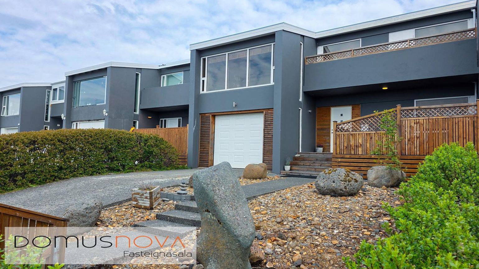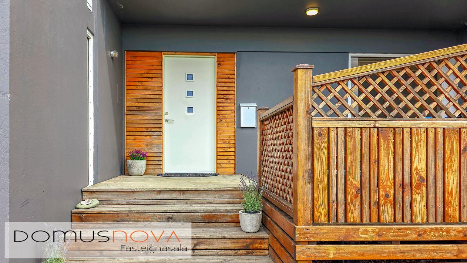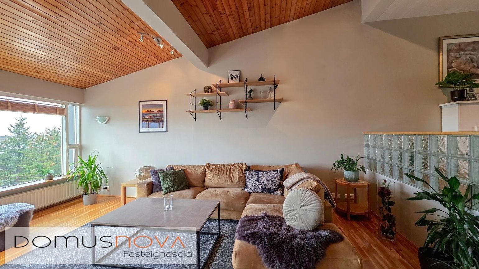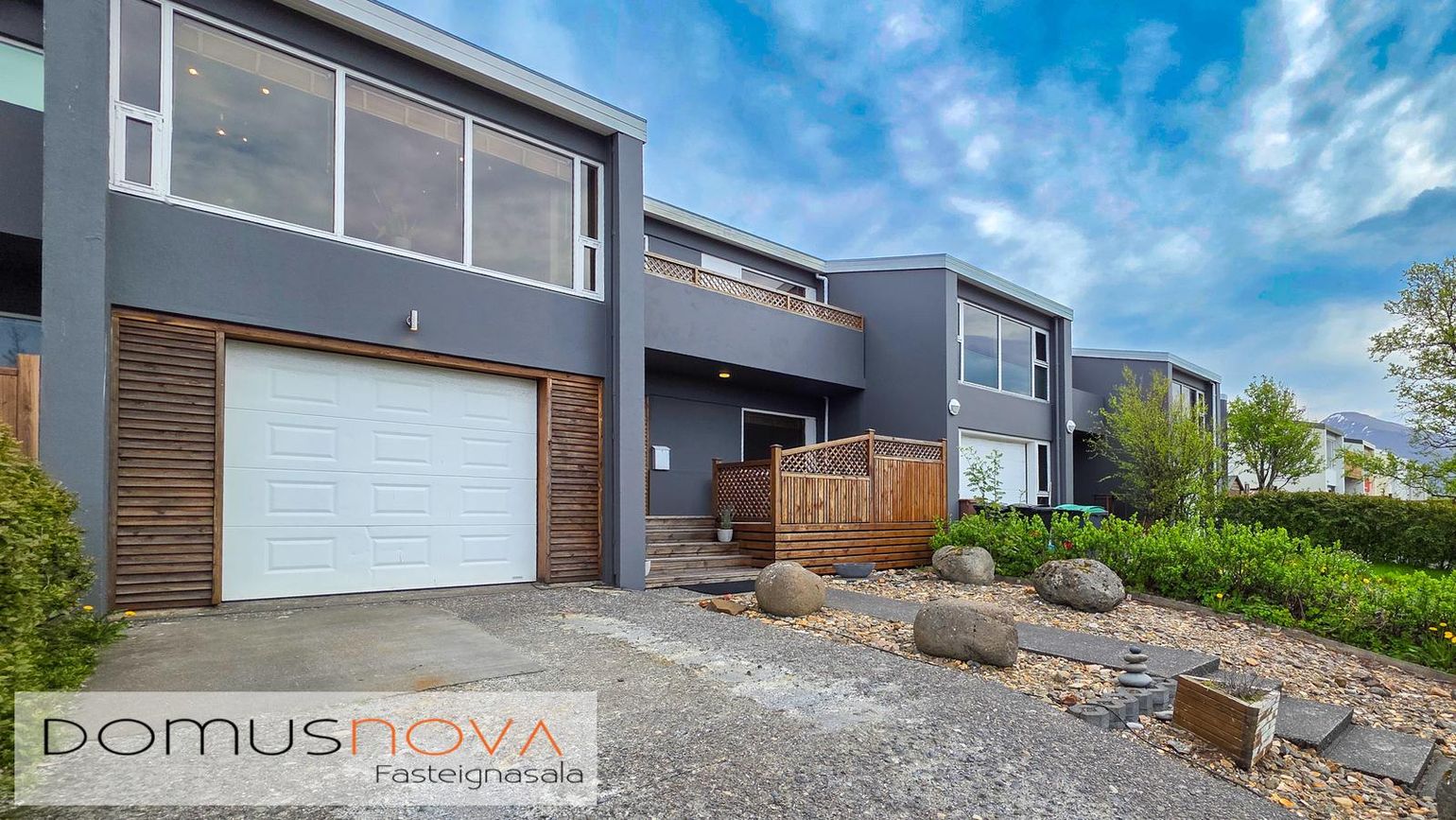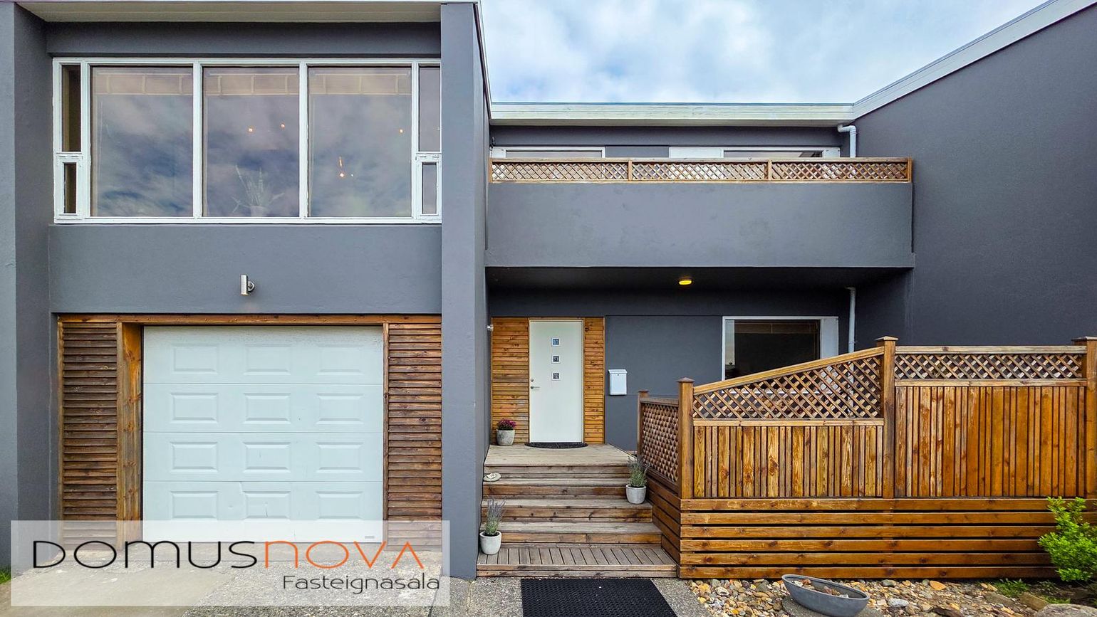180,0 fm raðhús á tveimur hæðum með bílskúr (25,7 fm). Fimm herbergi, opið alrými og nýlegar viðgerðir.