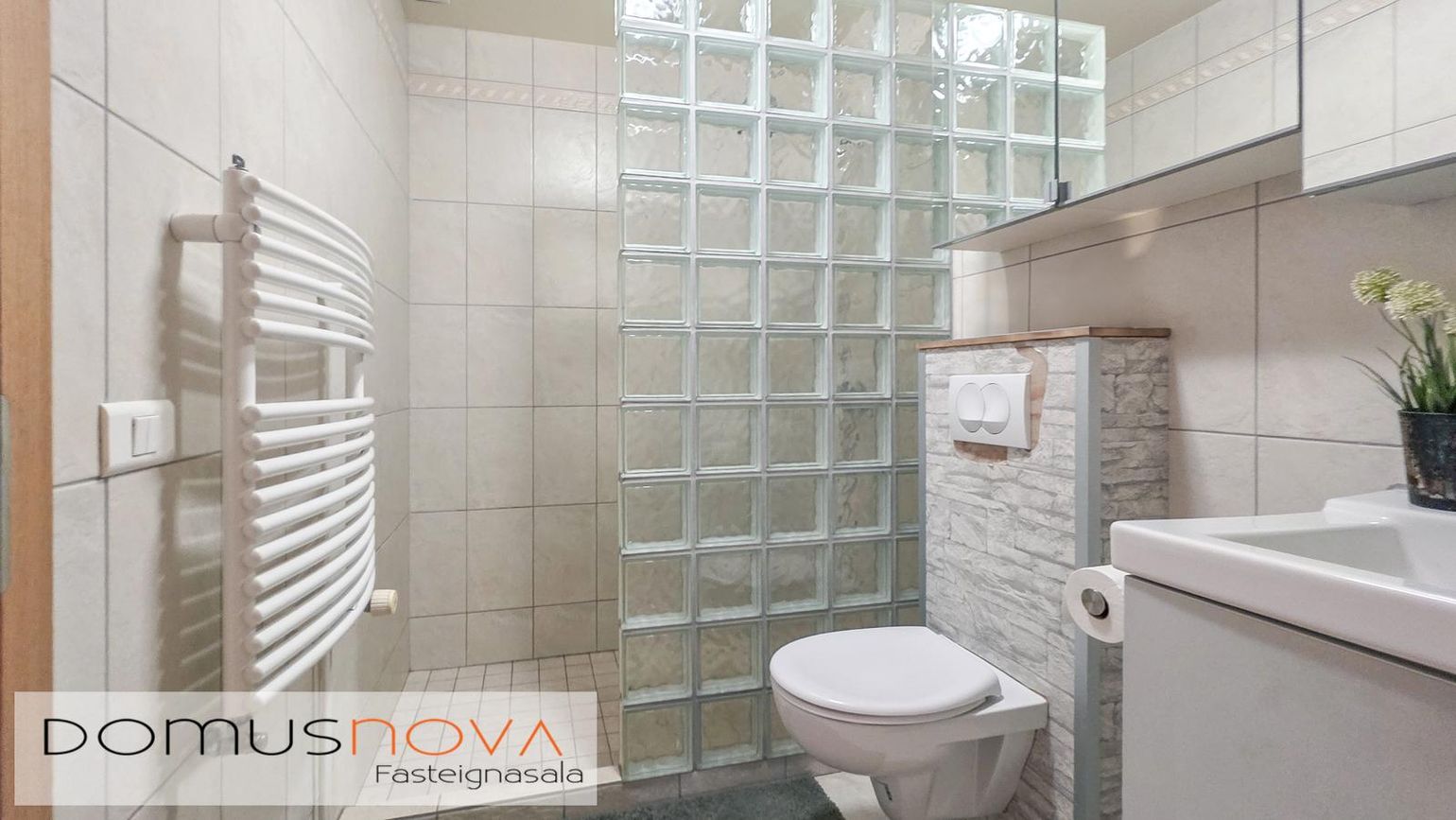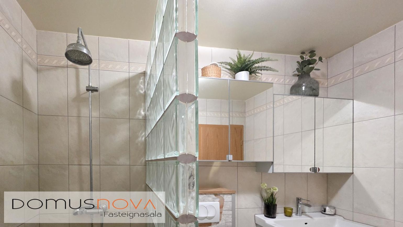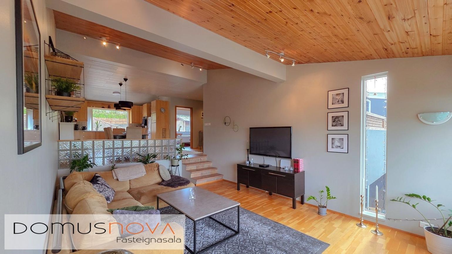 Innbyggð eldhúsinnrétting, ný þvottavél/sturta og rafdrifin bílskúrshurð.