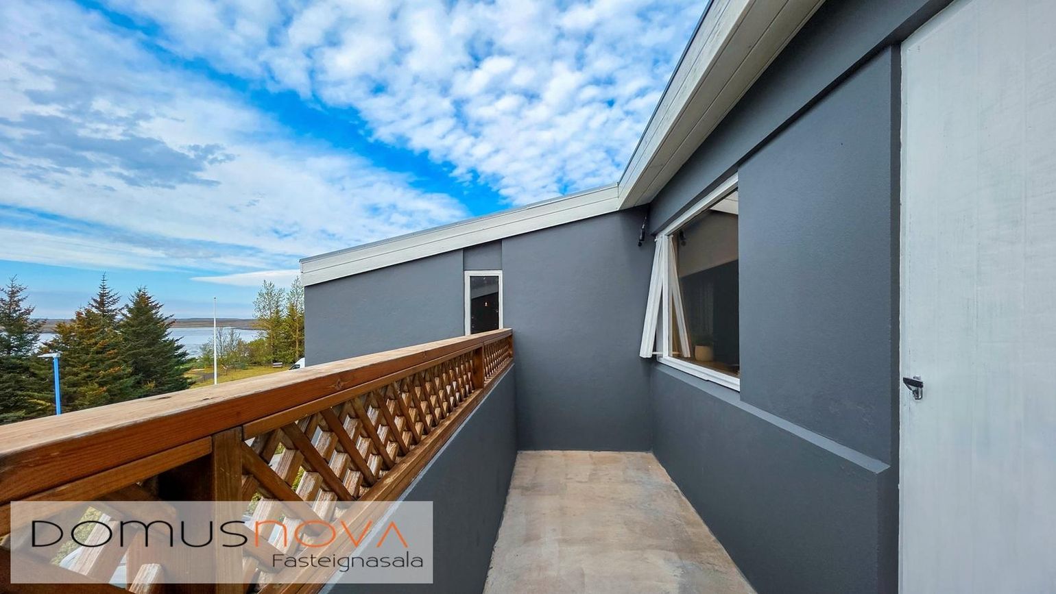 Svalir úr einu herbergi og útigöngu í bakgarð.
