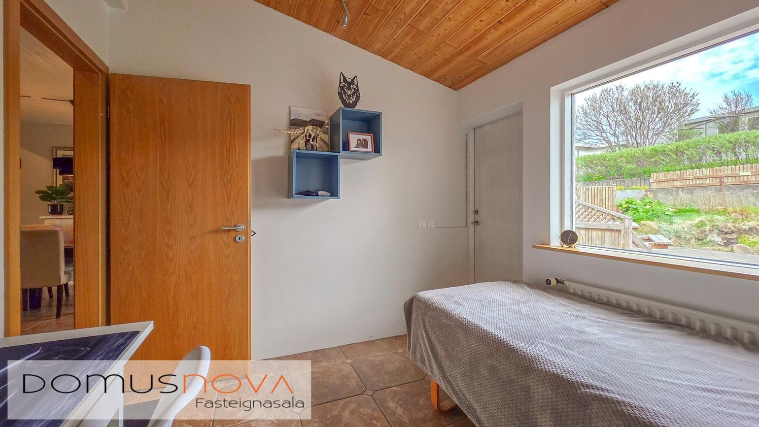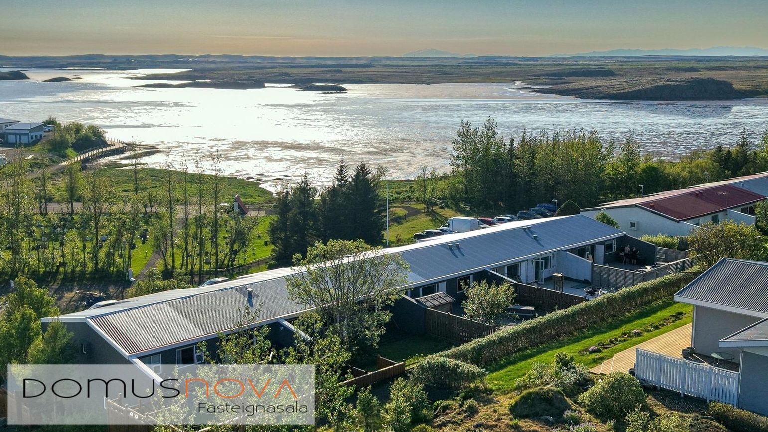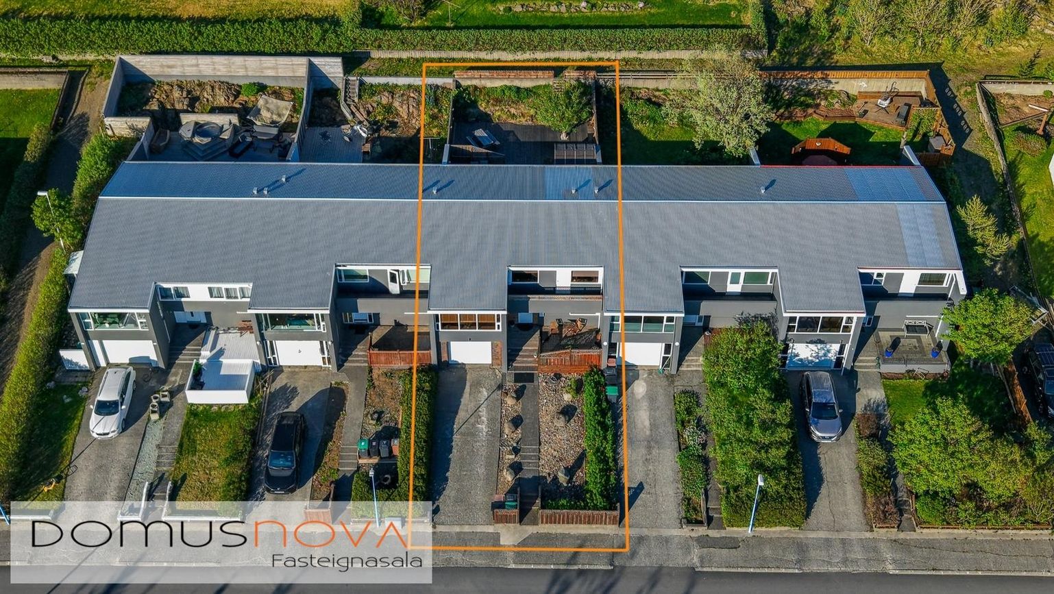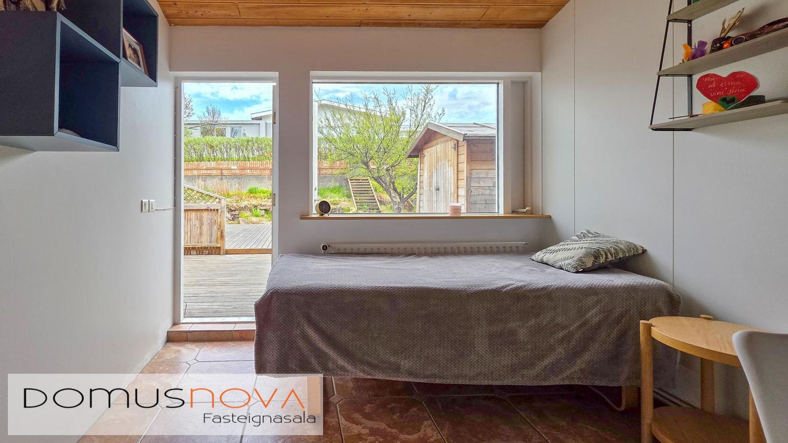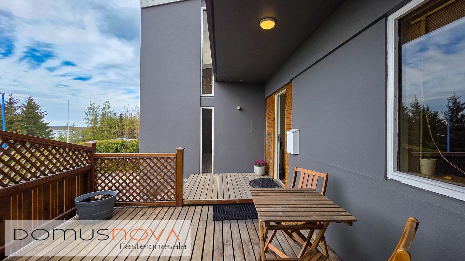 320 fm lóð með vel gróinni garði, timburveröld aftan á og tvö bílastæði fyrir framan.