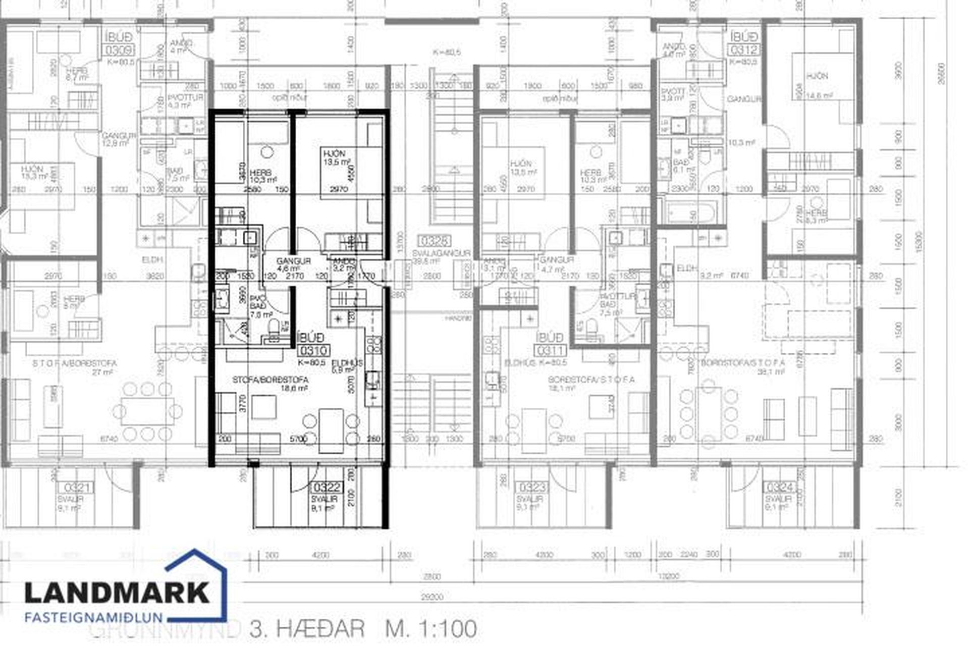 | 3 | 86,10 m² | 69.900.000 kr. 6. september 2023 | 31.400.000 kr. 18. ágúst 2015 |