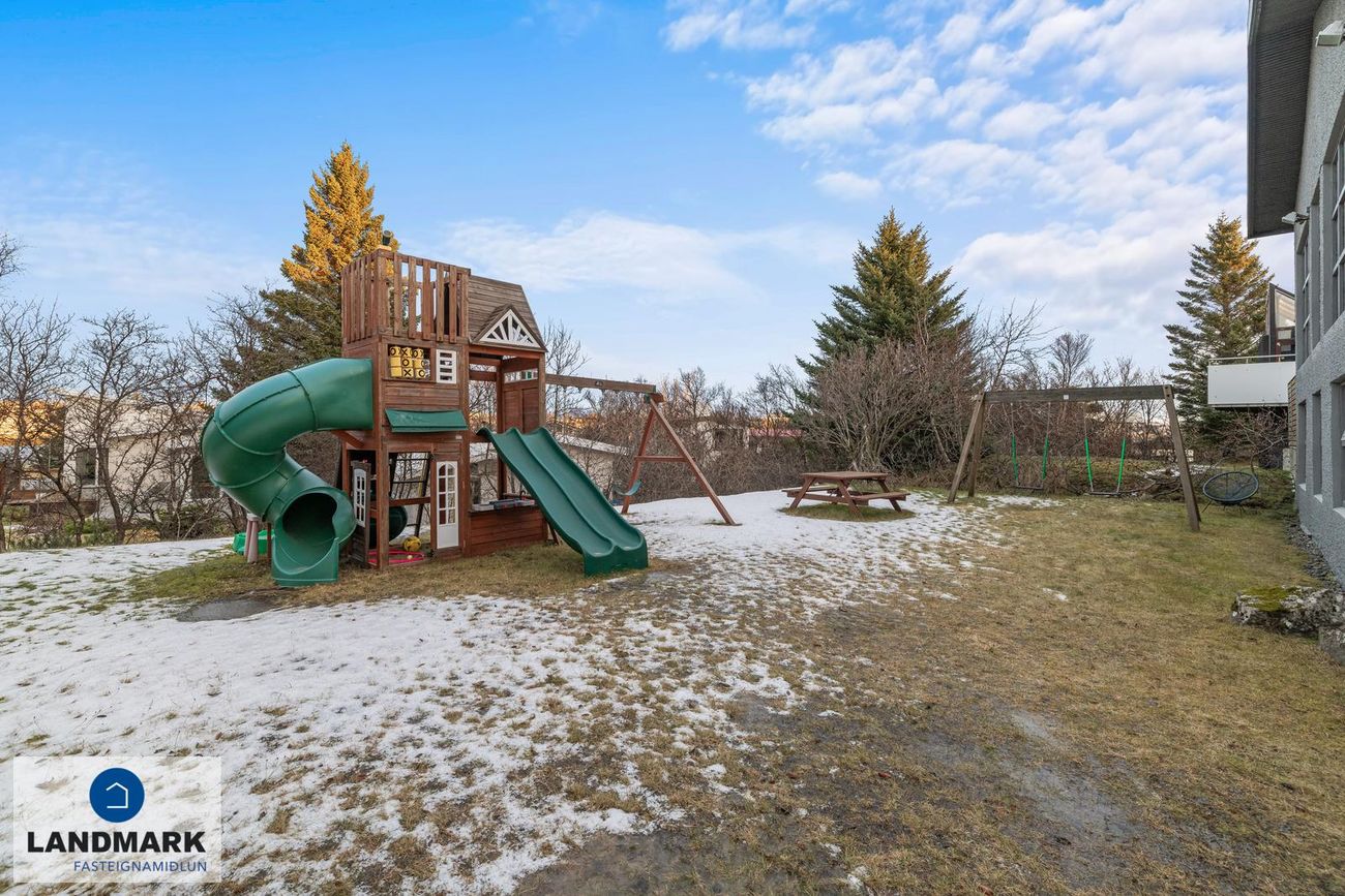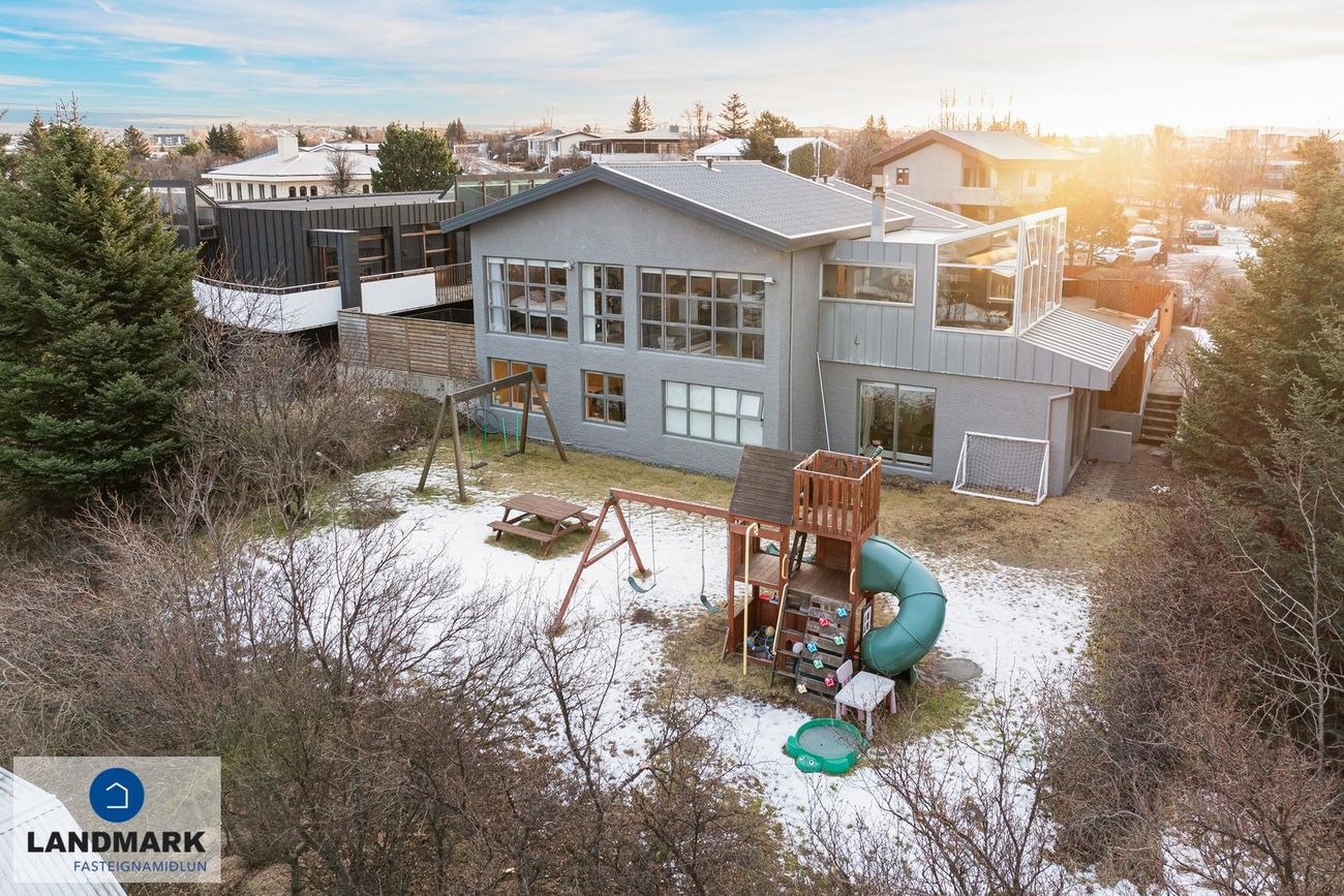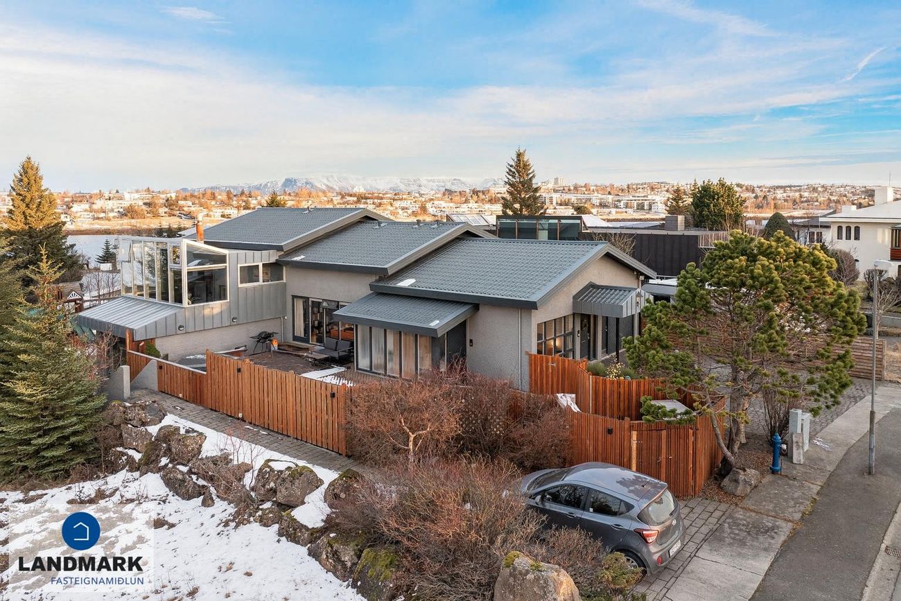 Rólegt hverfi á Arnarnesinu í Garðabæ með náttúrulegu útsýni og nálægð við grænan garð.