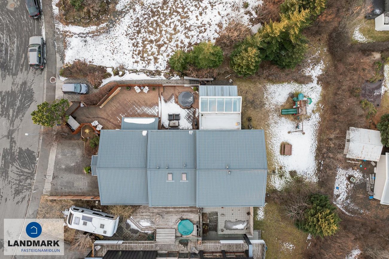 364,8 fm einbýlishús, aukaíbúð í útleigu, nýlegar viðgerðir, sauna, heitur pottur, garður, bílskúr og þrjú einkastæði.