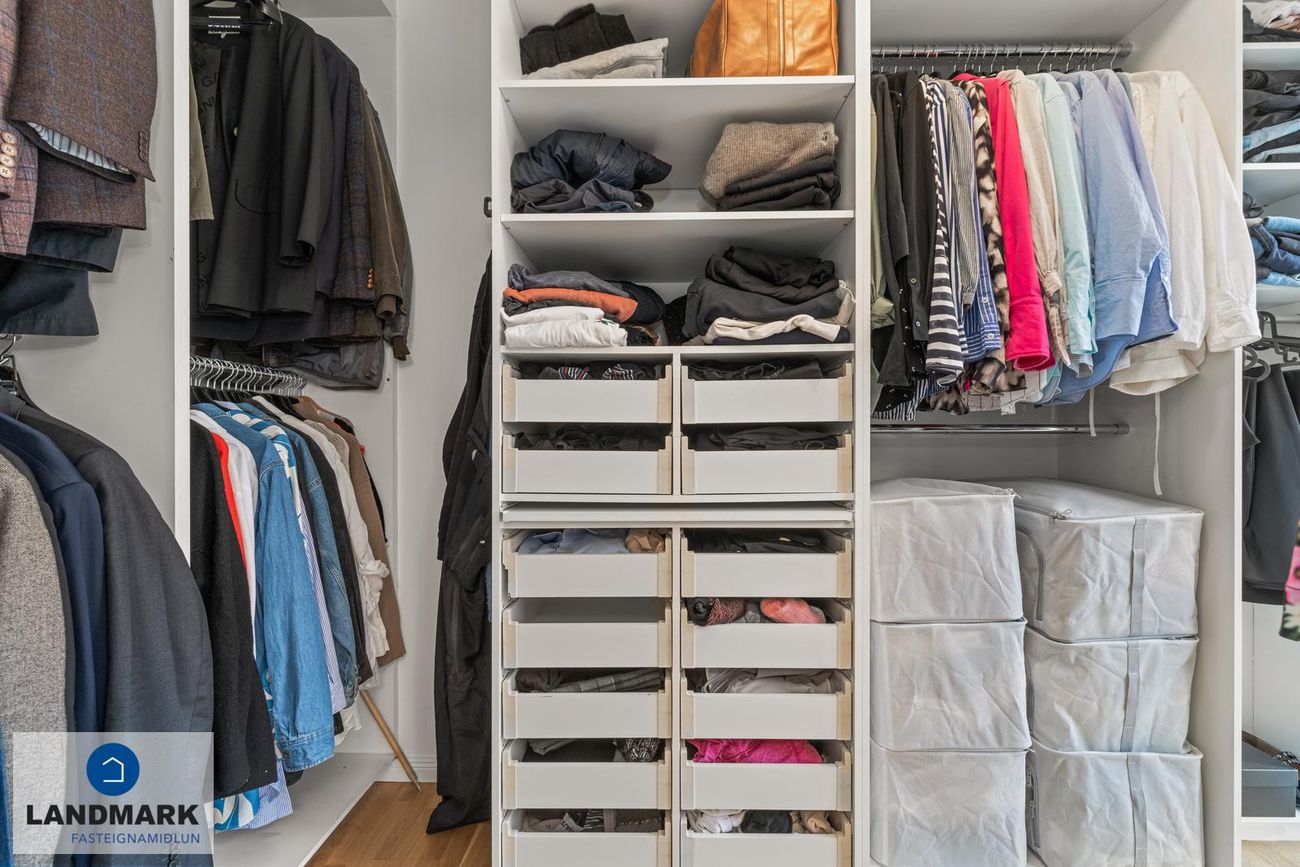 Stórt geymslurými með skertri lofthæð inn af þvottahúsi.