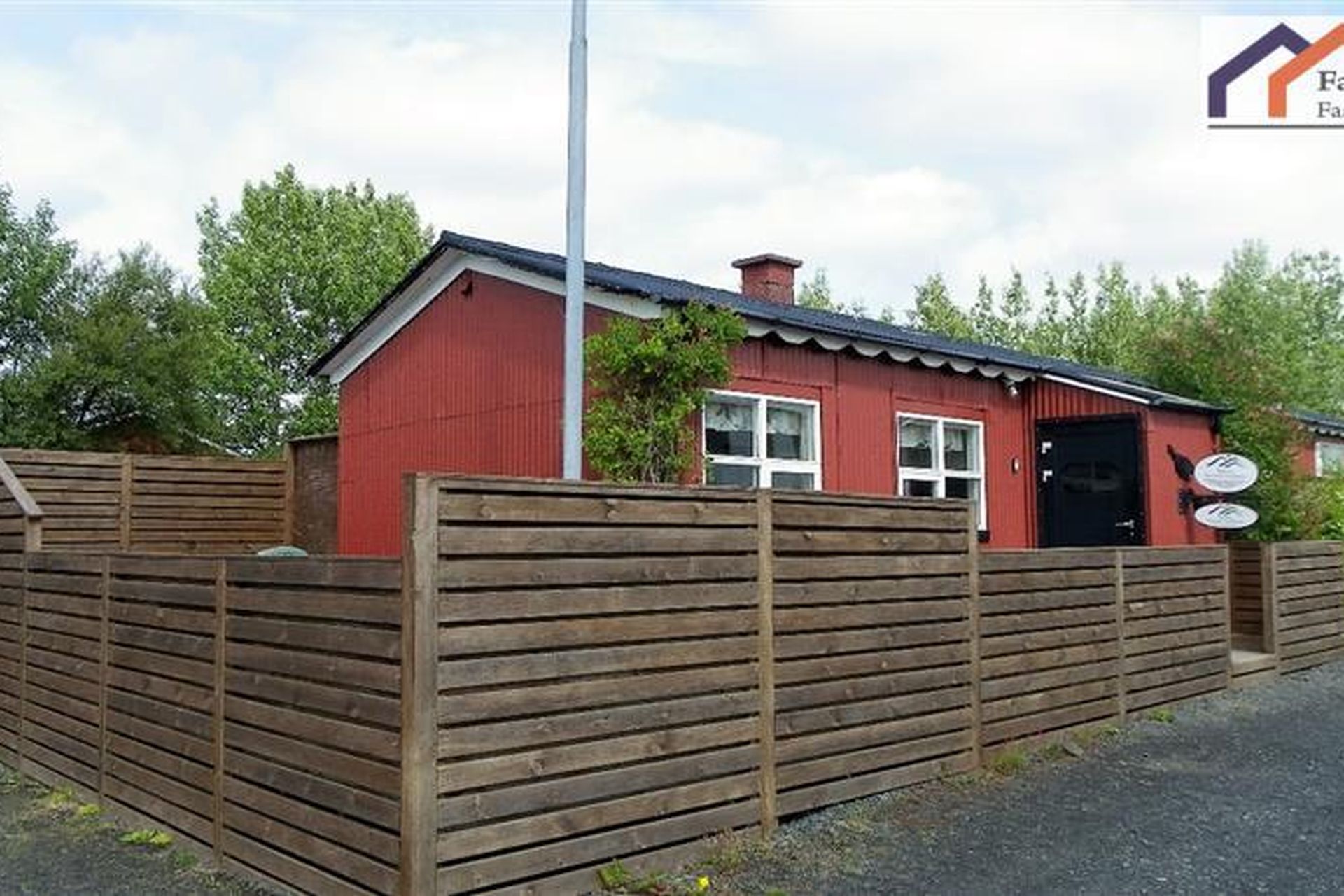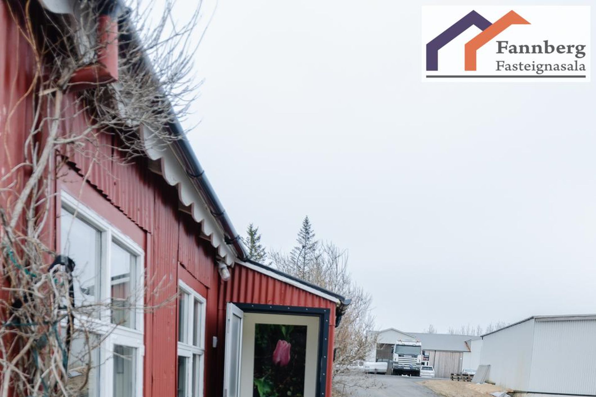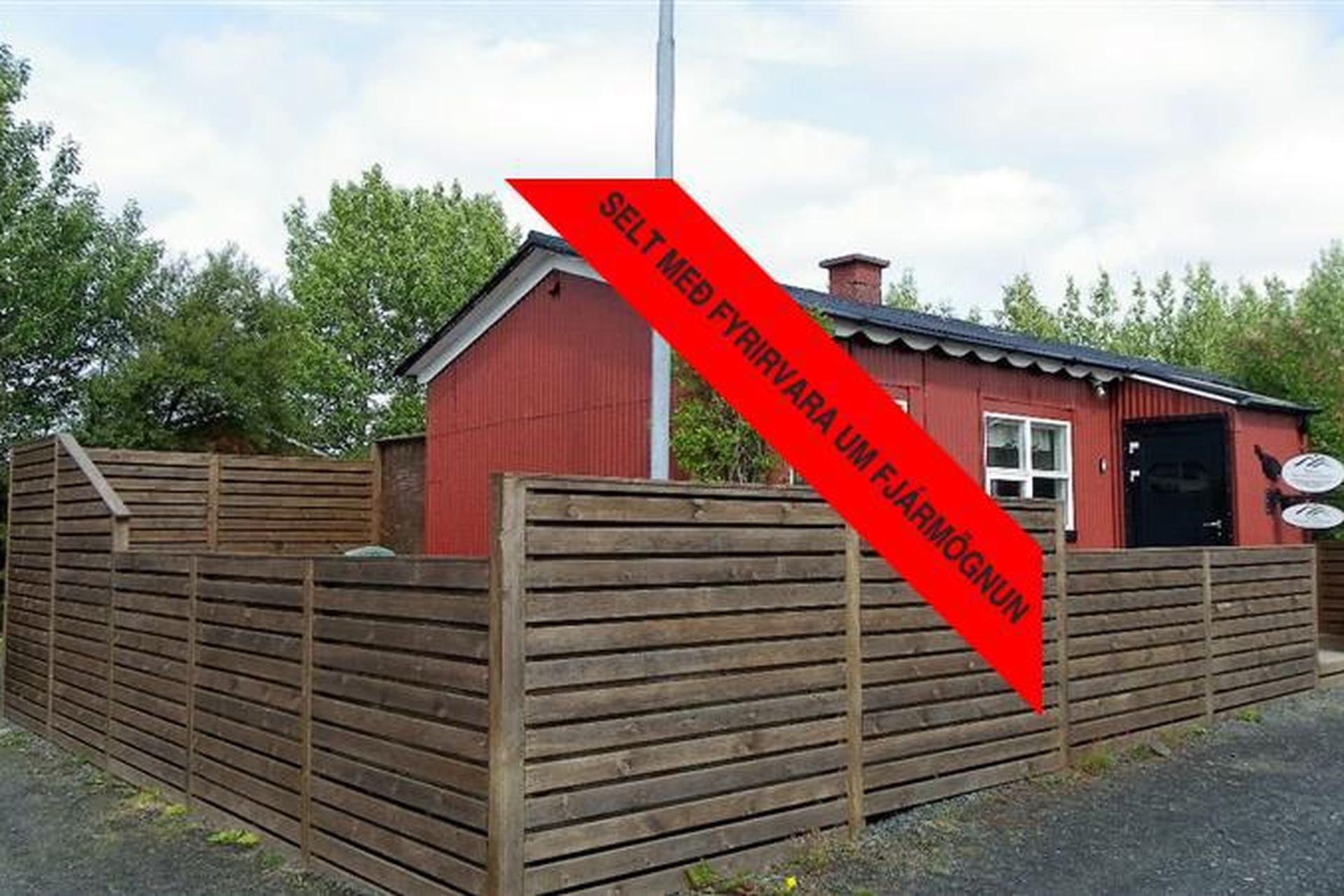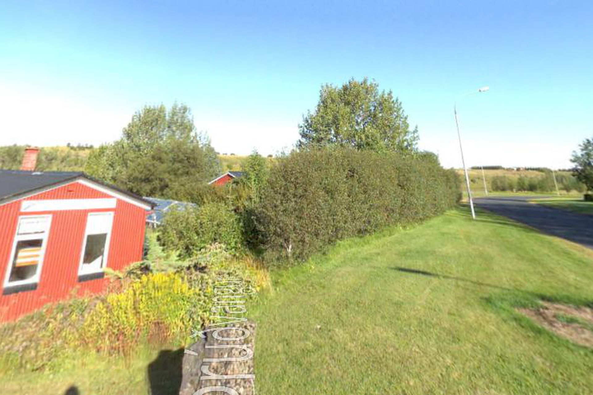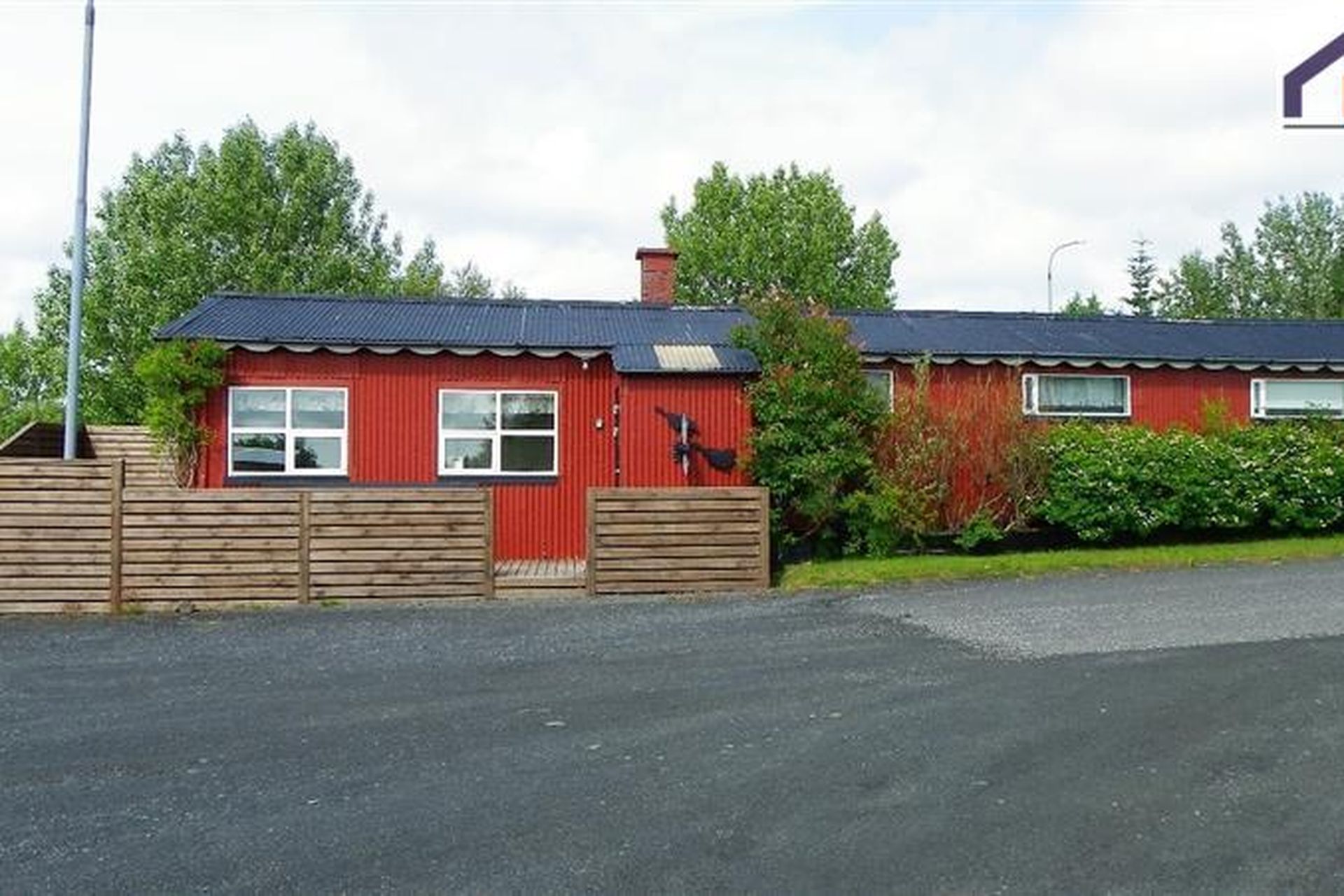 Einbýlishús úr timbri frá 1942, klætt bárujárni. Staðsett á Hellu við Ytri Rangá.