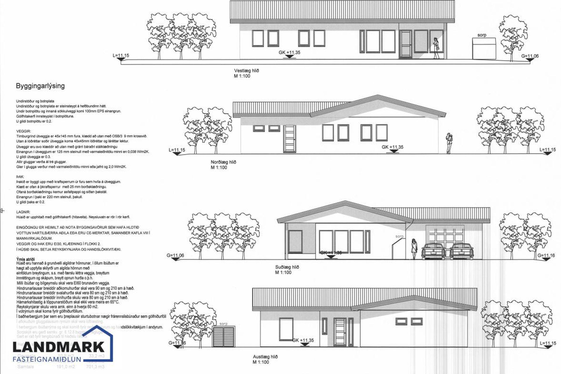 Auðvelt er að gera séríbúð í bílskúr og þvottahúsi, allar lagnir eru til staðar sem er kostur.Húsið: Húsið er byggt 2023 og er álklætt timburhús með vandaðri álklæðningu, gluggar og hurðir úr áli / tré eru frá frá Byko. Gólfhiti er í flestum rúmum. Rafhleðslustöð.