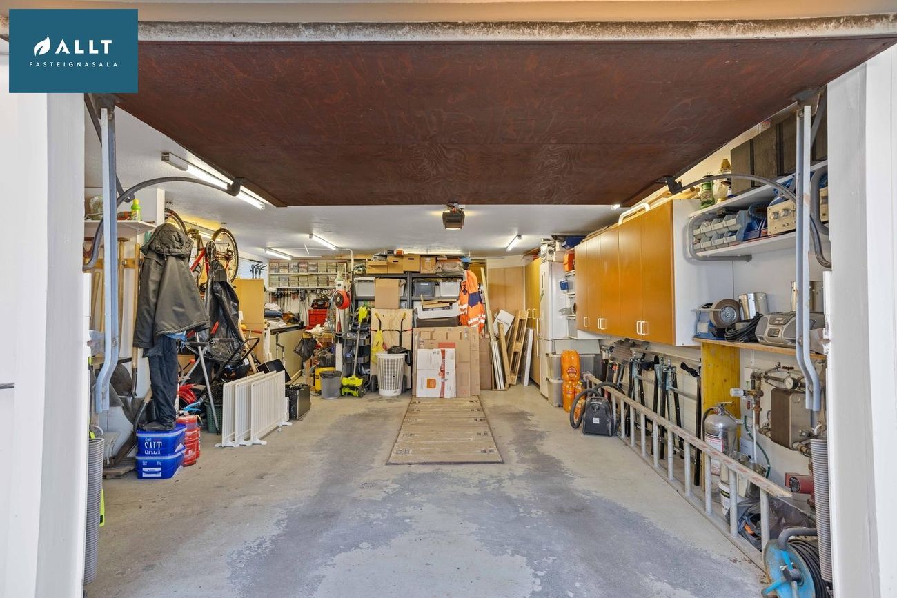 Bílskúr: er mjög rúmgóður með grifju. Rafdrifinni hurð. Inngagnshurð og góðum gluggum. Heitt og kalt vatn og rafmagn í skúr.