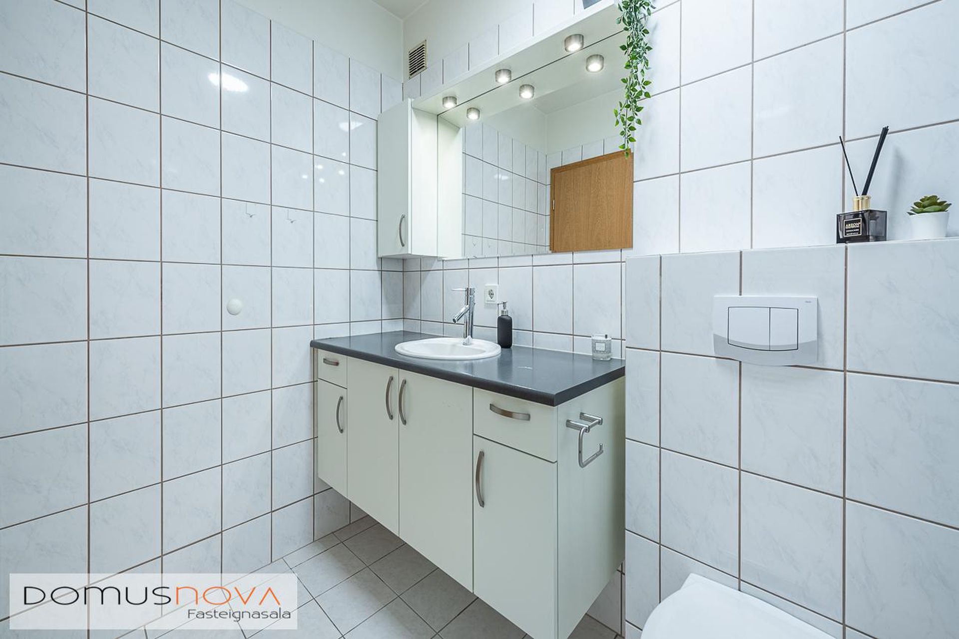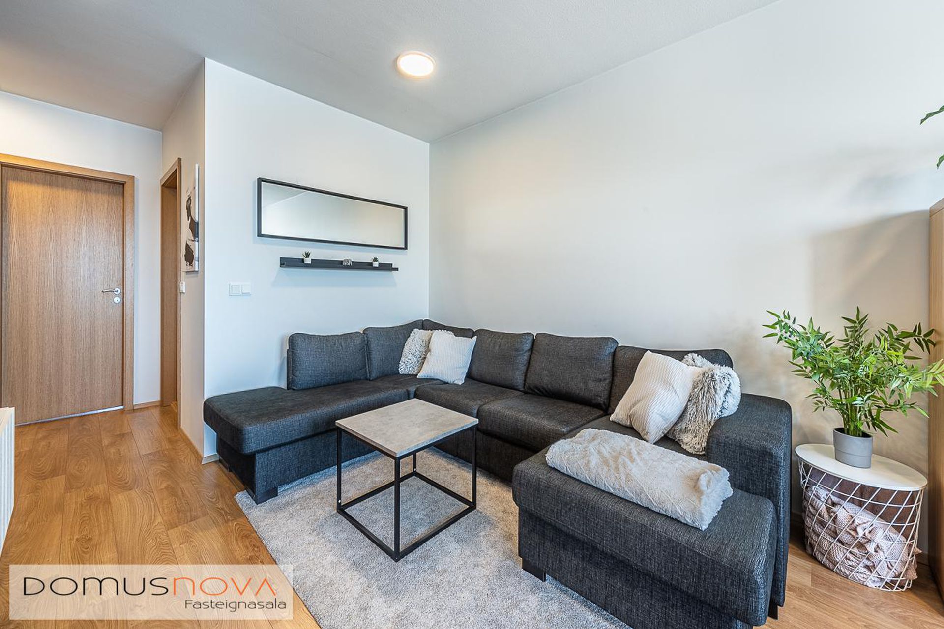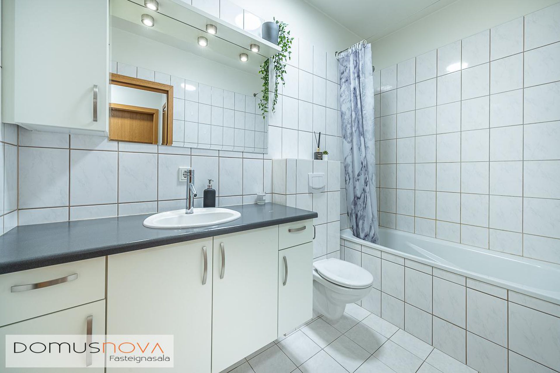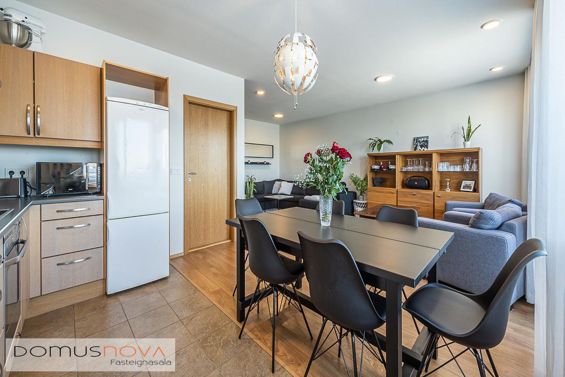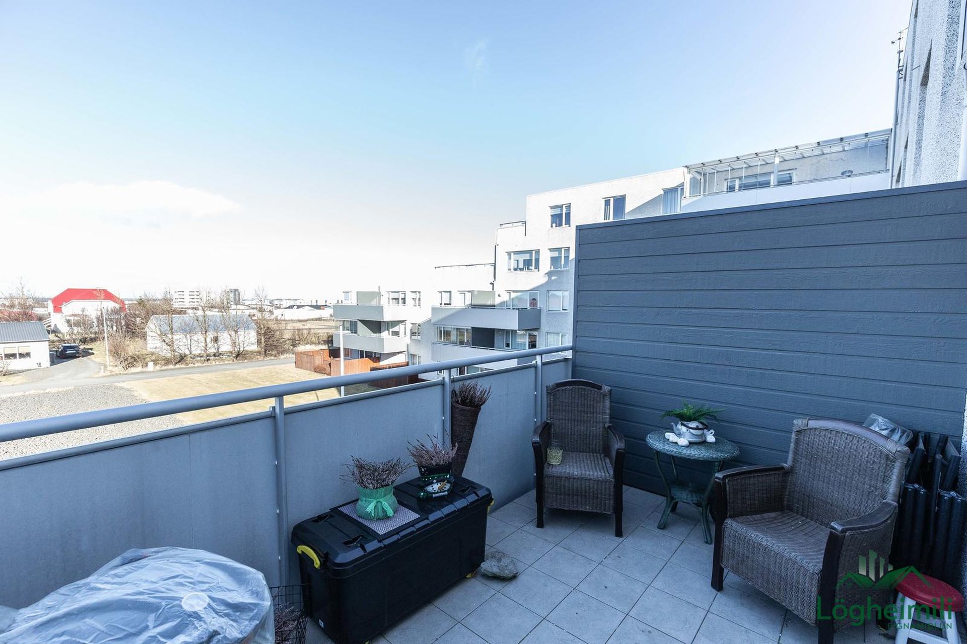 Vel skipulagt eldhús með hvítmálaðri innréttingu, ofni í vinnuhæð. Endurnýjuð borðplata og 'eldunareyja' með keramik helluborði (2021). Parket á gólfi. Útgangur á svalir með timburflísalegu svalagólfi.